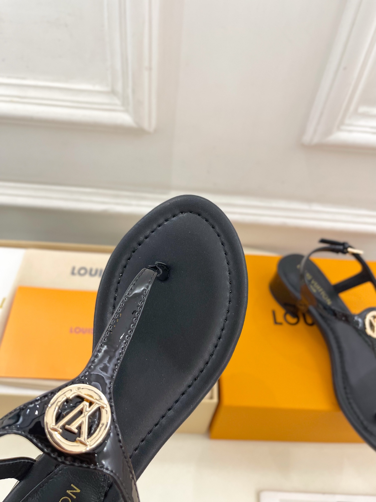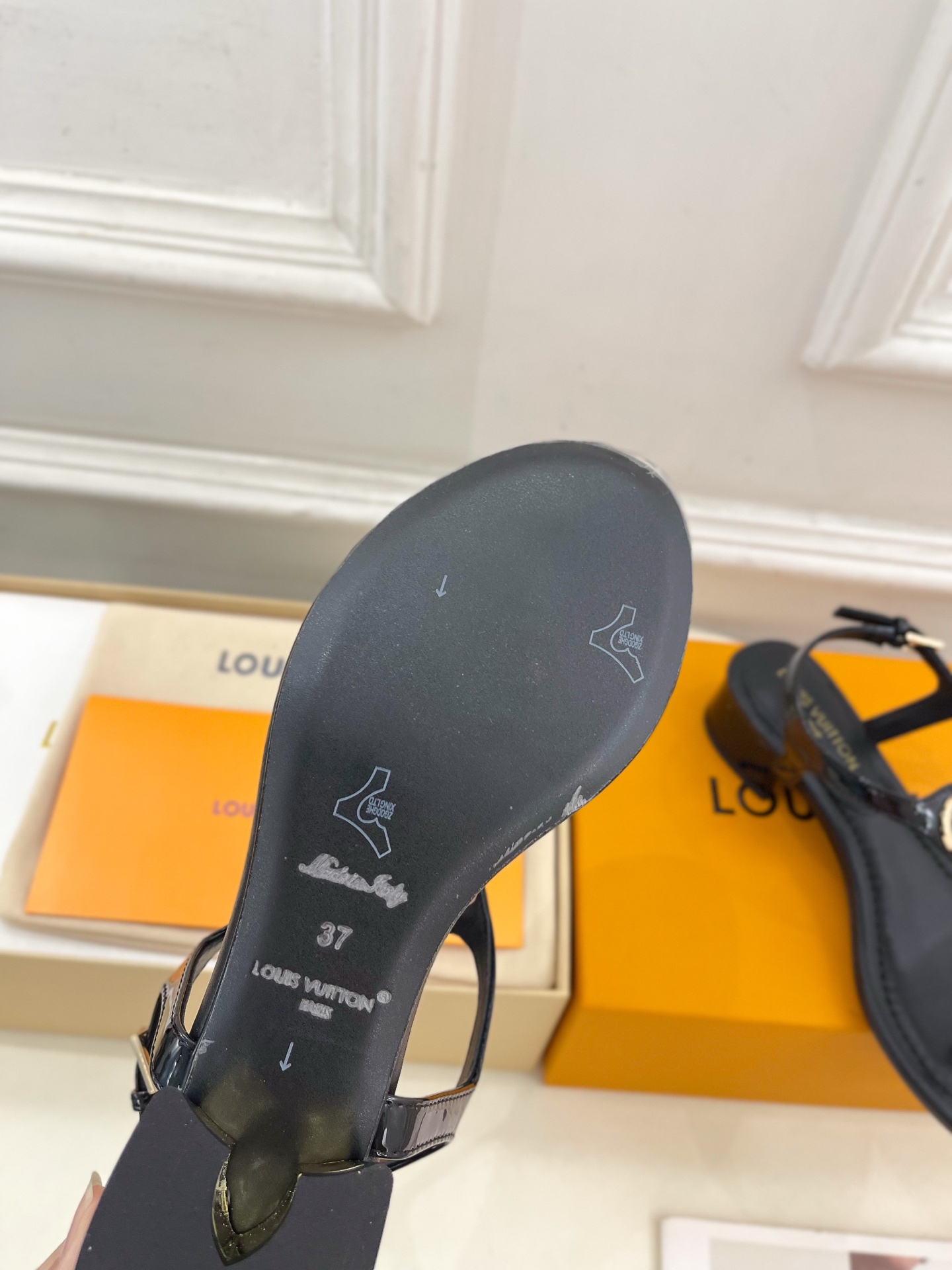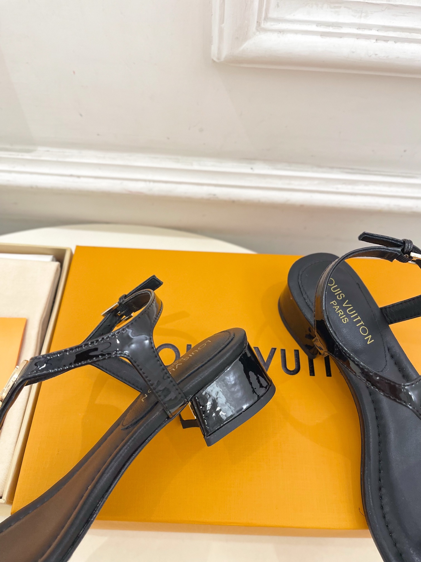 Louis Vuitton Black Leather LV Buckle Sandals