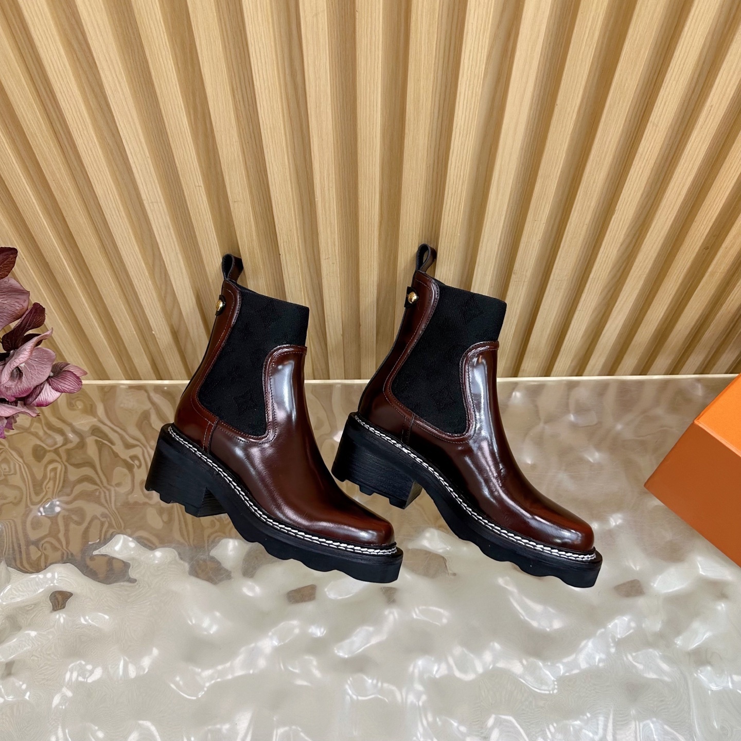 • Iconic Branding: Features subtle yet distinct LV Monogram patterns on the elastic sides and elegant gold-tone hardware.