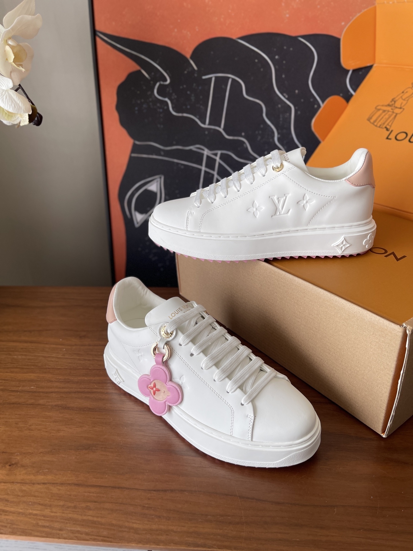 Louis Vuitton Men’s White Leather Trainers – Monogram Perforated Low-Top Sneakers