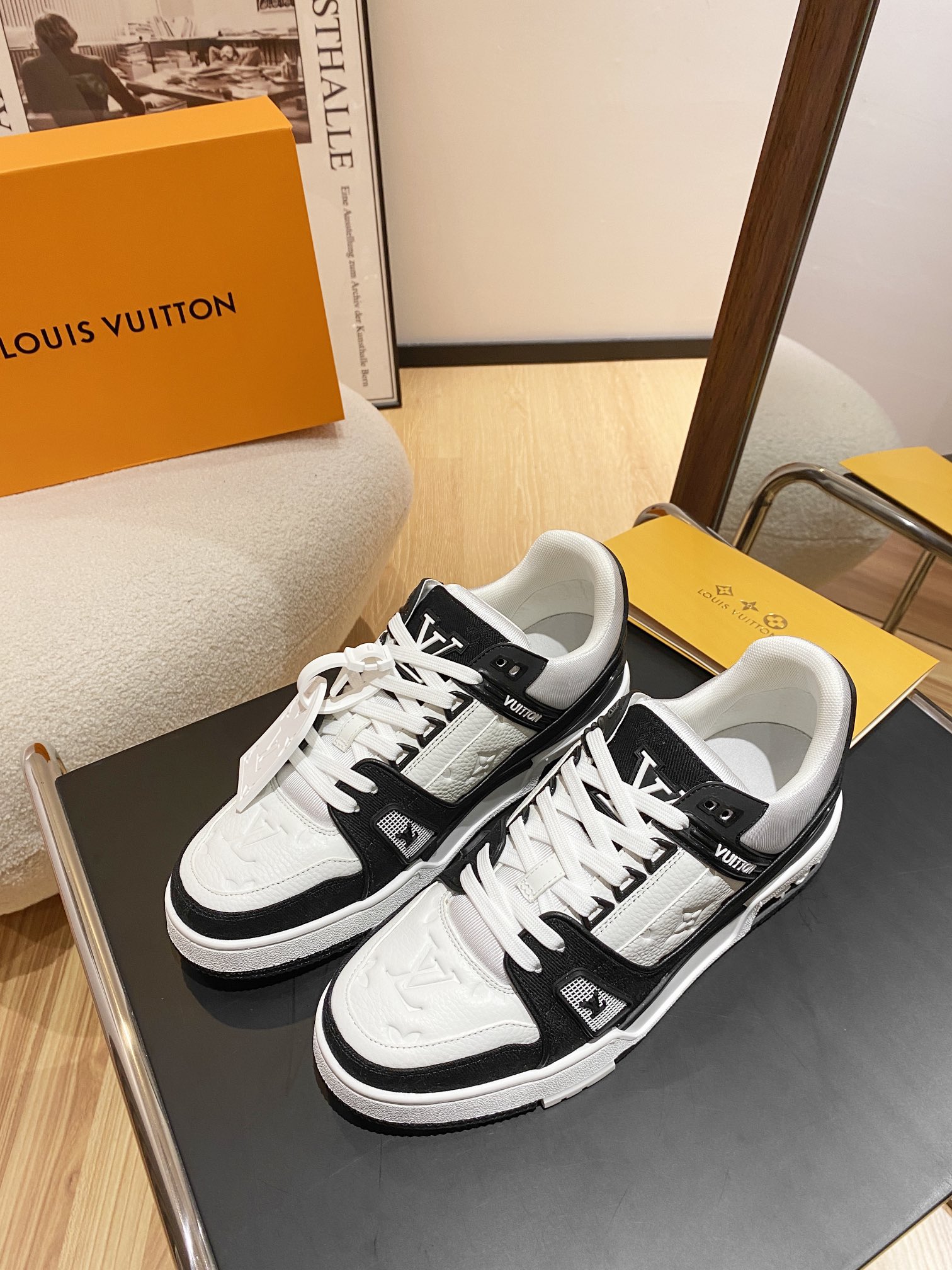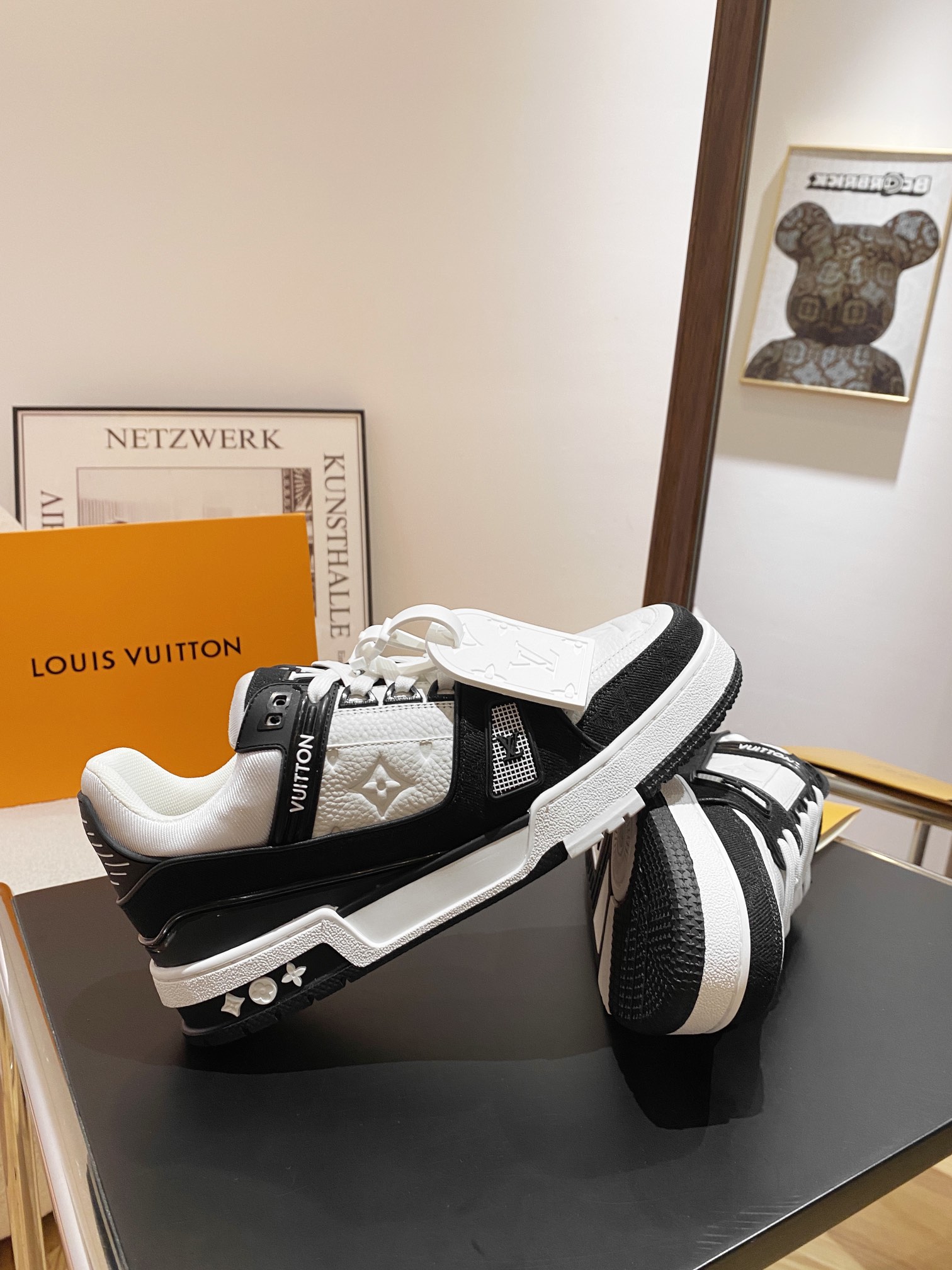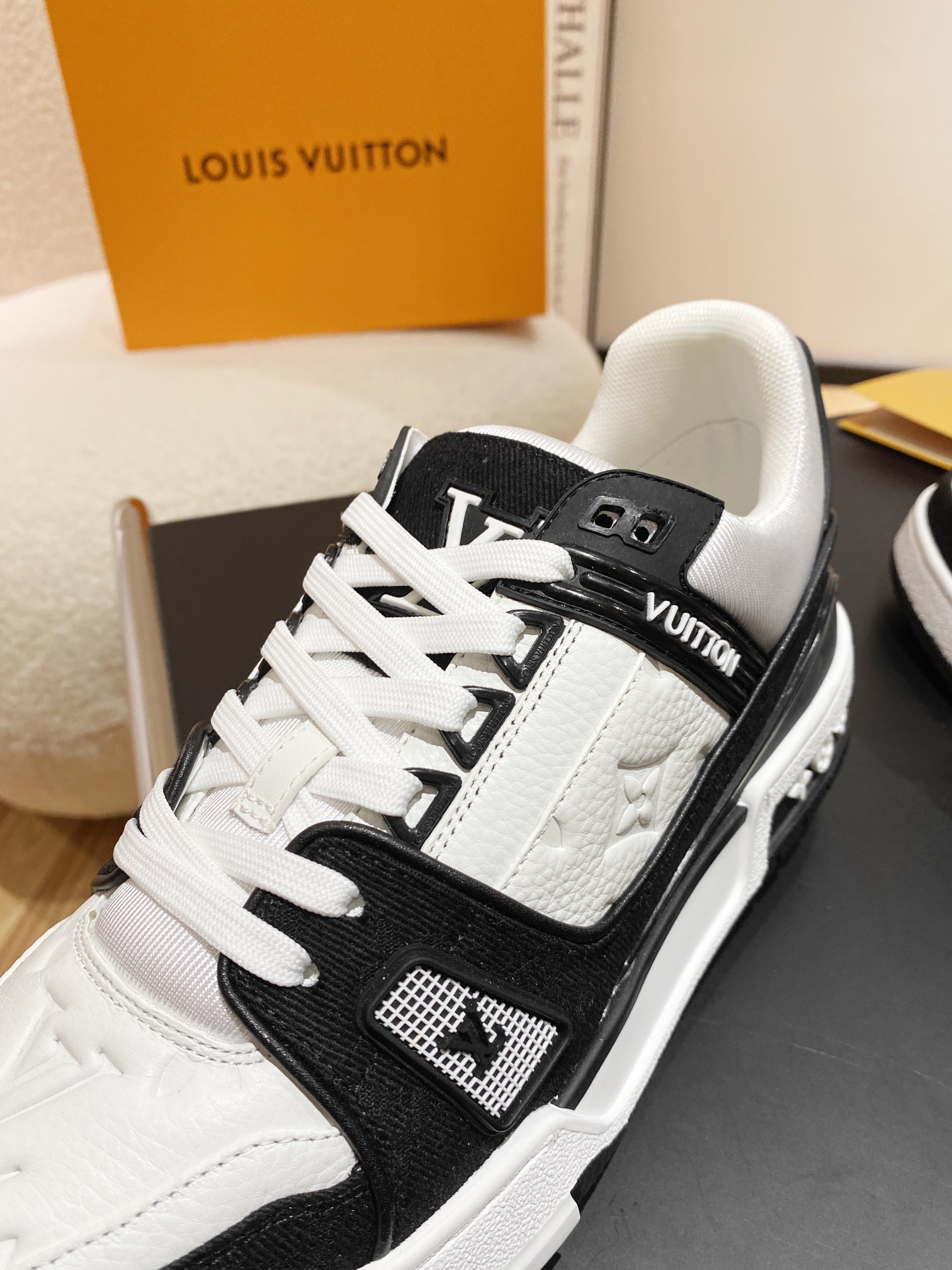 Louis Vuitton Men’s White Leather Trainers – Monogram Perforated Low-Top Sneakers