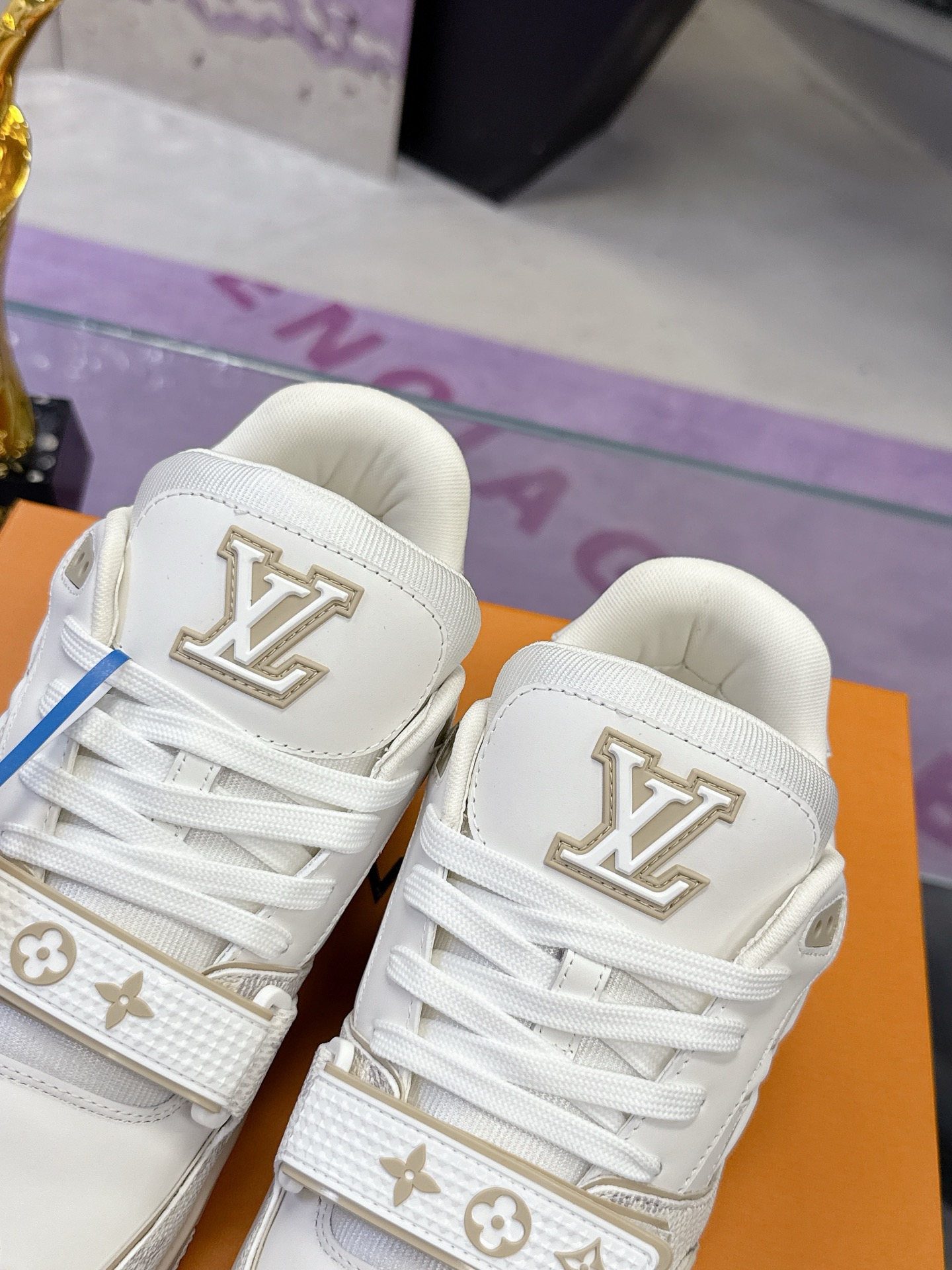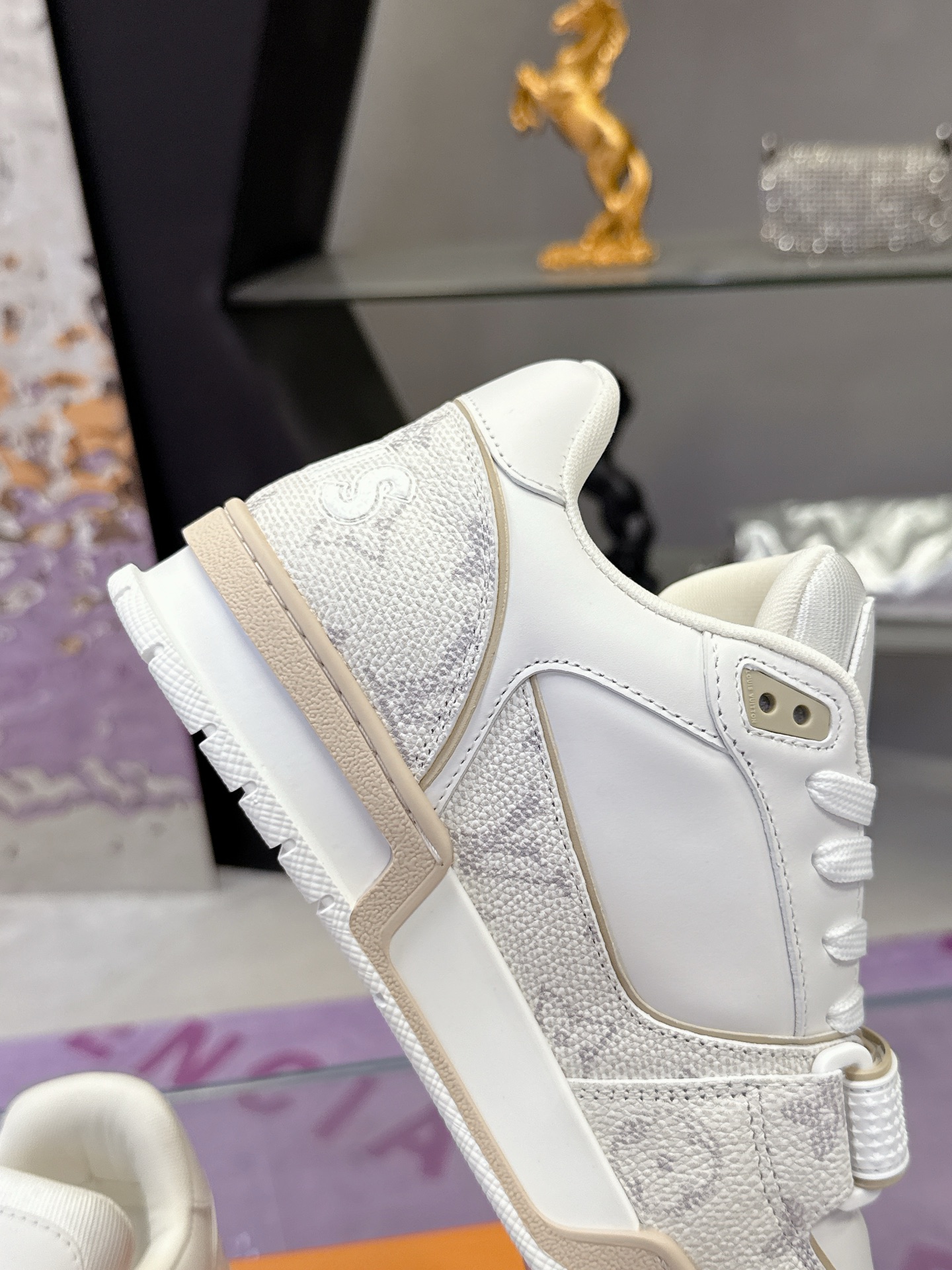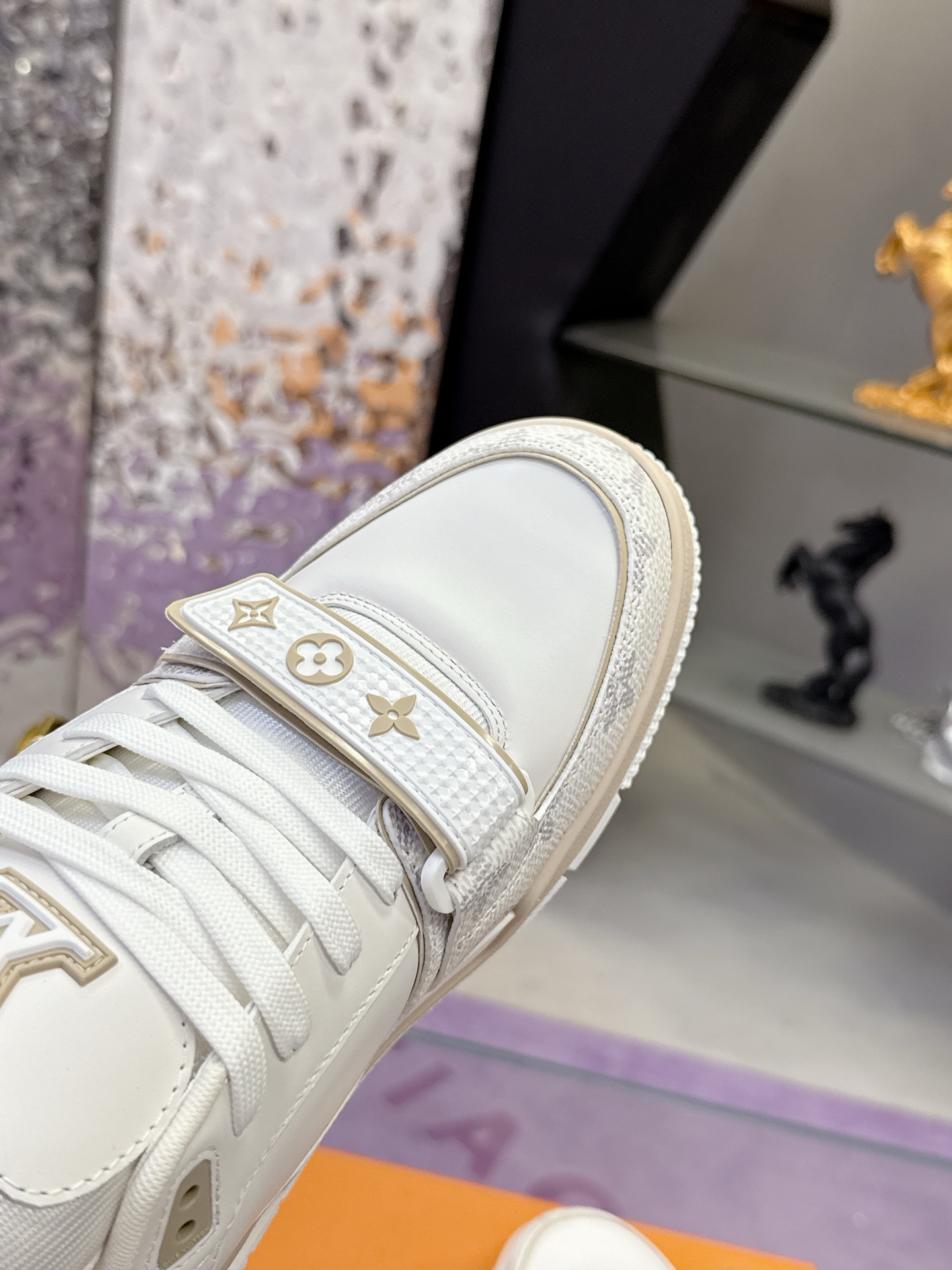 Louis Vuitton Men’s White Leather Trainers – Monogram Perforated Low-Top Sneakers