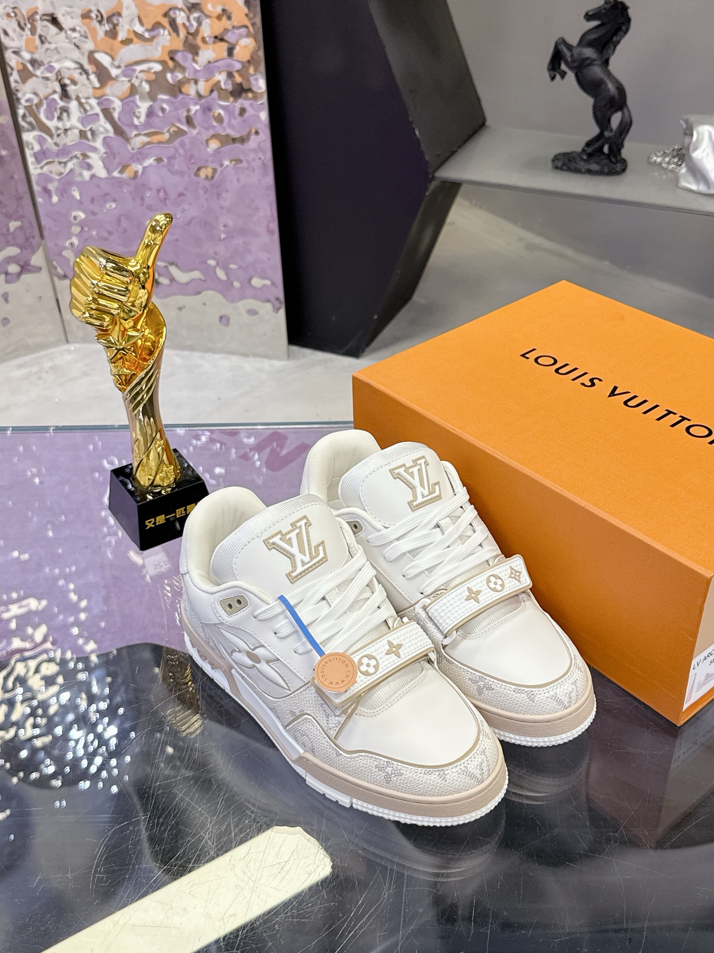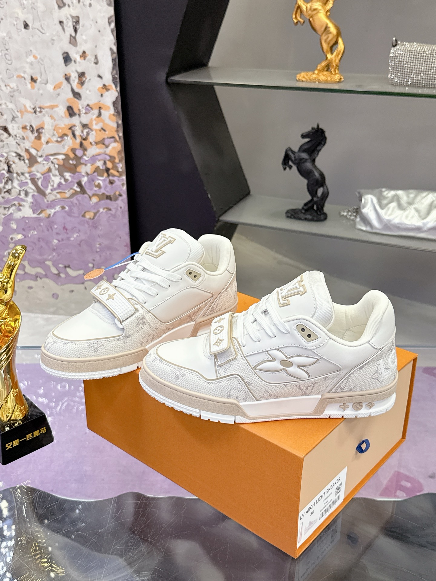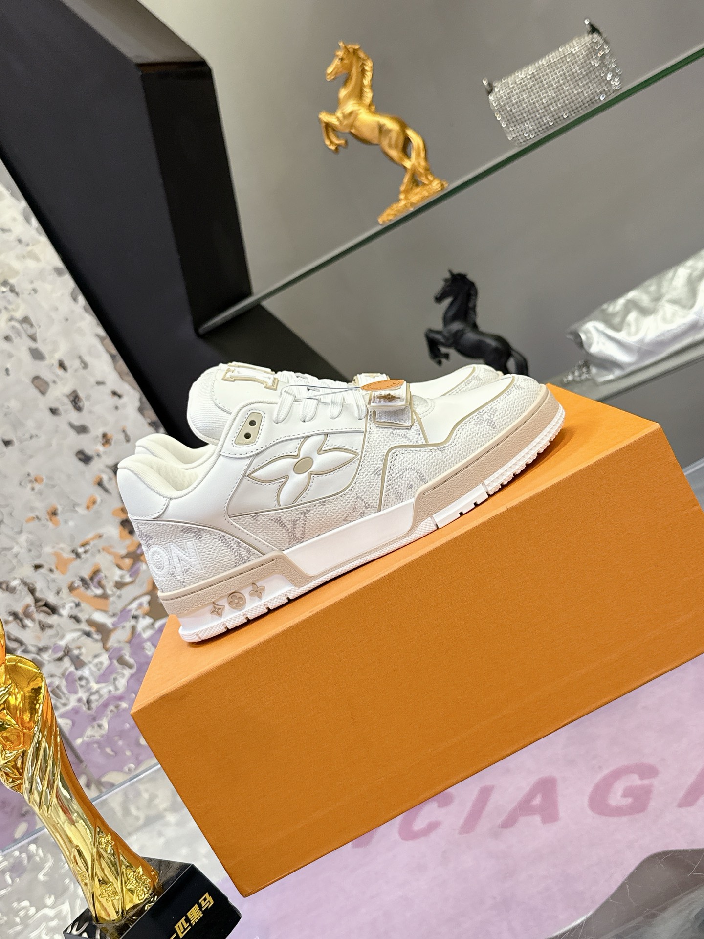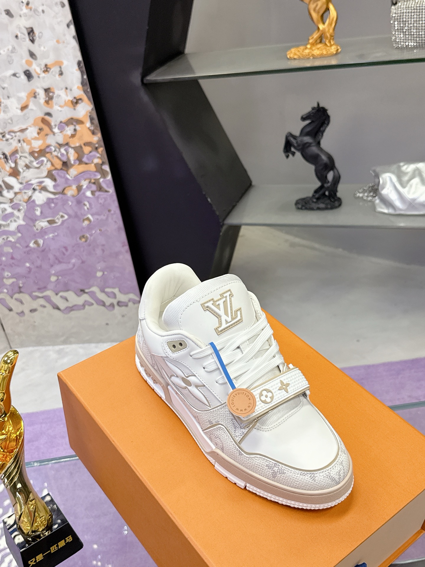 Louis Vuitton Men’s White Leather Trainers – Monogram Perforated Low-Top Sneakers