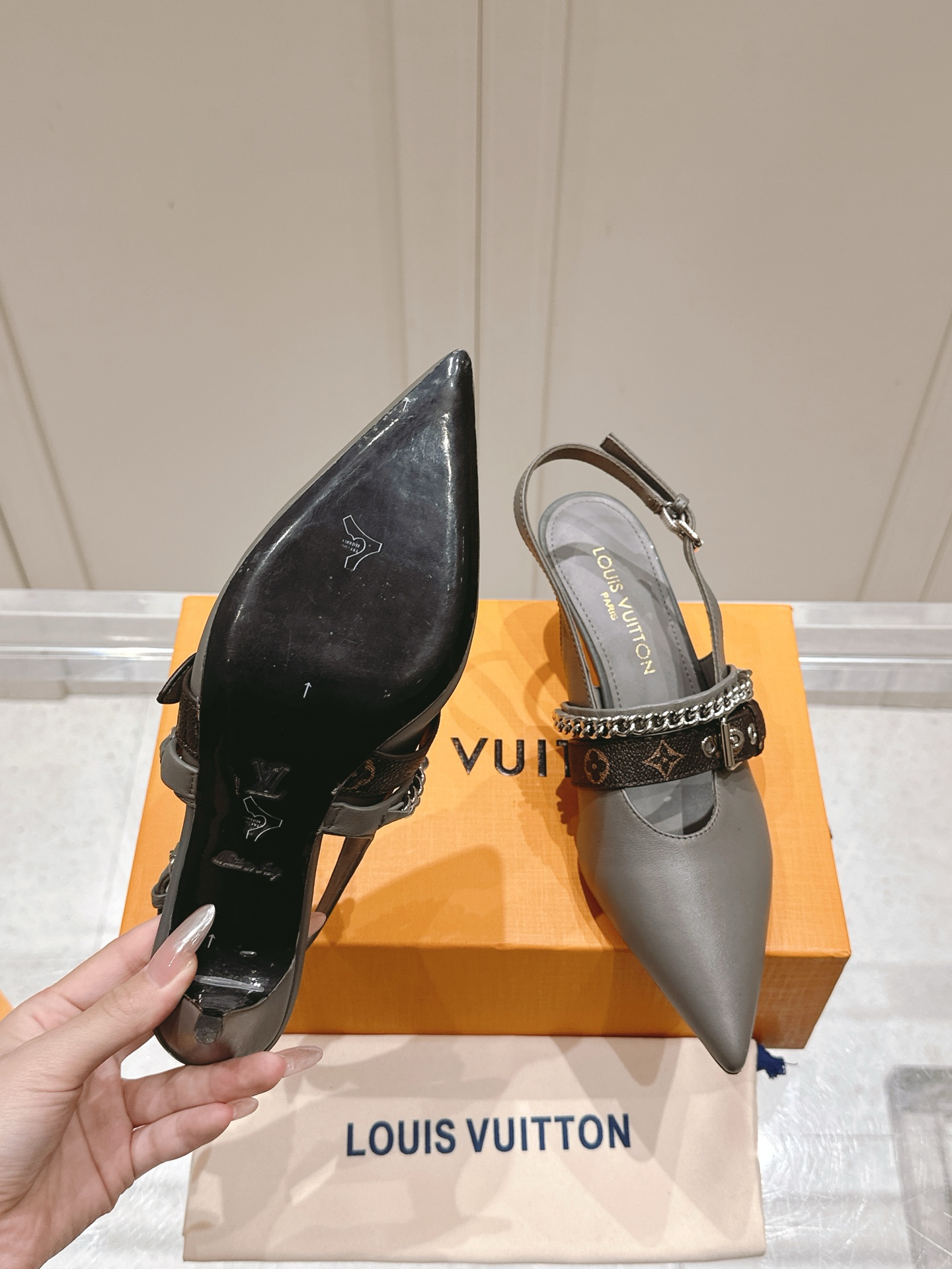 Louis Vuitton Cherry Print Slingback Heels Women’s Designer Pointed Toe Shoes