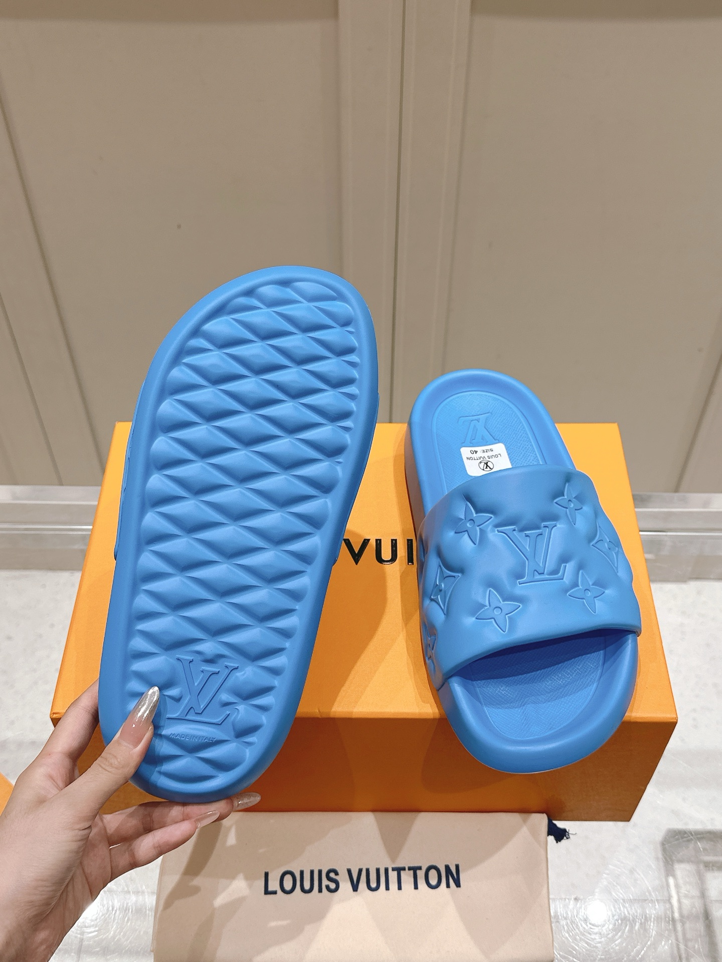 Louis Vuitton Waterfront Mule Sandals Pool Slides blue