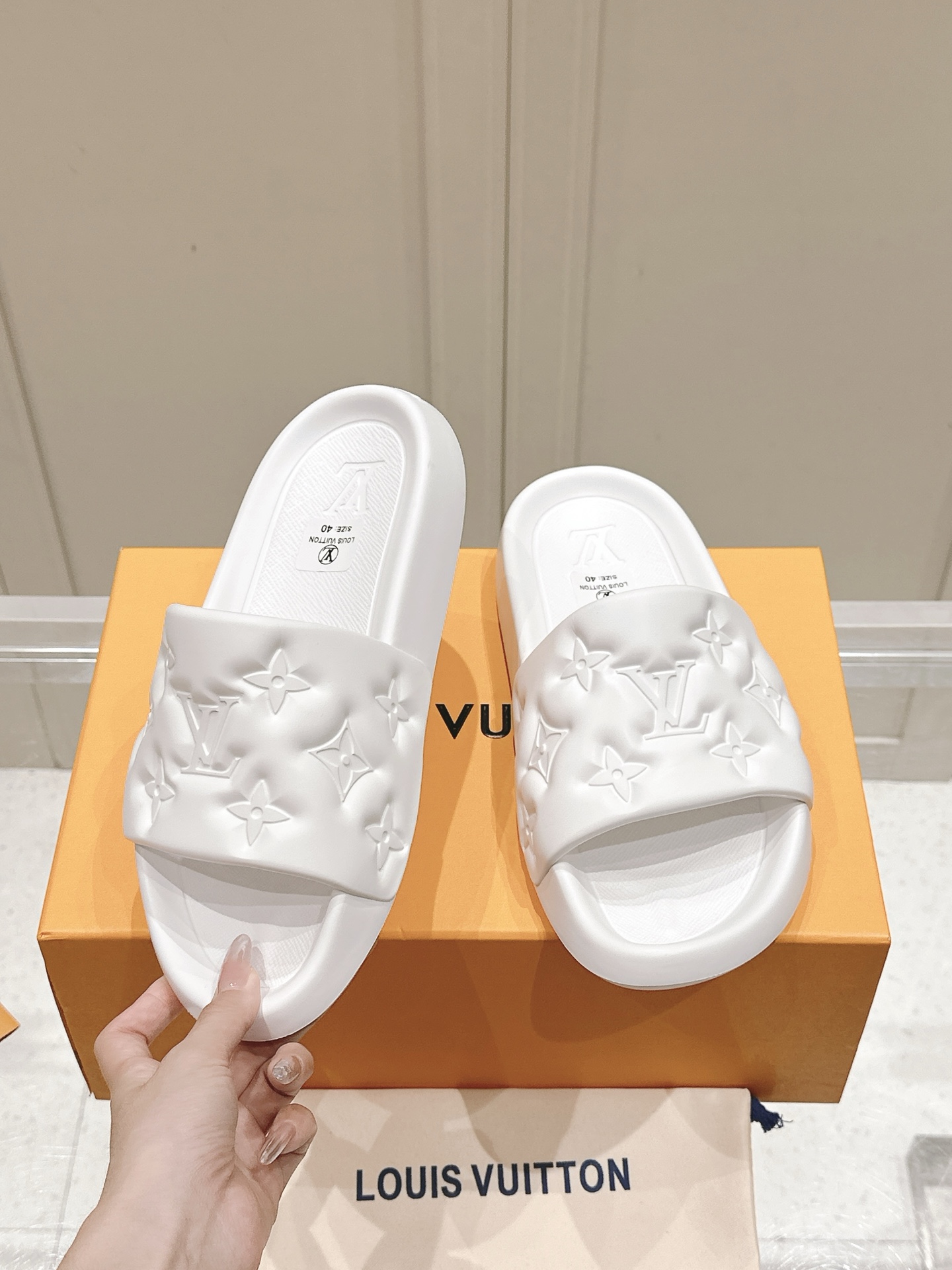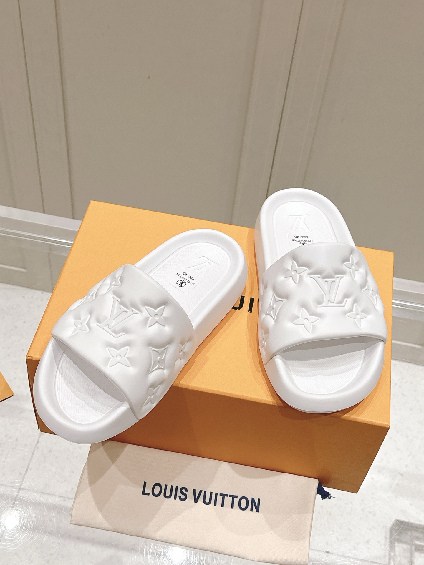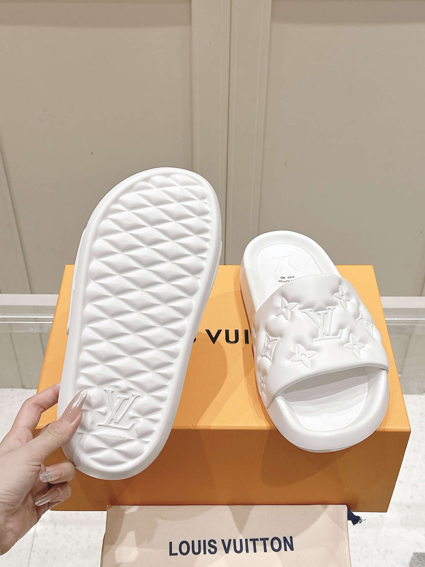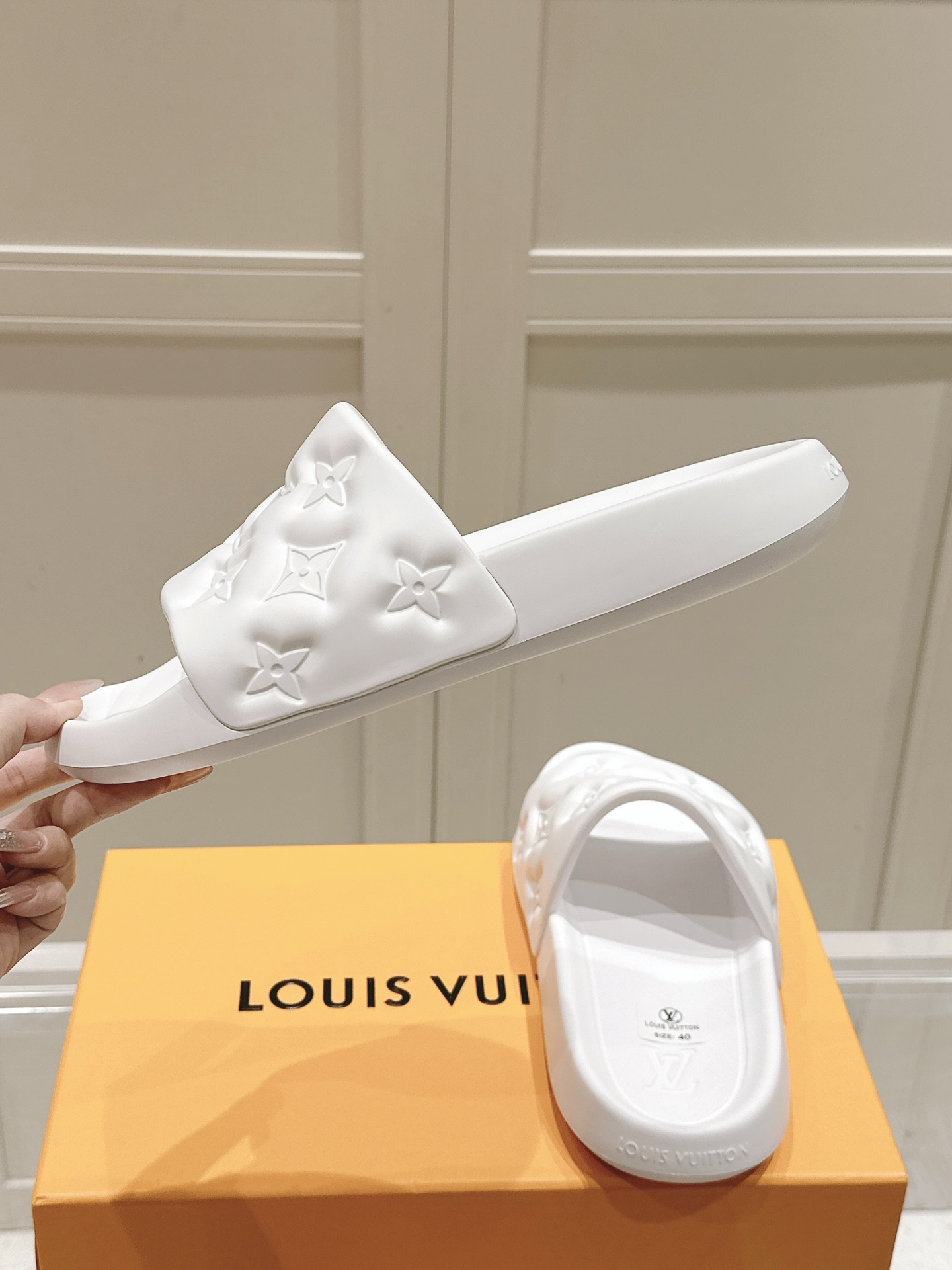 Louis Vuitton Waterfront Mule Sandals Pool Slides white