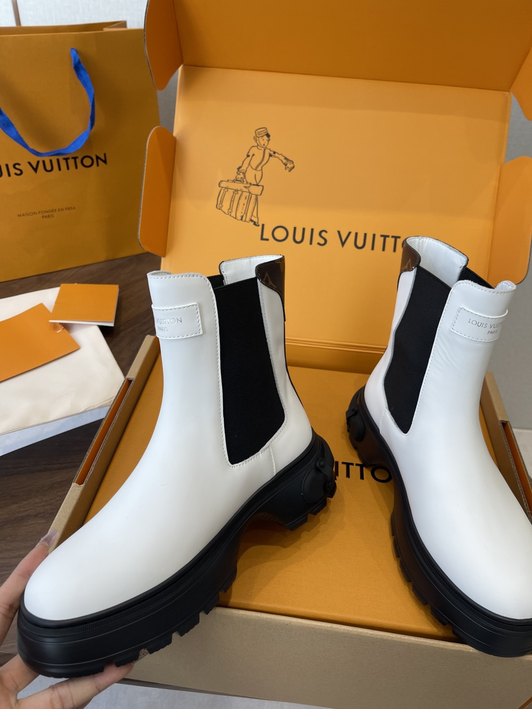 These authentic boots come complete with the iconic Louis Vuitton orange packaging, including the signature box and shopping bag, making them an ideal gift for yourself or a loved one.