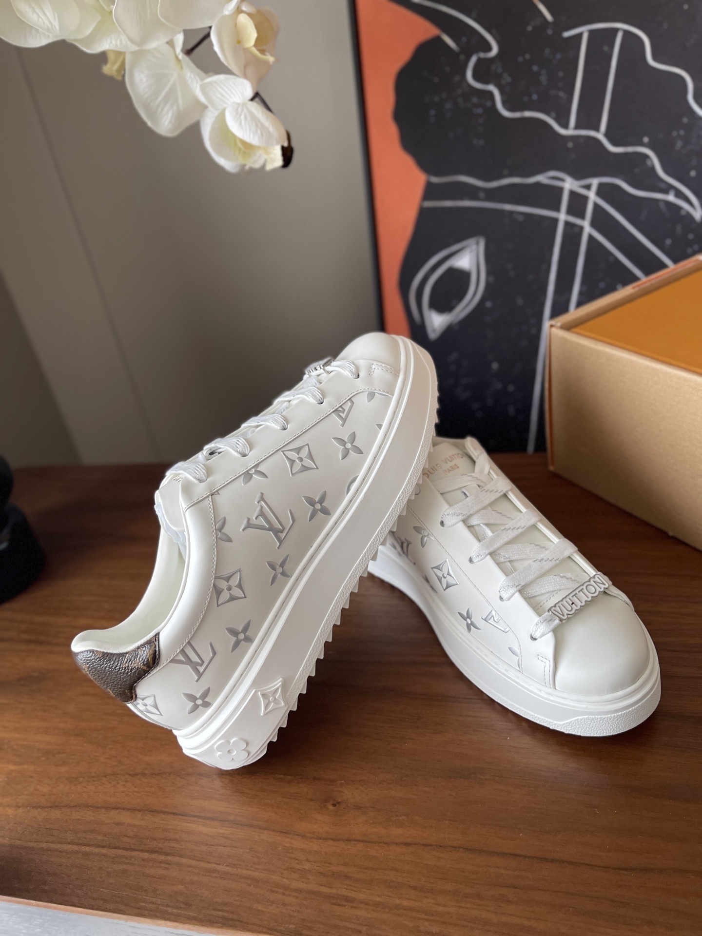 Louis Vuitton Men’s White Leather Trainers – Monogram Perforated Low-Top Sneakers