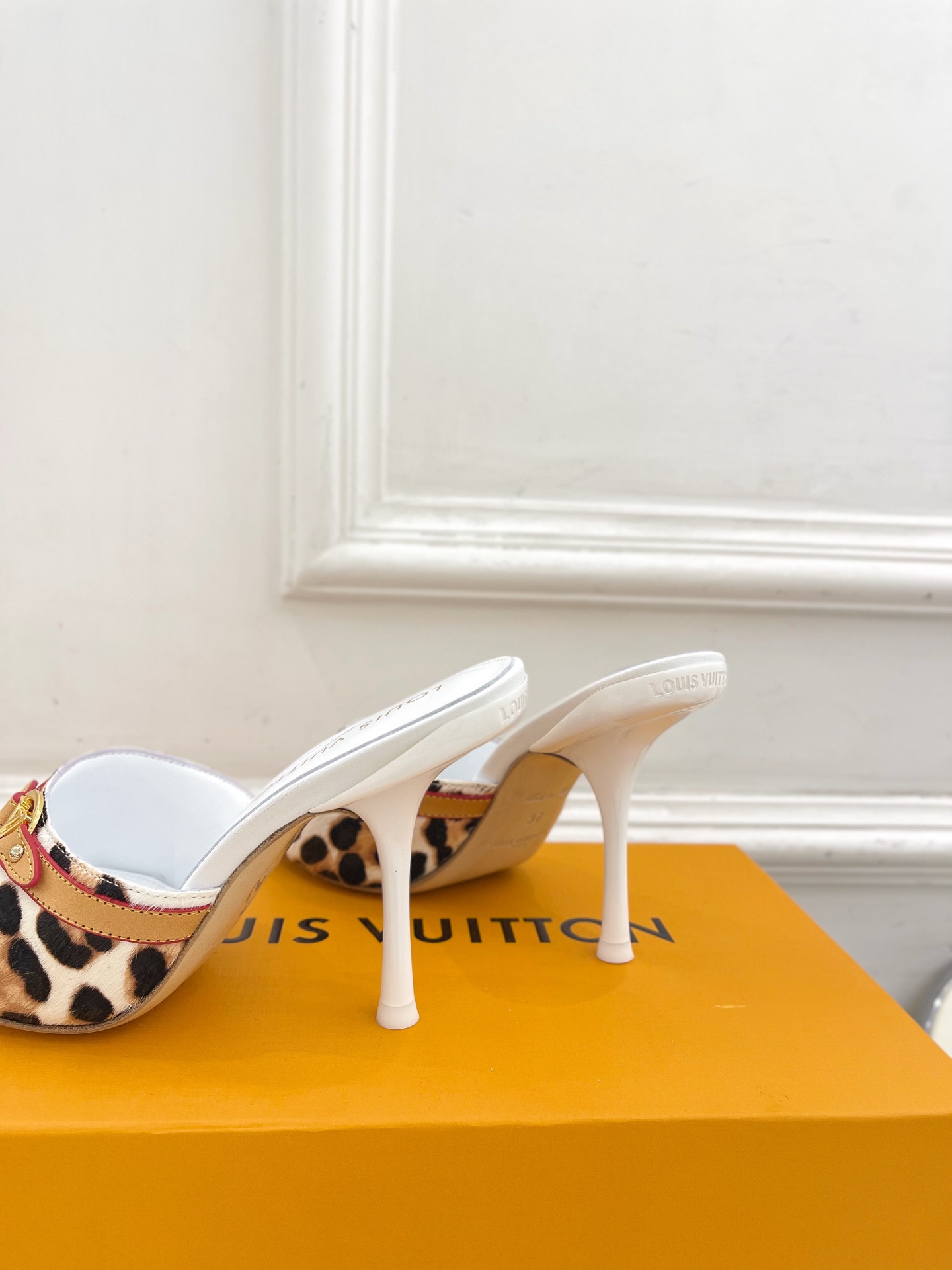 Louis Vuitton White Leopard Print High Heel Slides