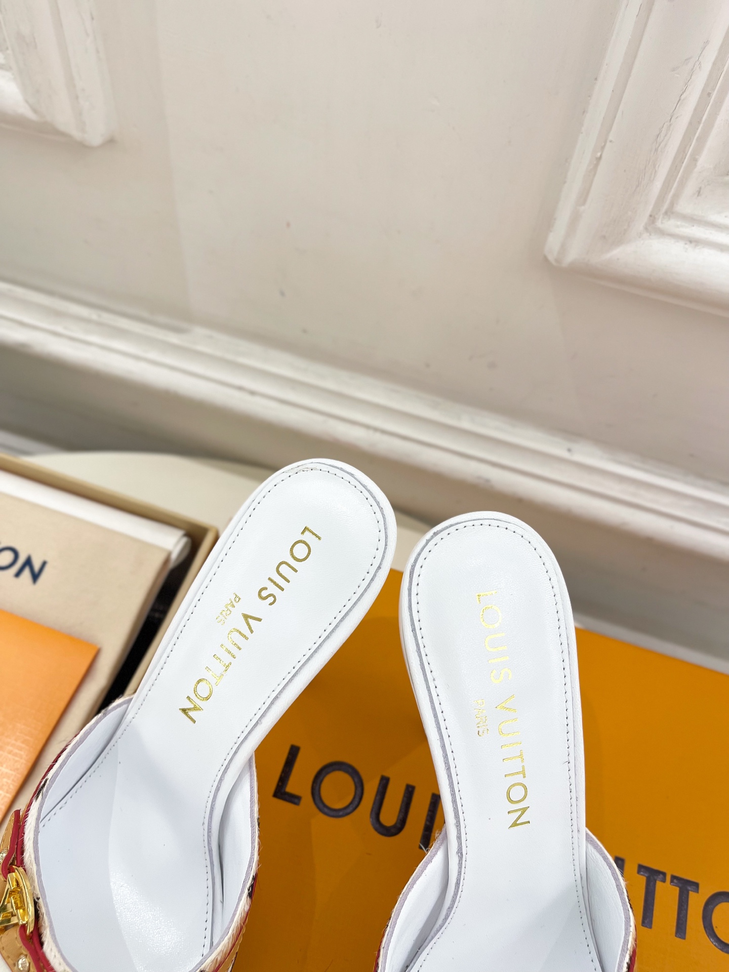 • Design: Open toe with gold LV chain detail