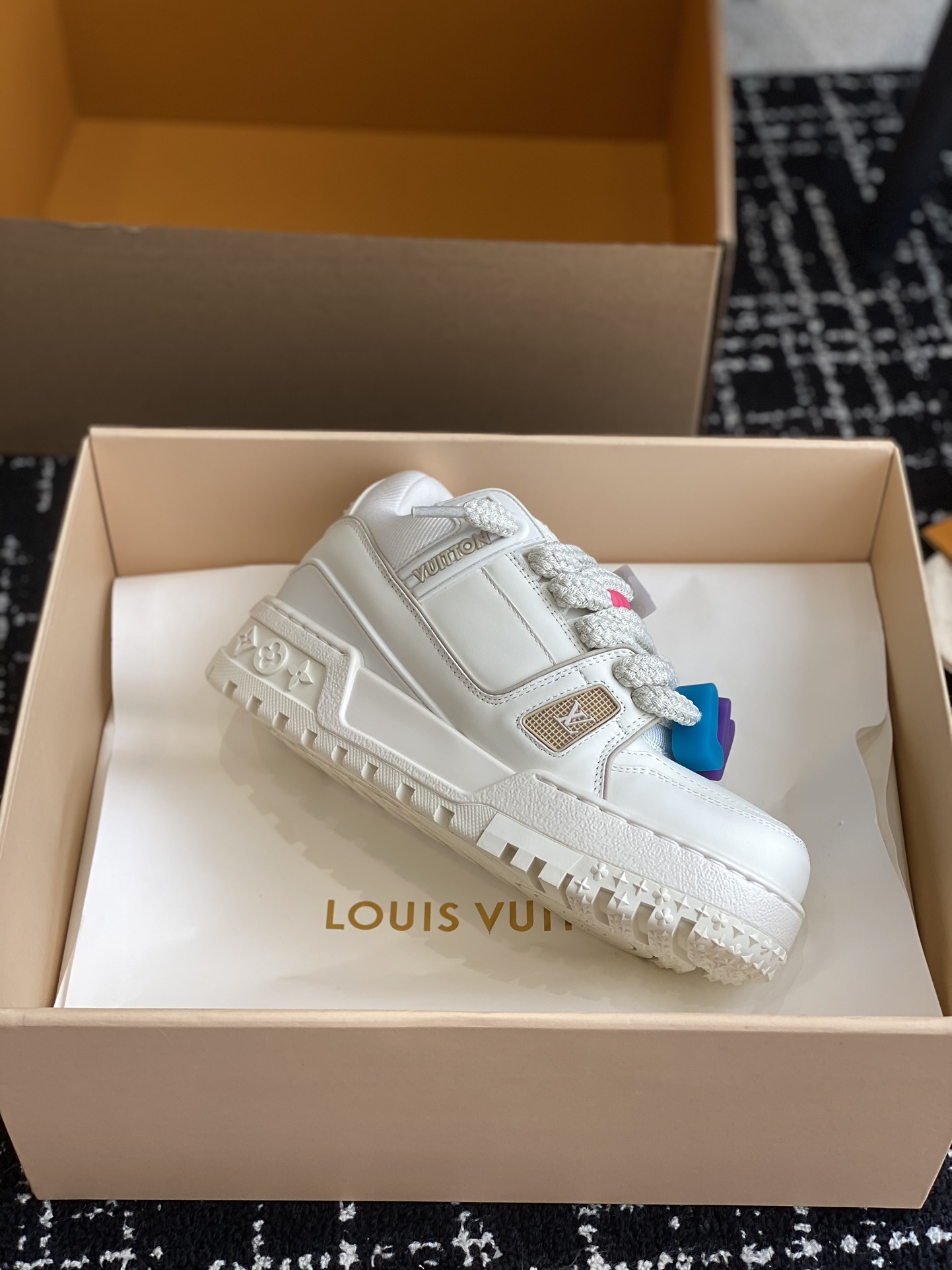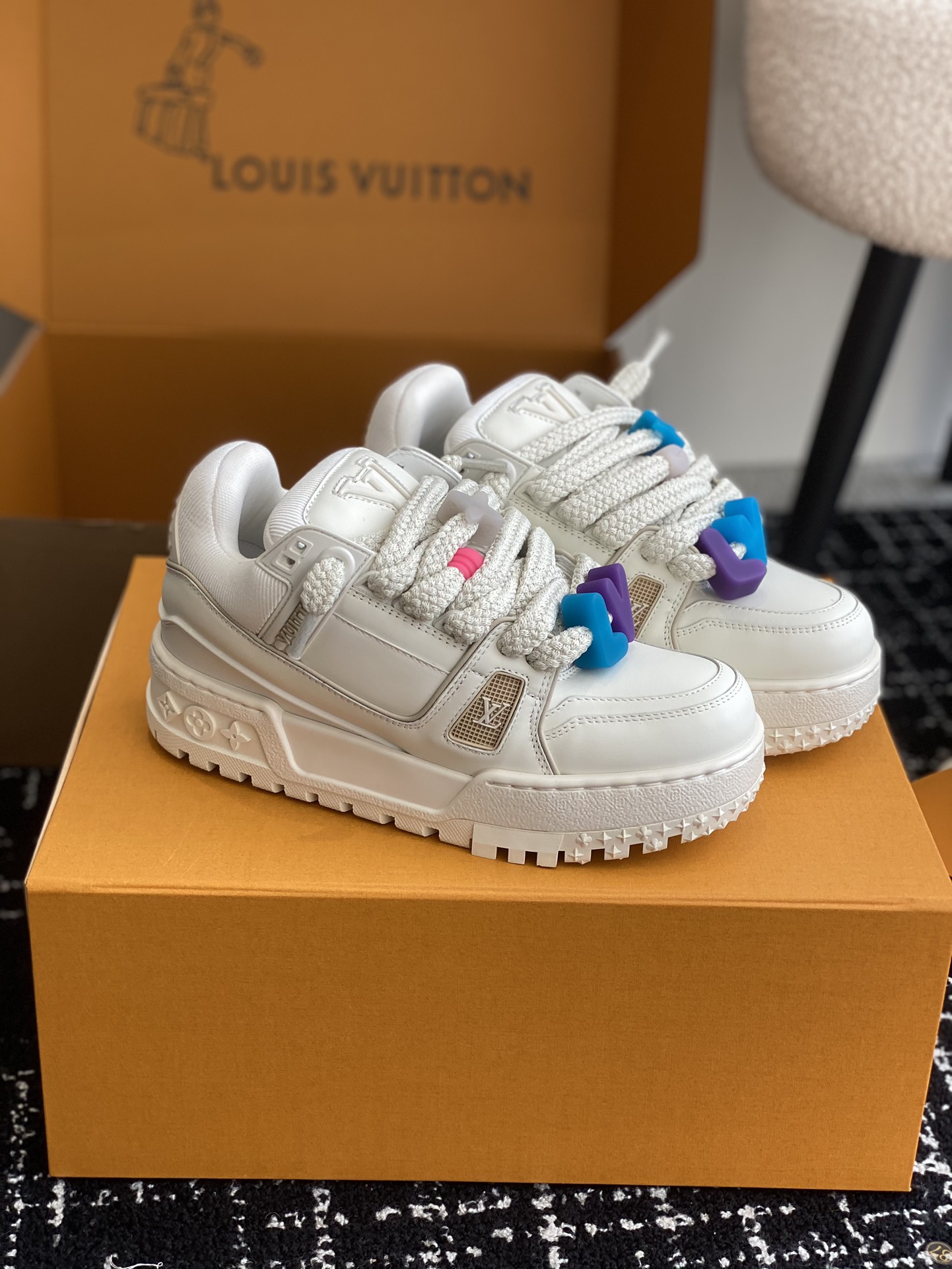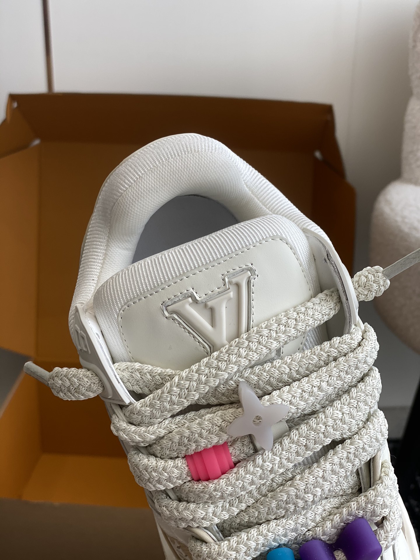 Louis Vuitton Men’s White Leather Trainers – Monogram Perforated Low-Top Sneakers