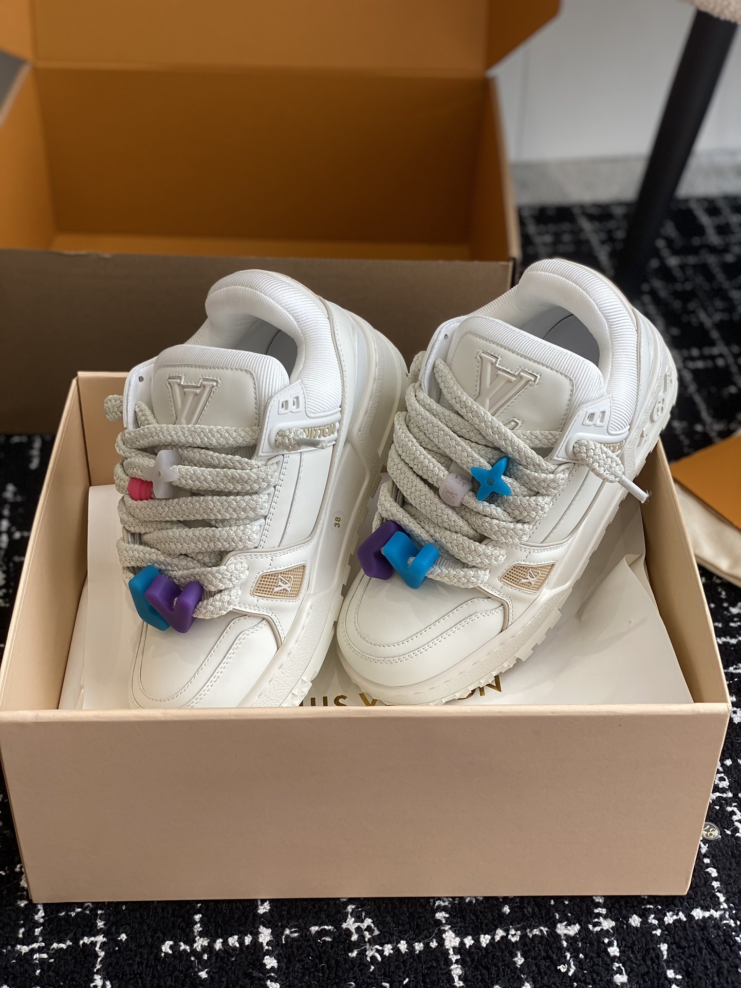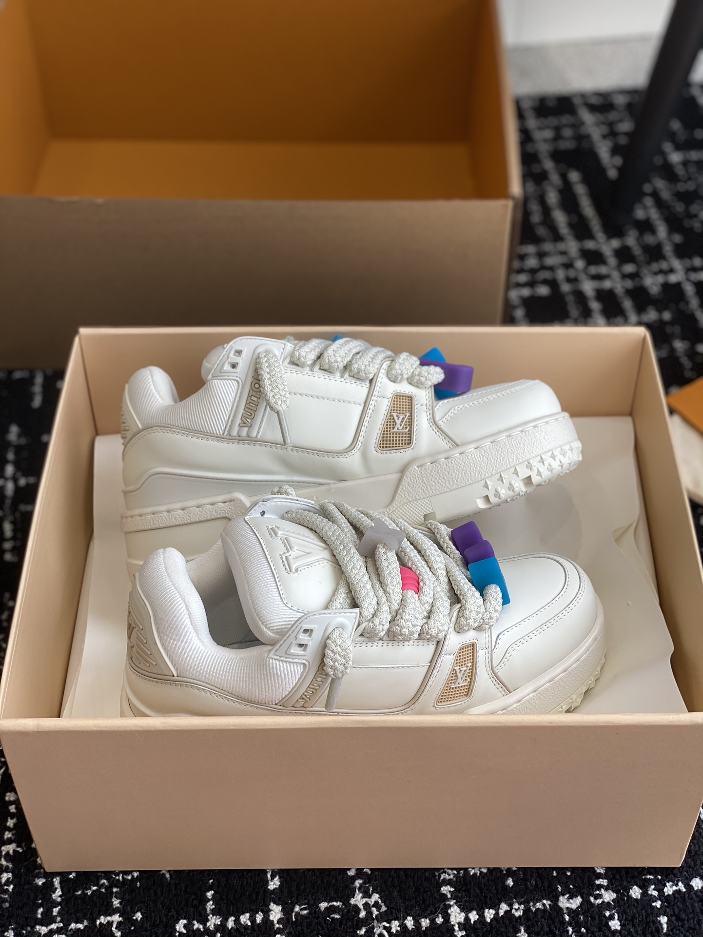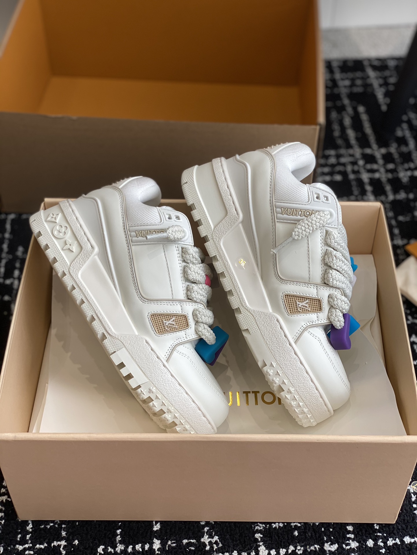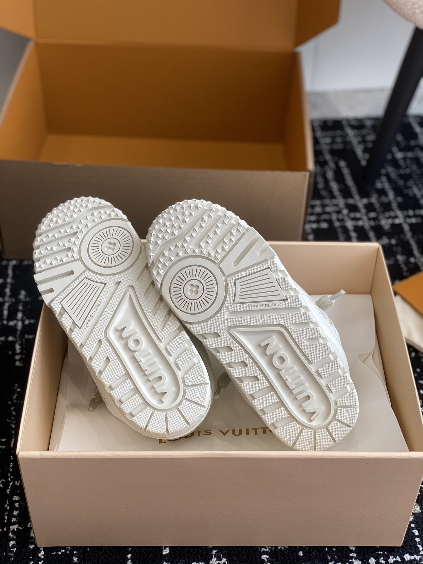 Louis Vuitton Men’s White Leather Trainers – Monogram Perforated Low-Top Sneakers
