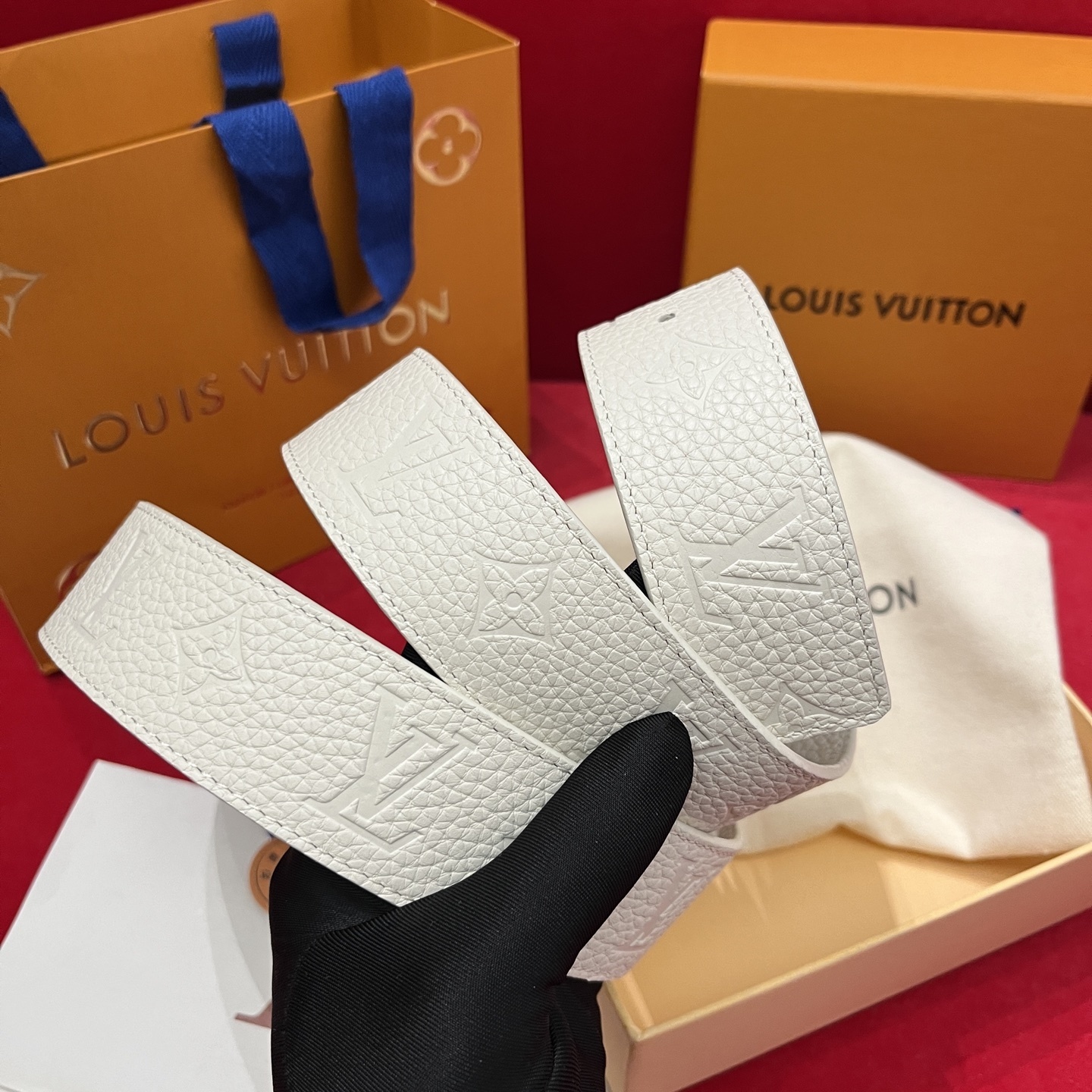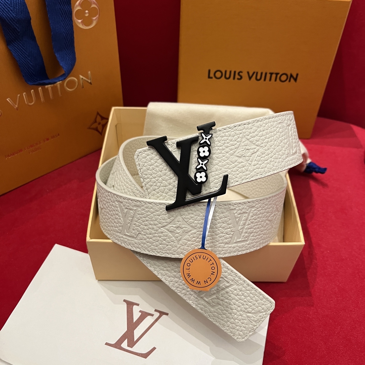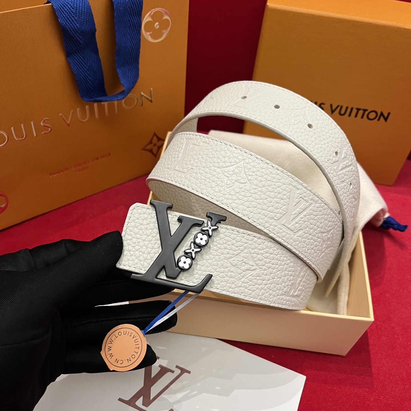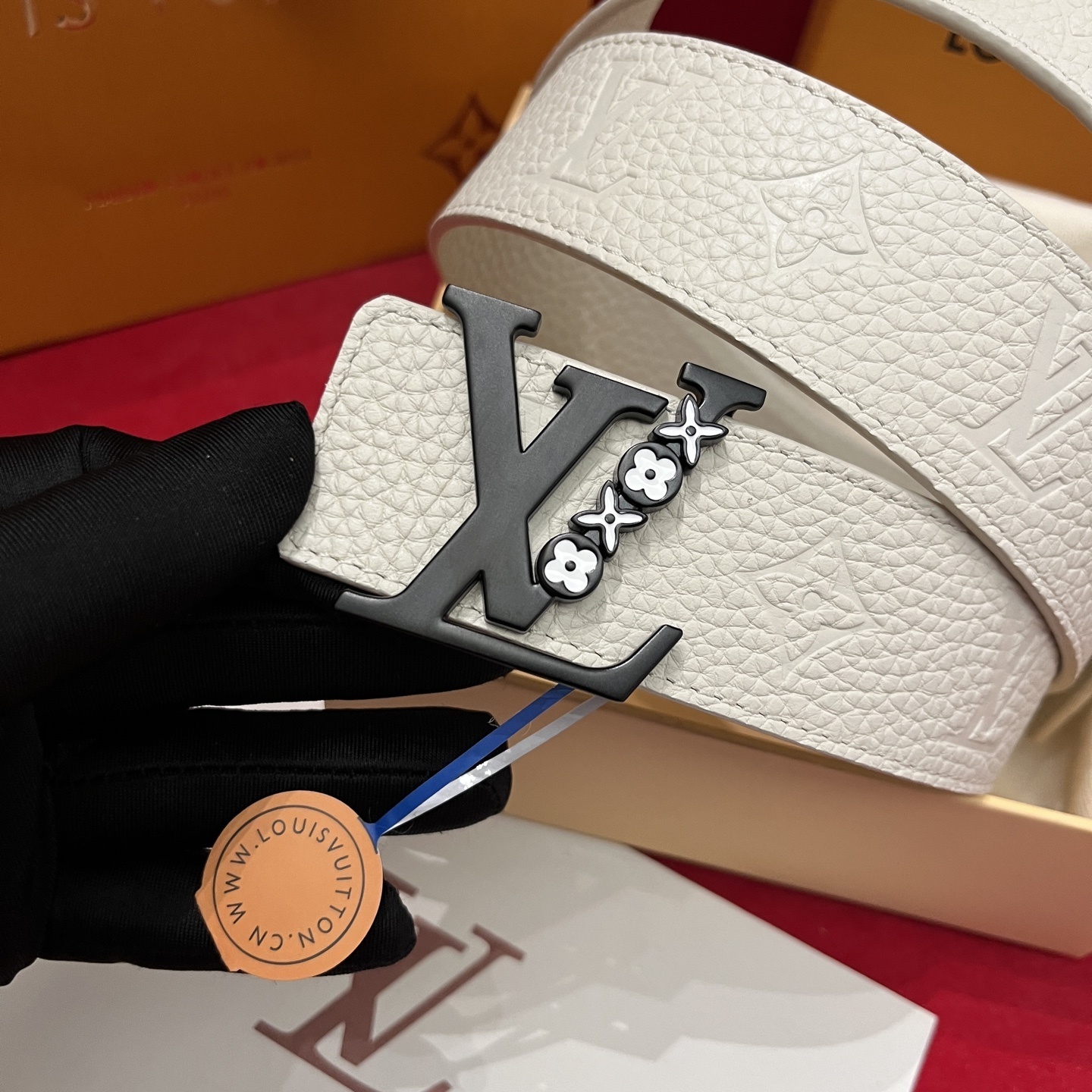Brown leather belt with gold metal buckle engraved with Miu Miu