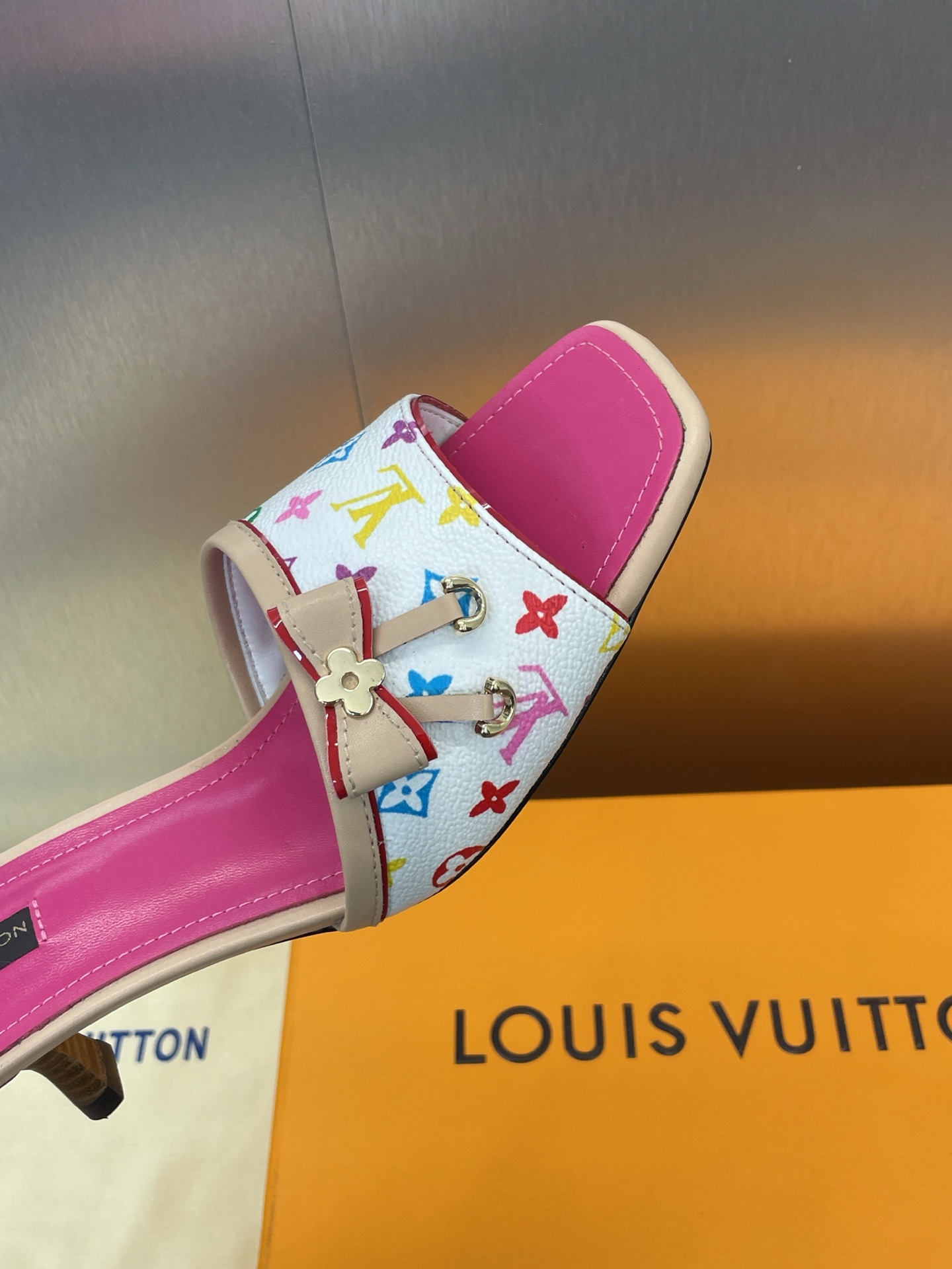 Louis Vuitton Denim Blue Monogram Bow Slide Sandals