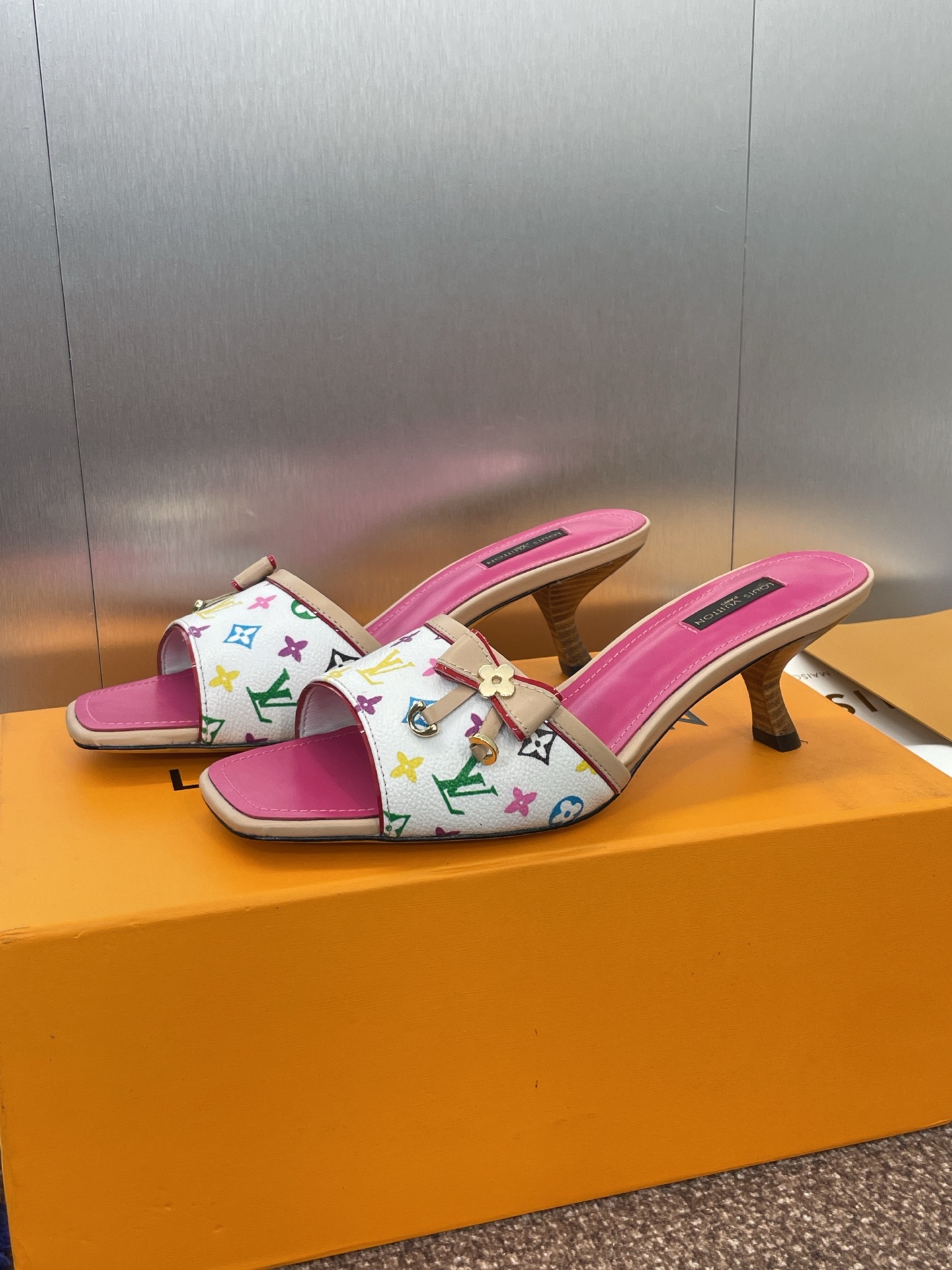 Louis Vuitton Men’s Blue Denim Sandals Cherry Monogram Pattern Adjustable Straps Rubber Sole