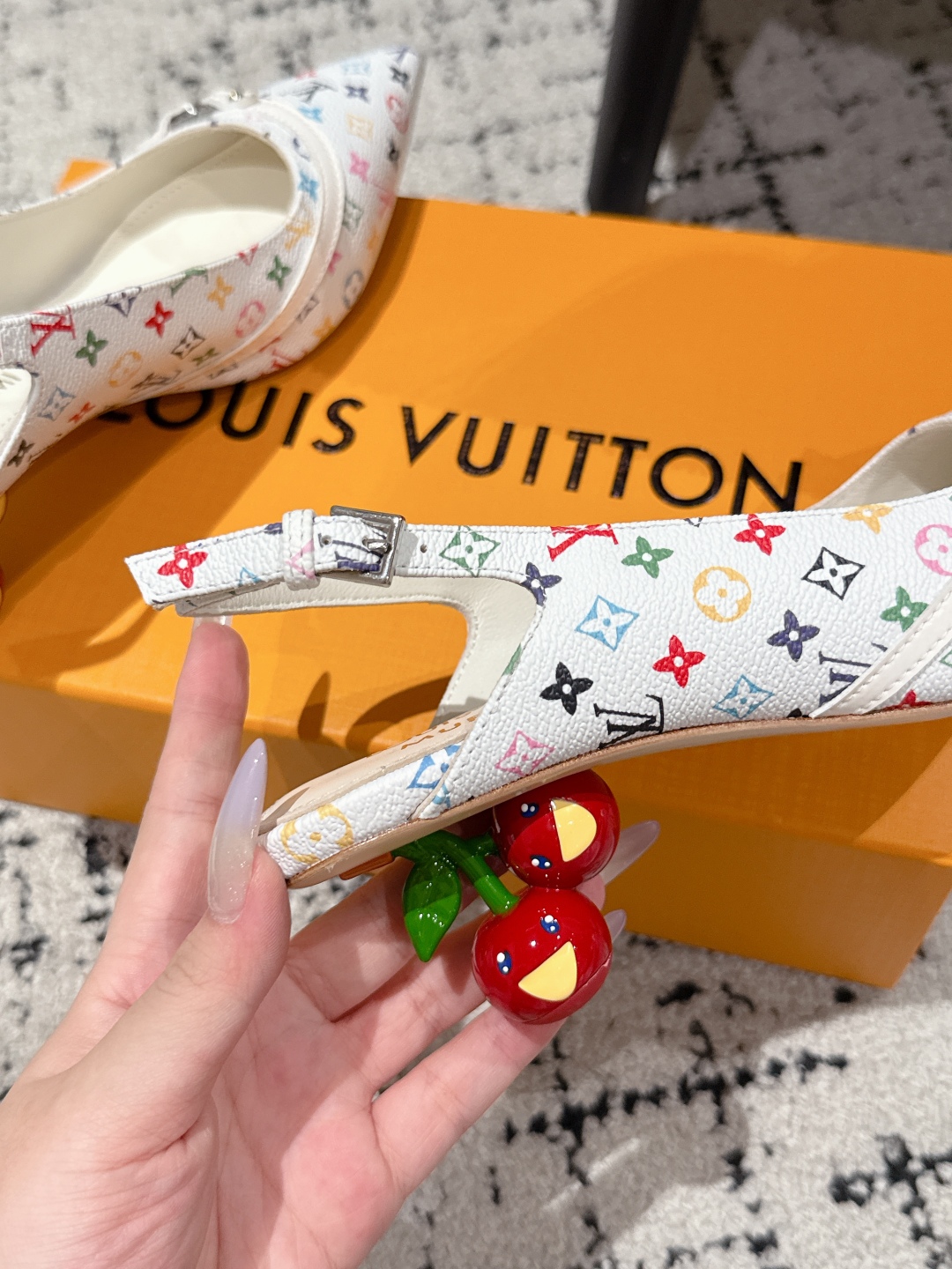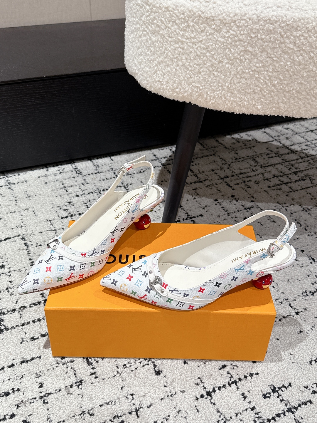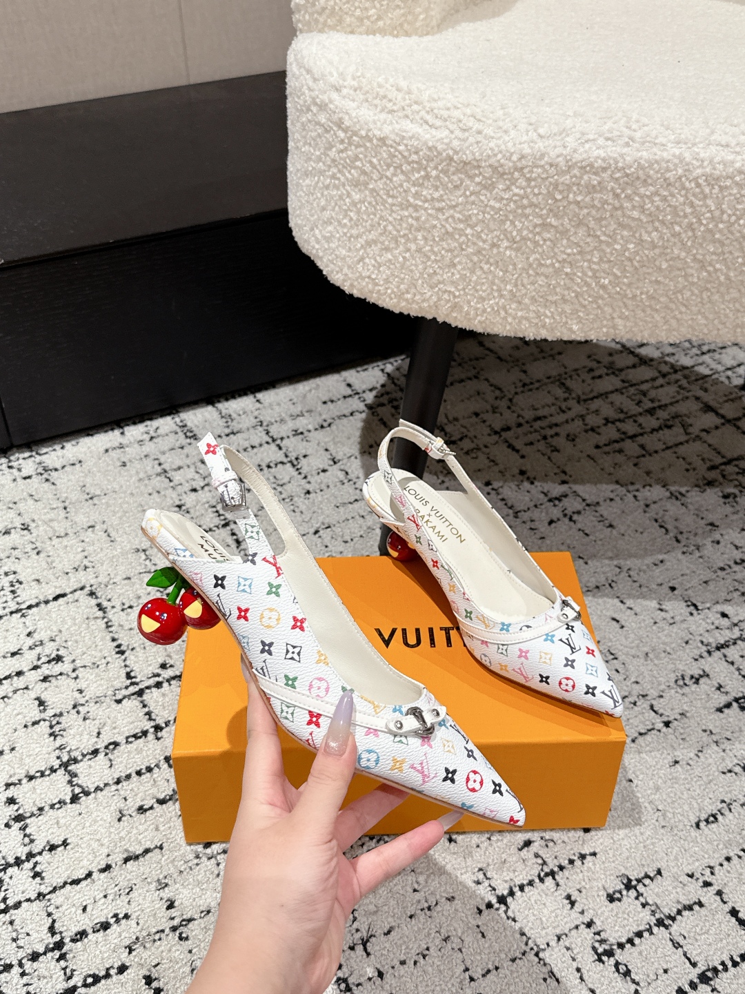 Louis Vuitton White Multicolor Monogram Slingback Heels