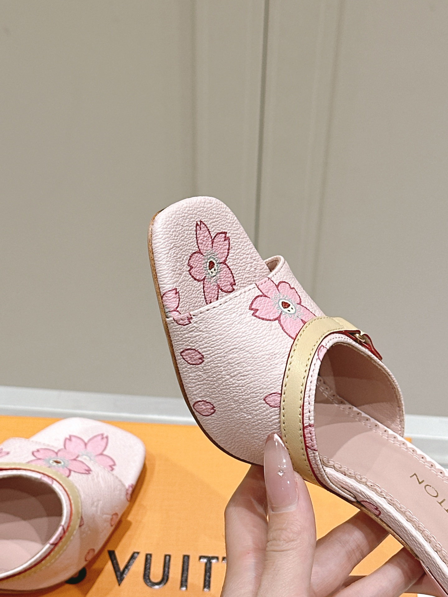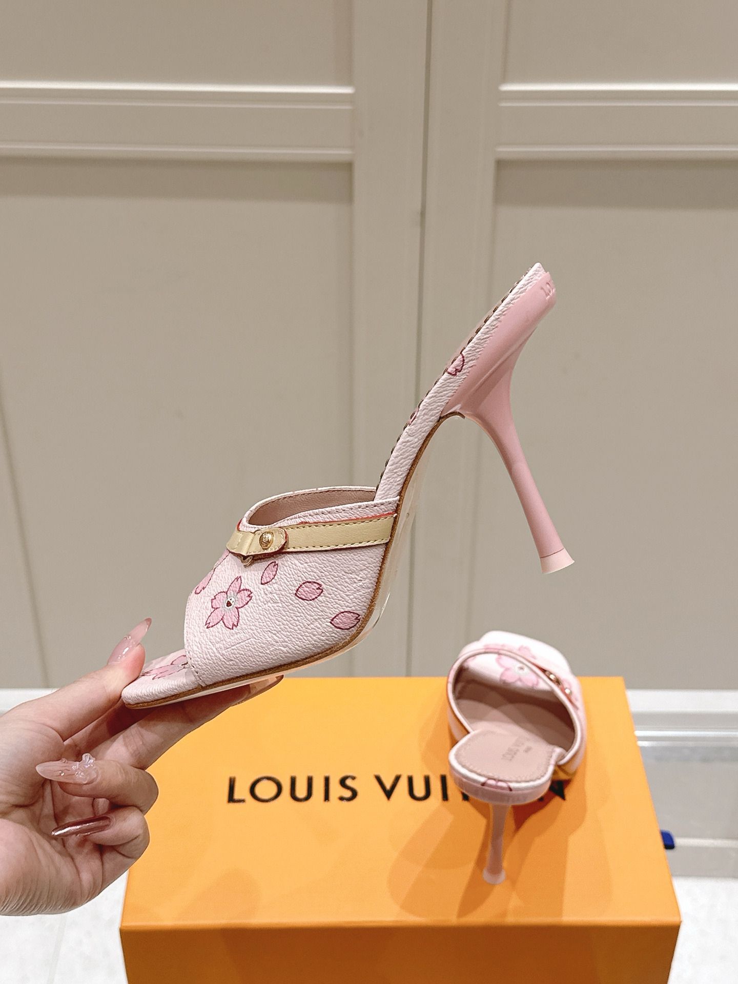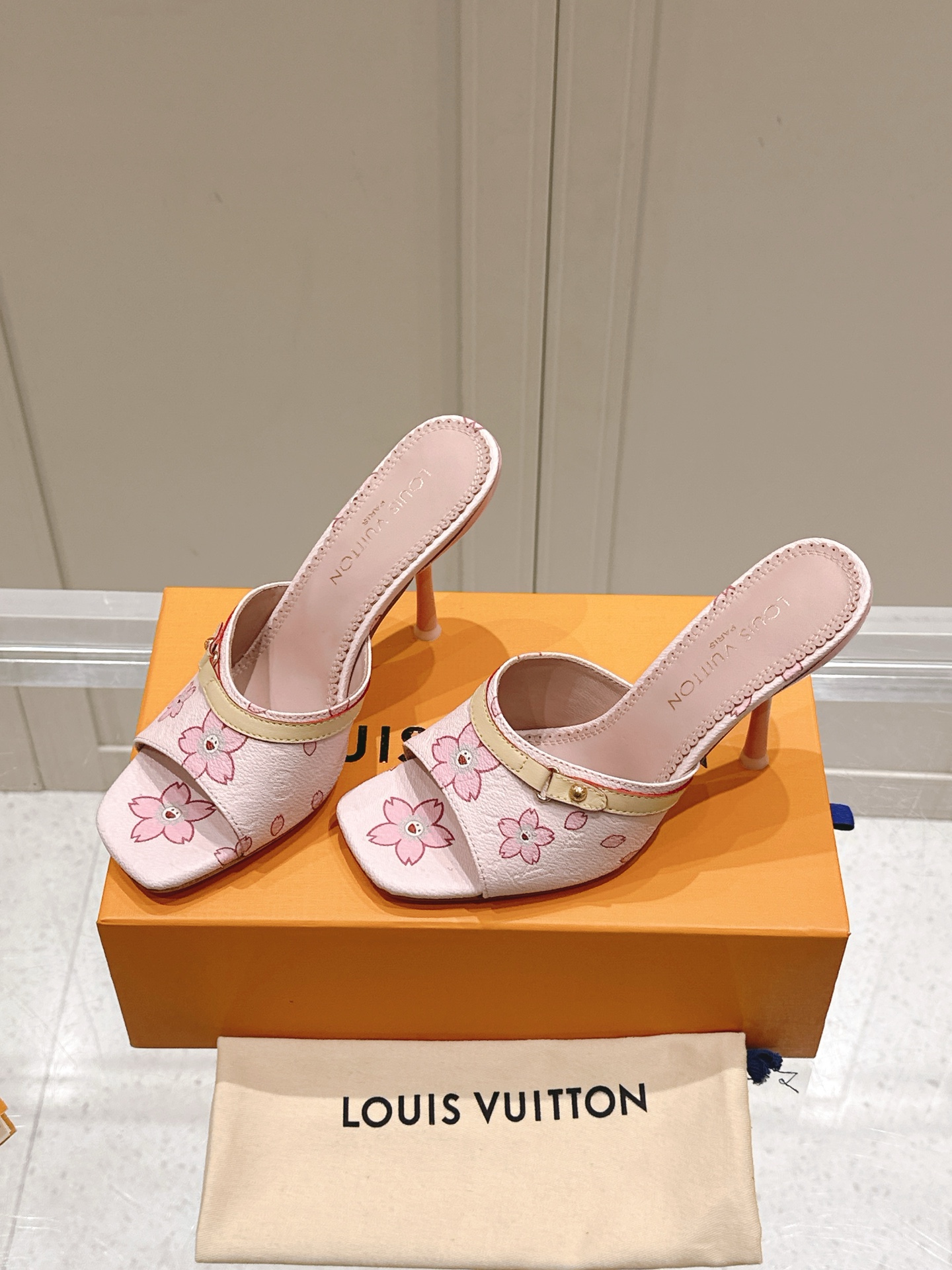 Louis Vuitton Women’s Pink Flower Print Slide Sandals – Monogram Canvas Slip-On Heels