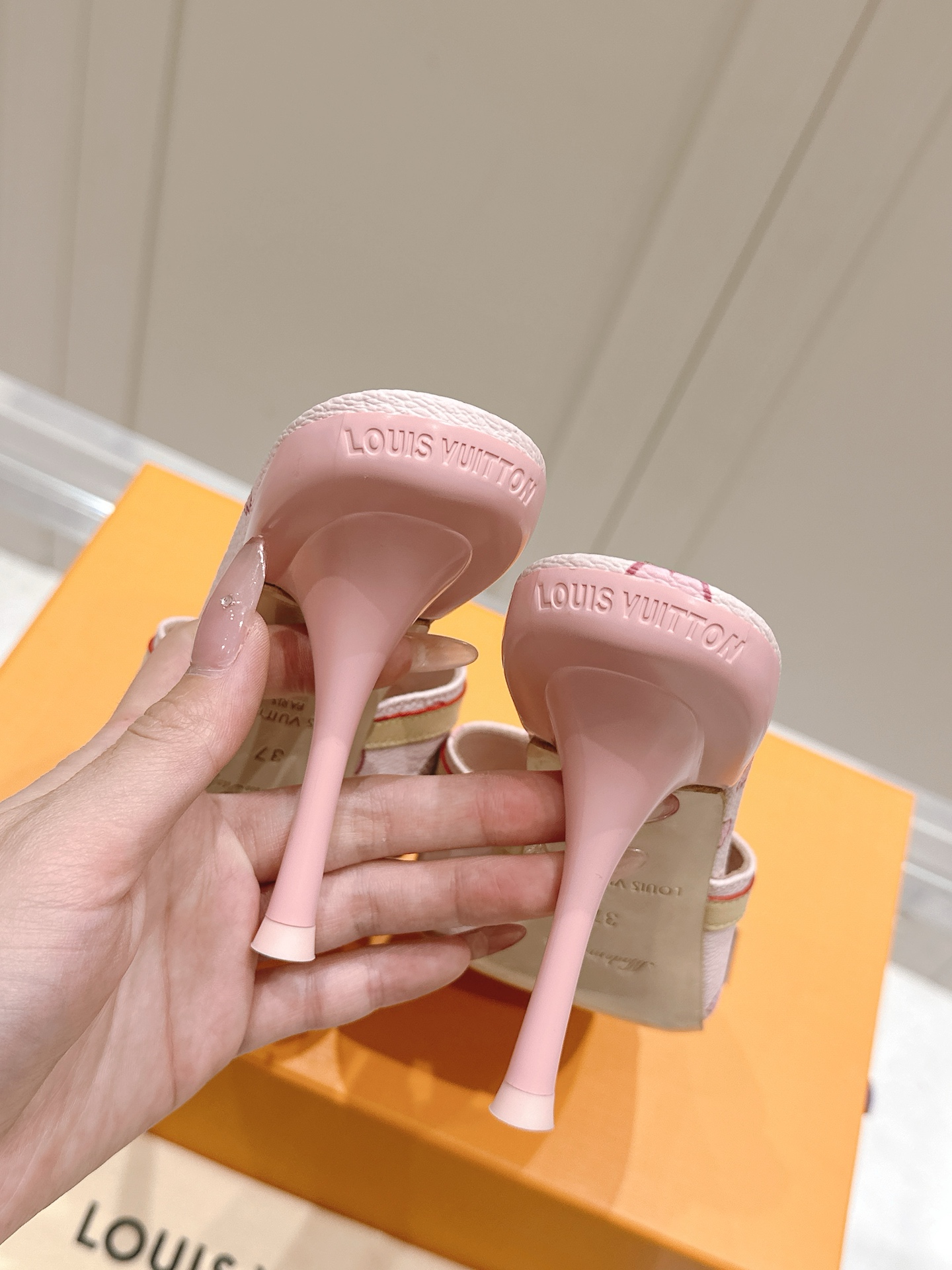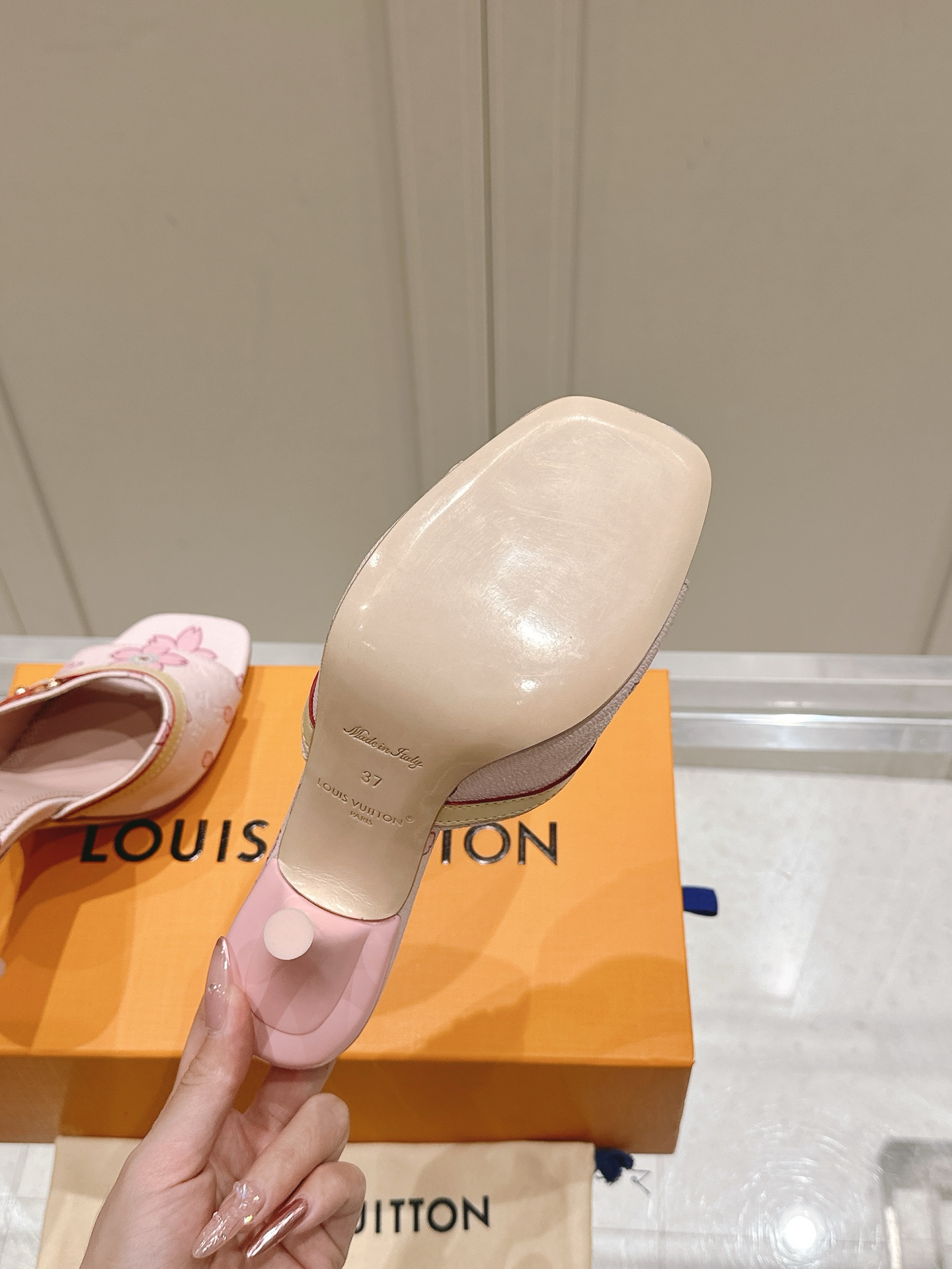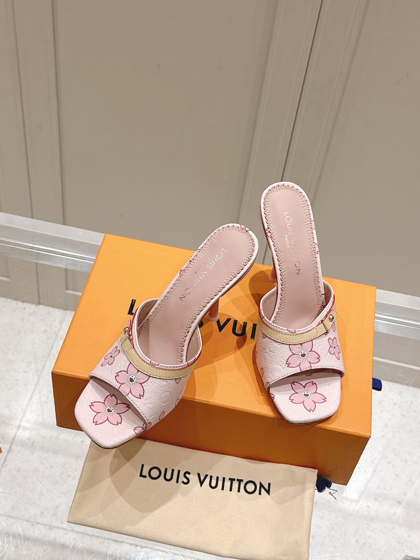 Louis Vuitton Women’s Pink Flower Print Slide Sandals – Monogram Canvas Slip-On Heels