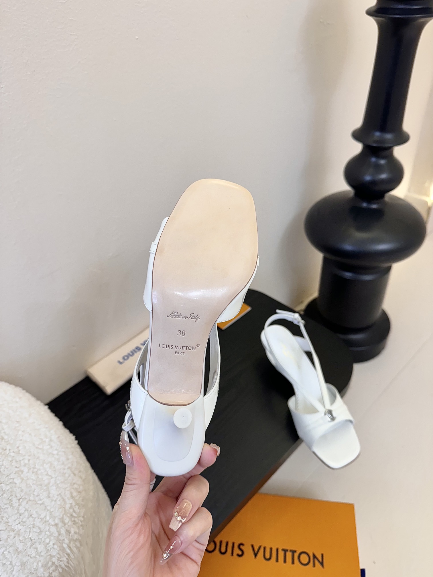 • Color: Elegant white with metallic LV logo accent on the front strap.
