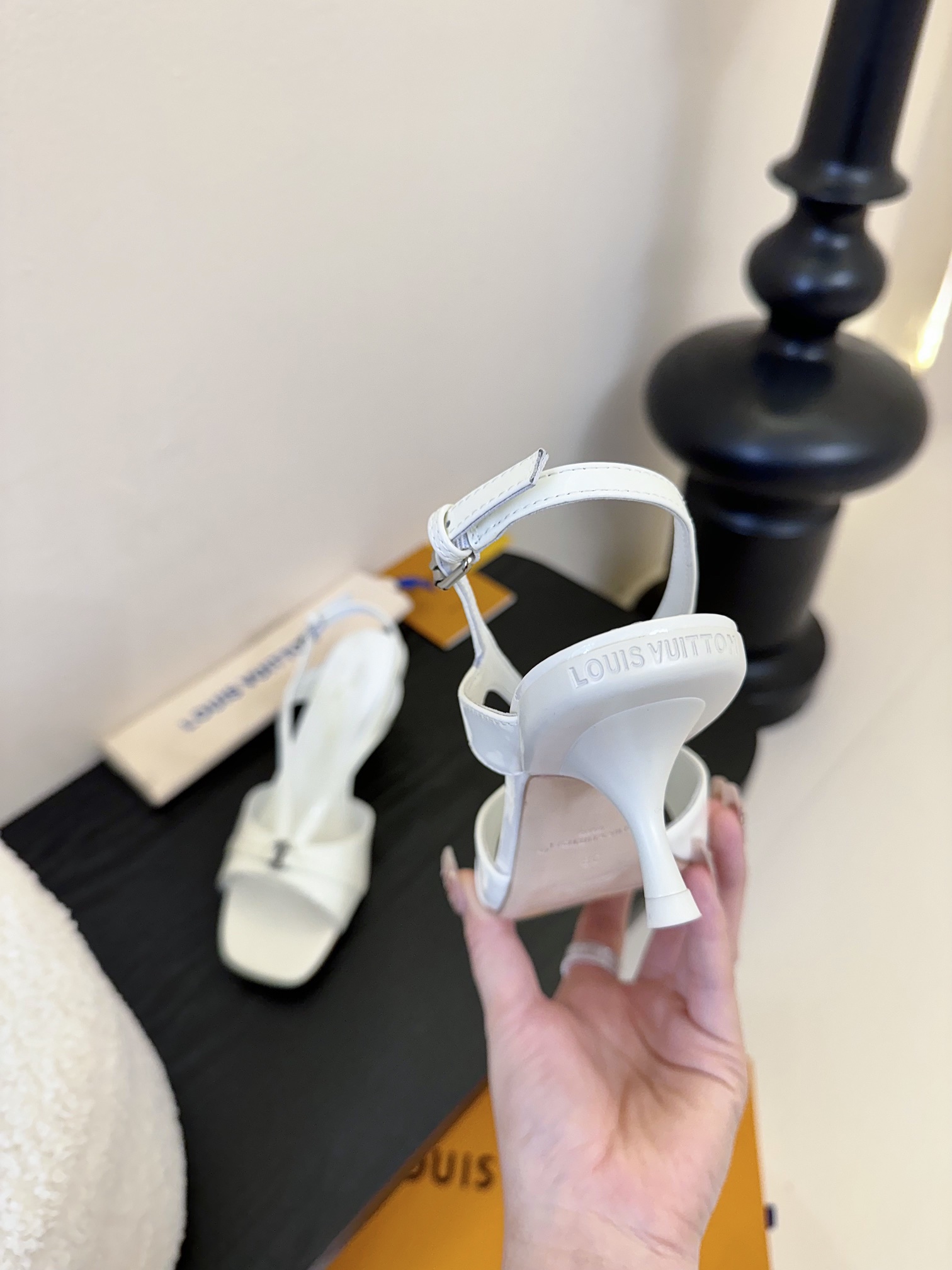 Louis Vuitton Women’s White Leather Sandals LV Logo Buckle Open Toe Adjustable Strap