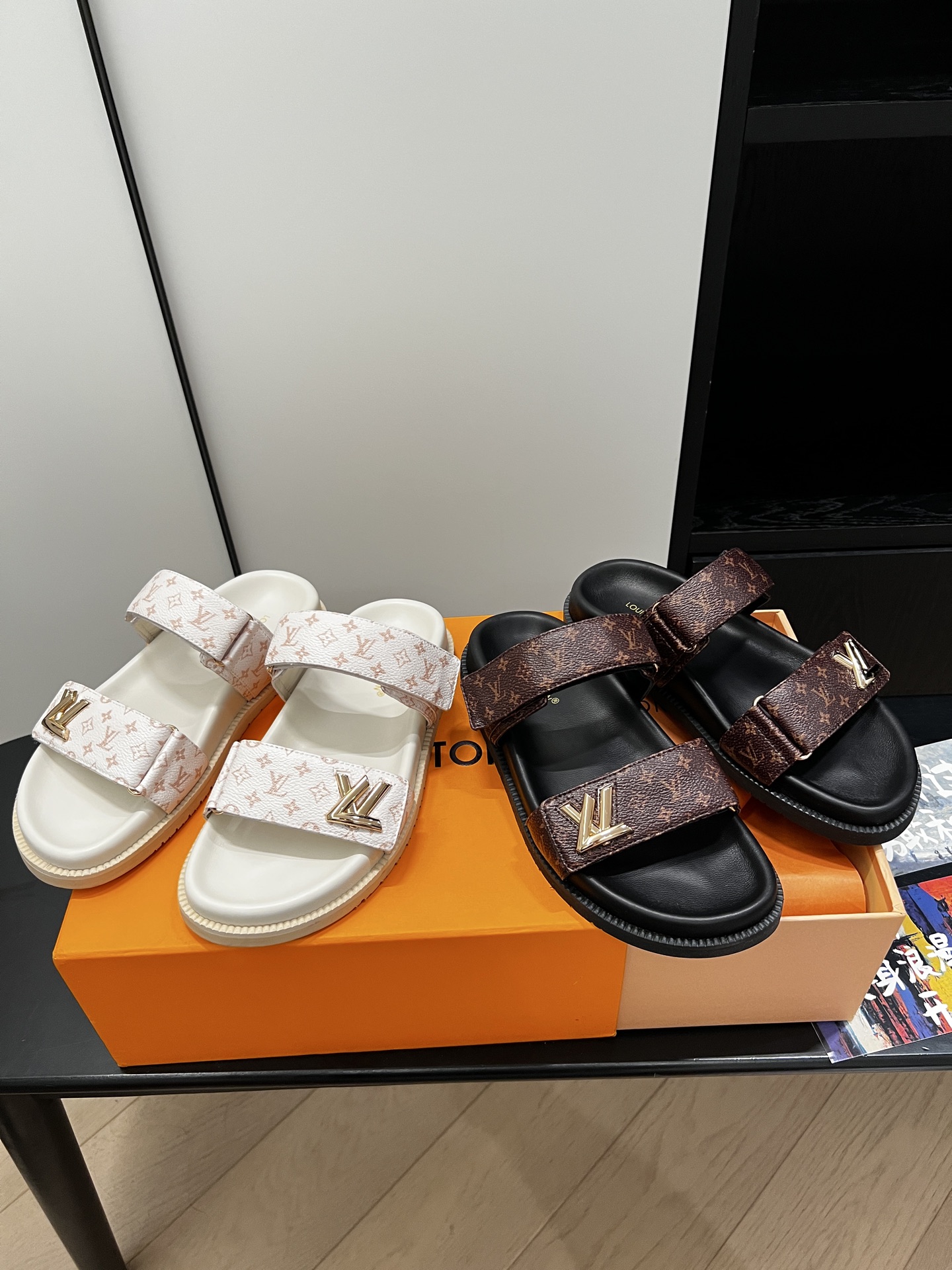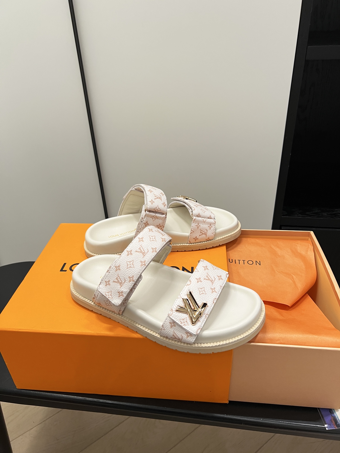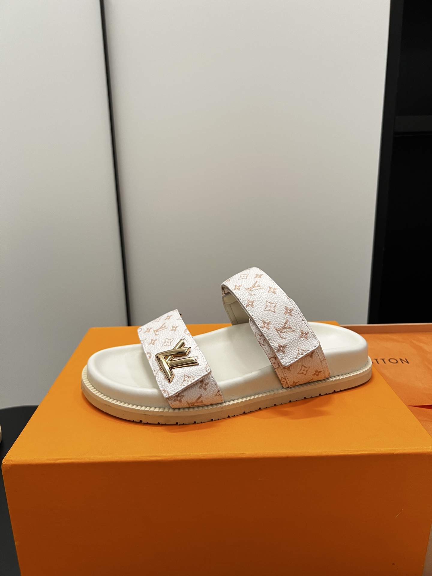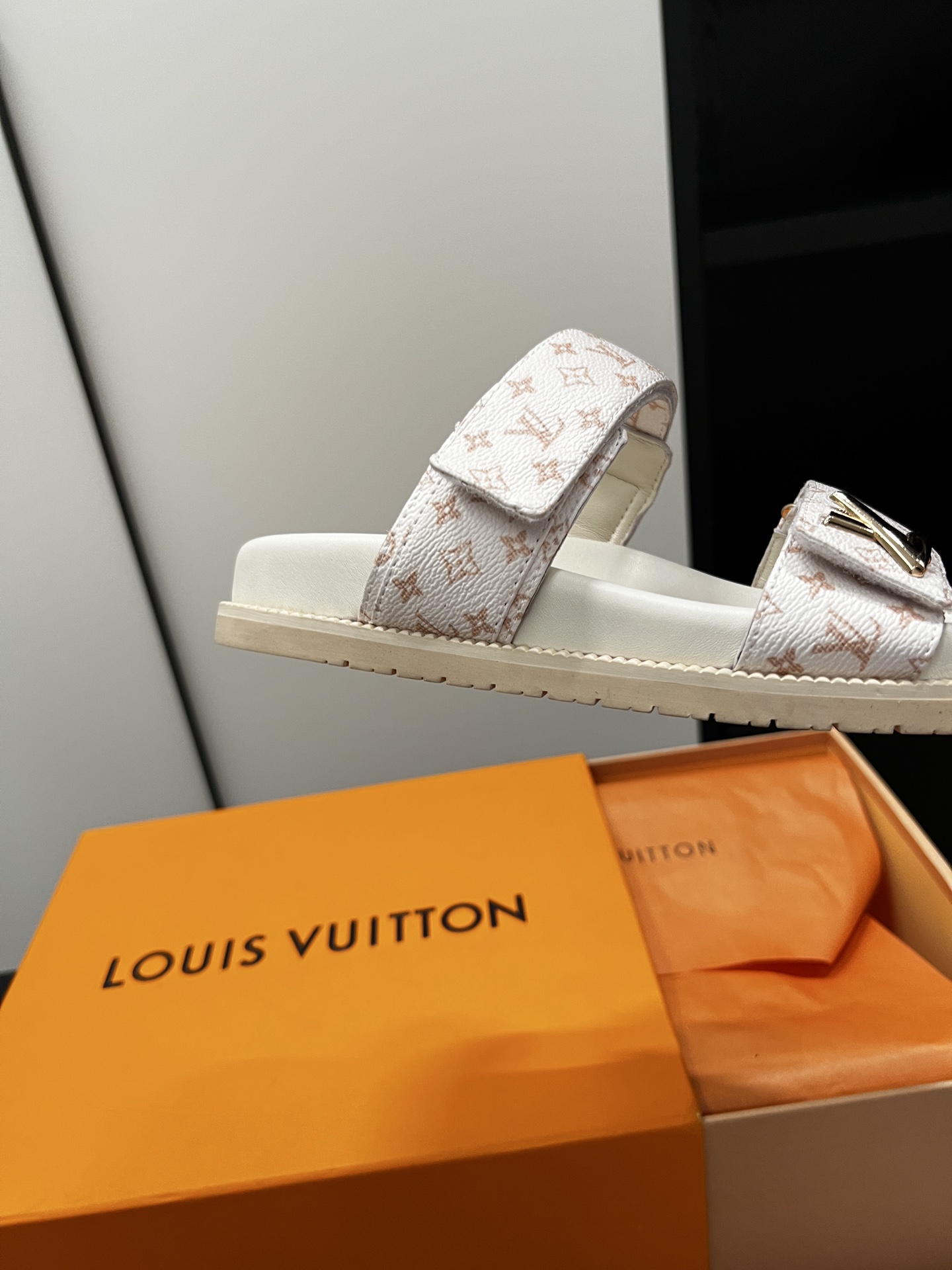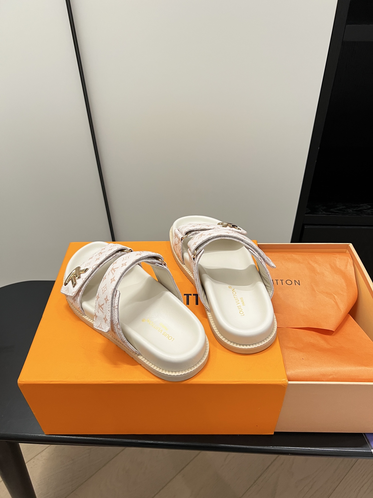 Louis Vuitton Men’s Navy Blue Embossed Monogram Slide Sandals