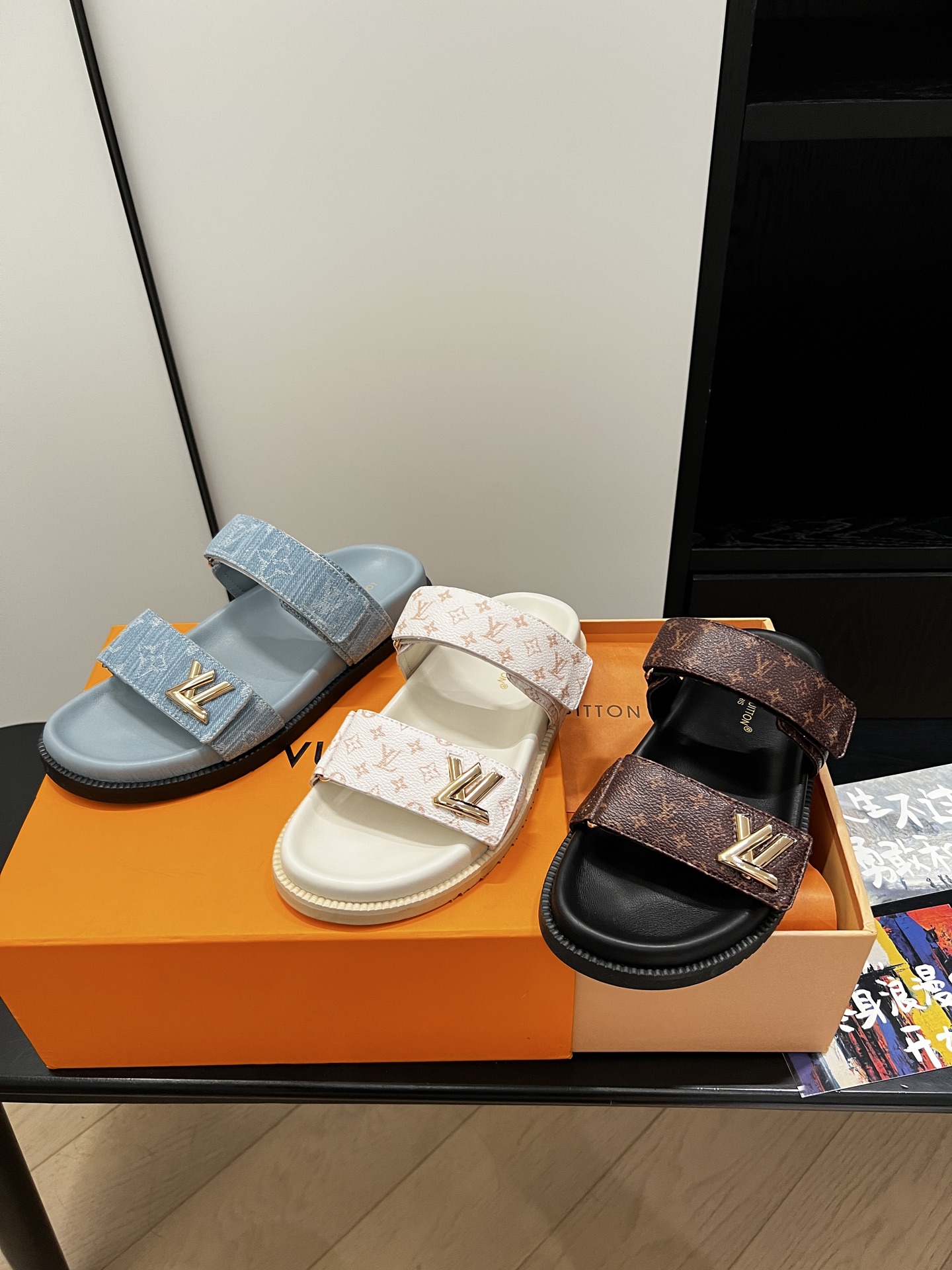 Louis Vuitton Denim Blue Monogram Bow Slide Sandals