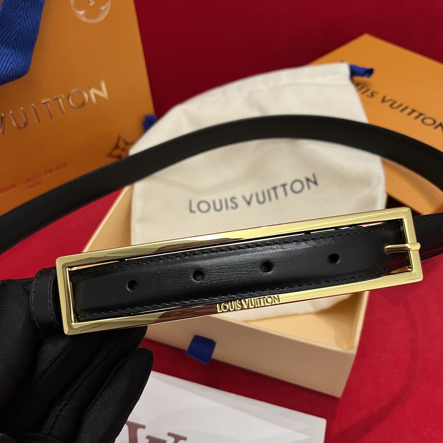 • Elegant Design: The polished gold-tone rectangular frame buckle provides a bold yet refined look, subtly engraved with the iconic Louis Vuitton signature.