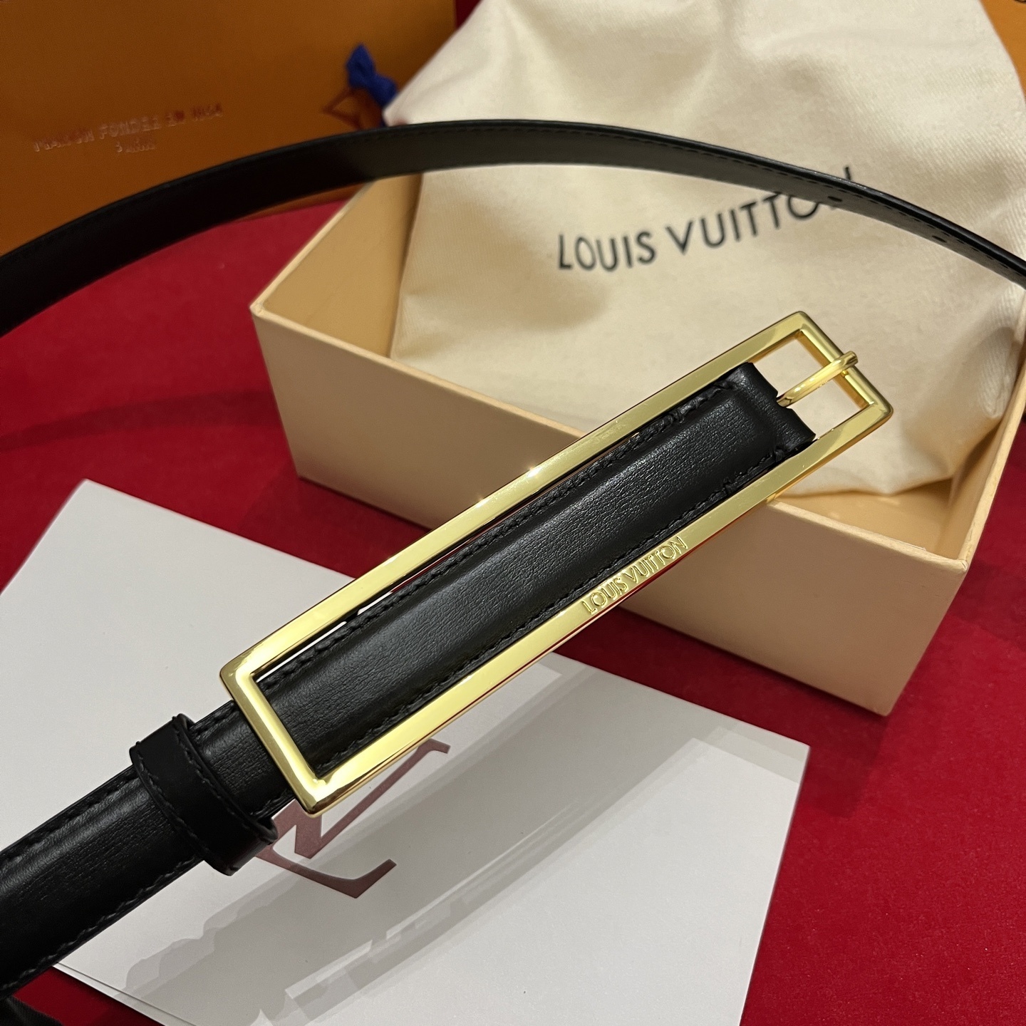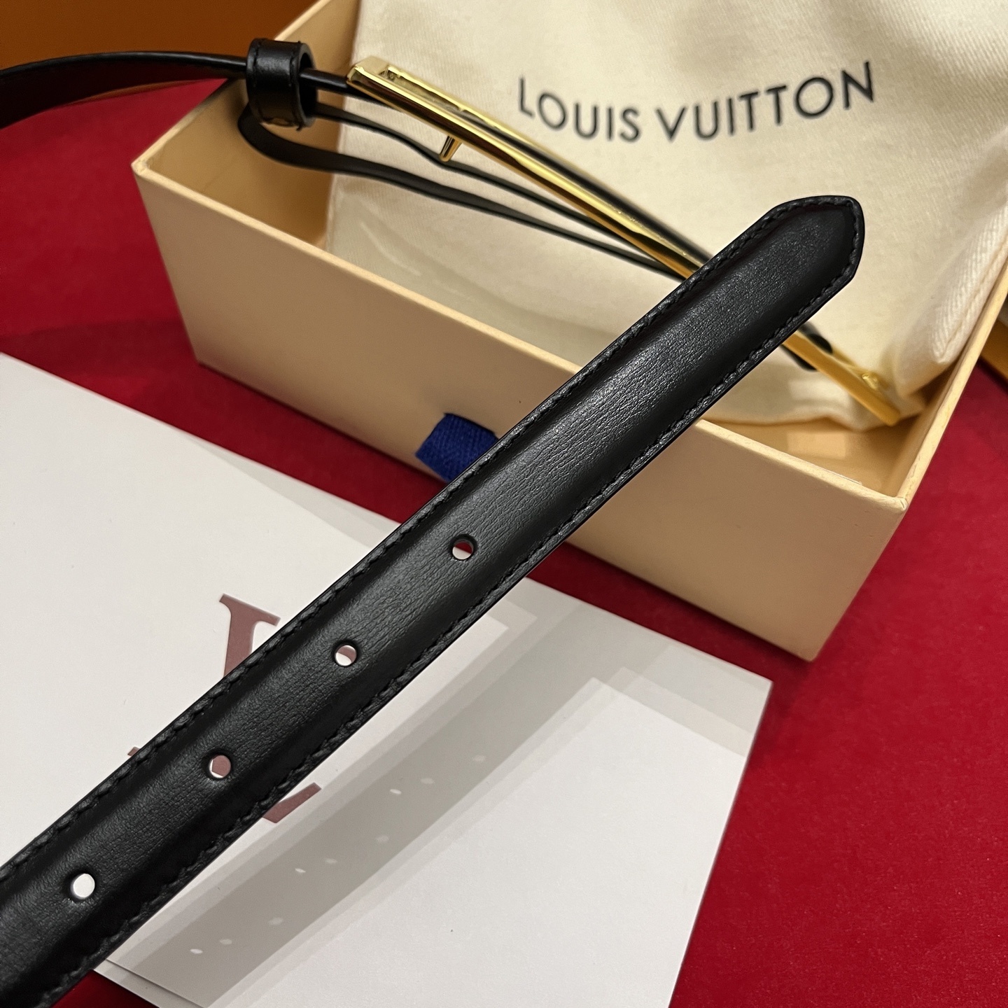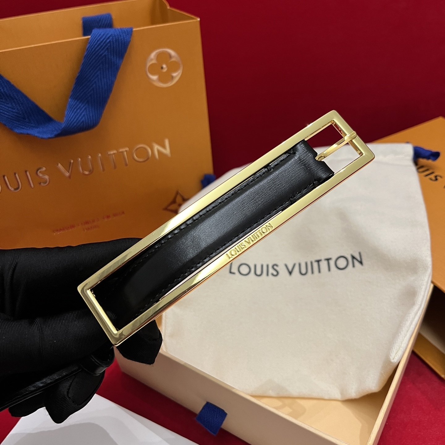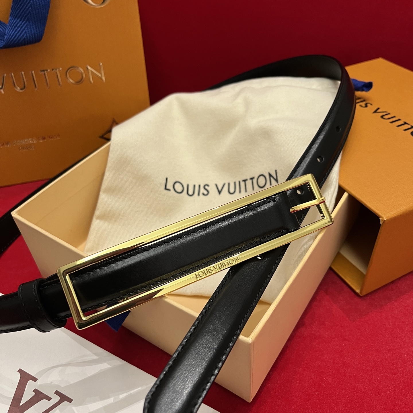 Louis Vuitton Women's Black Leather Belt with Gold Frame Buckle