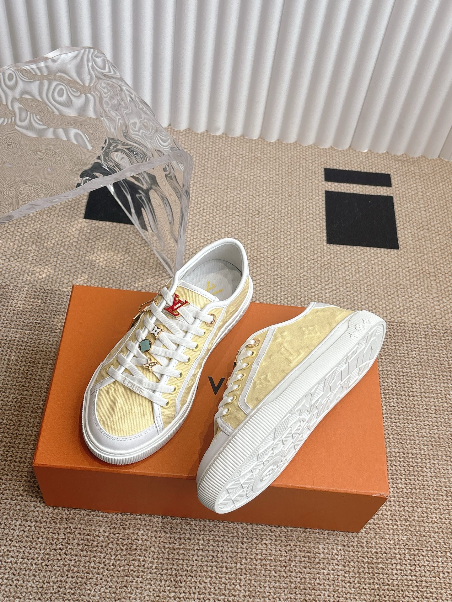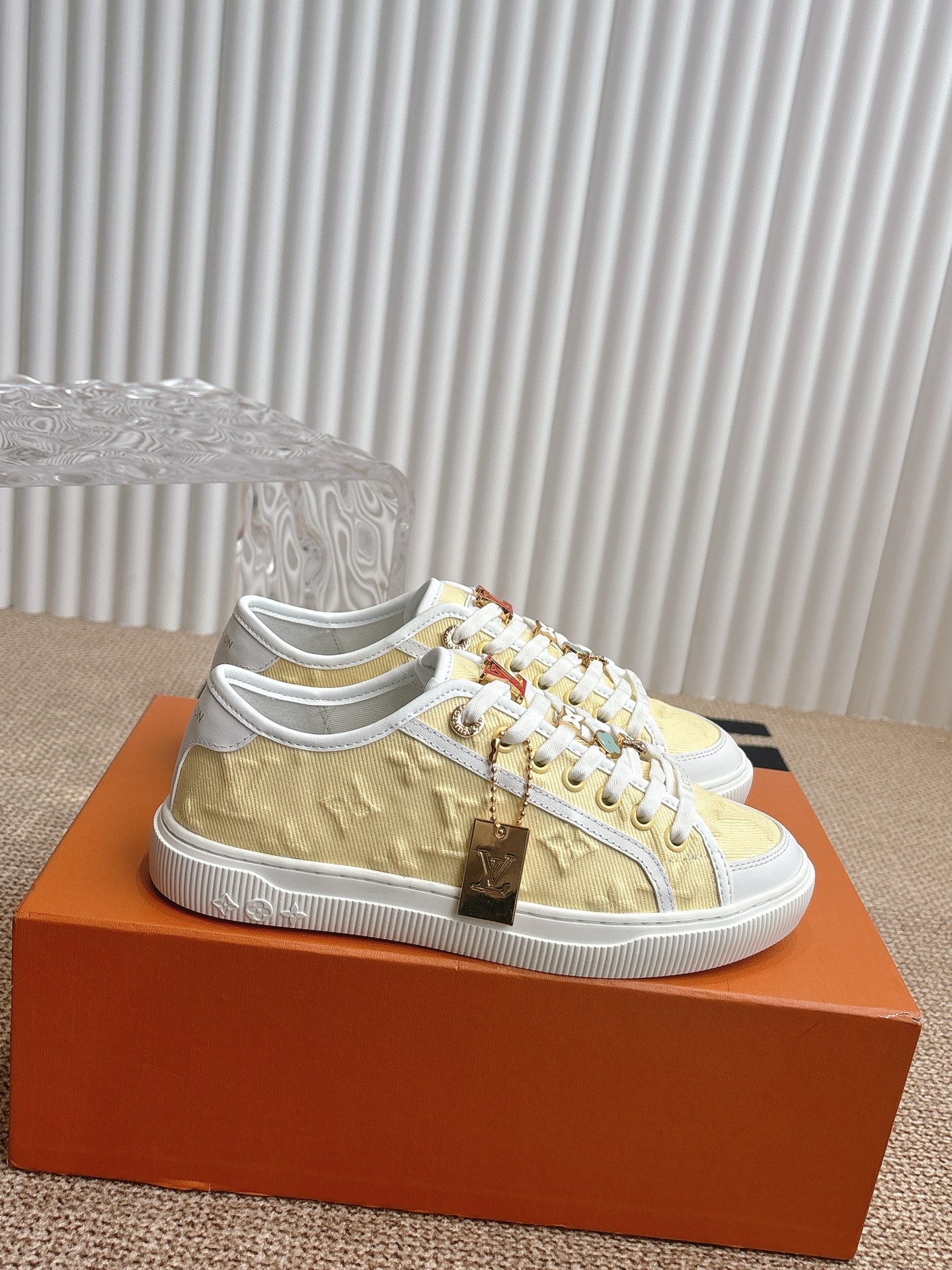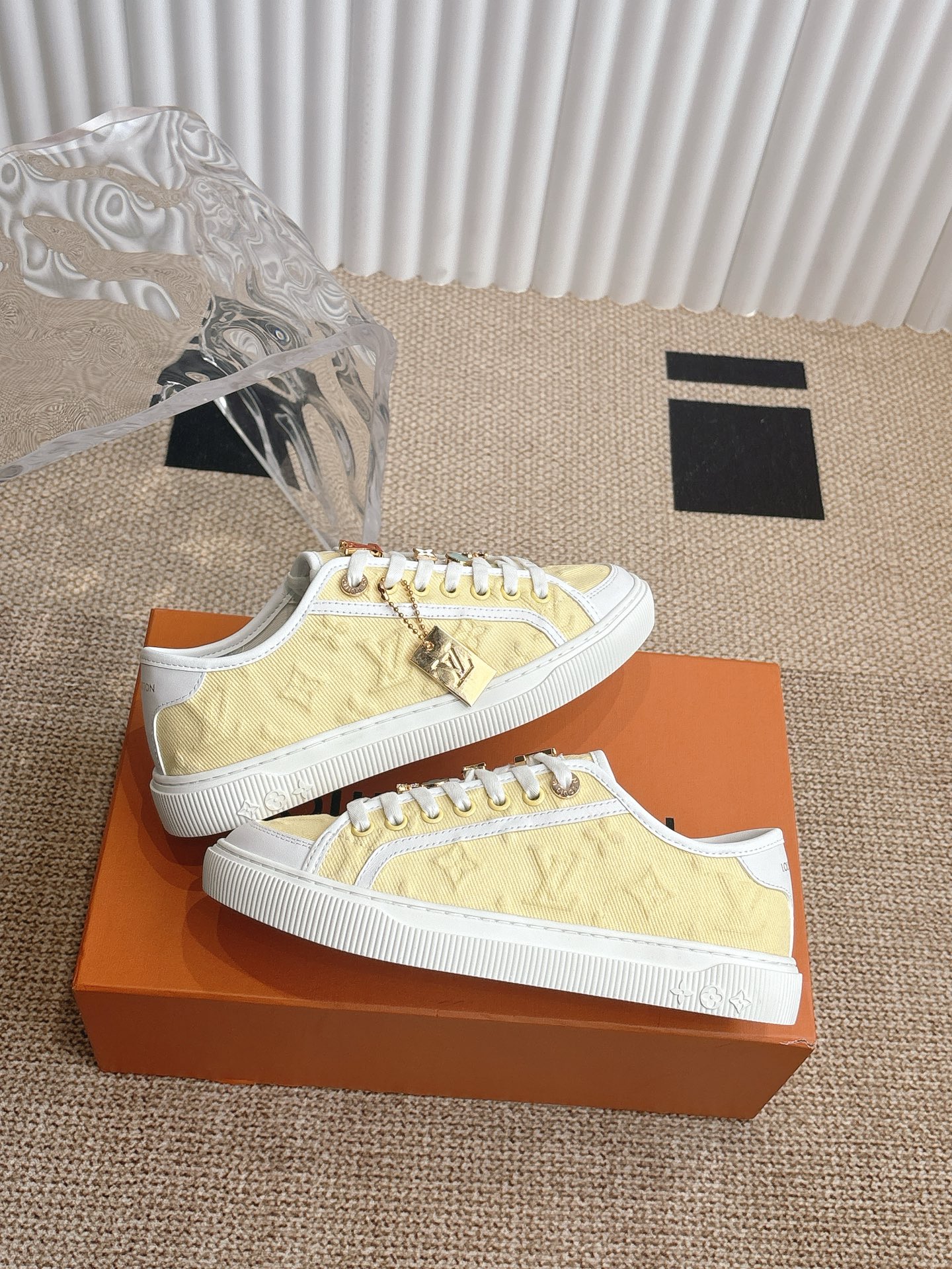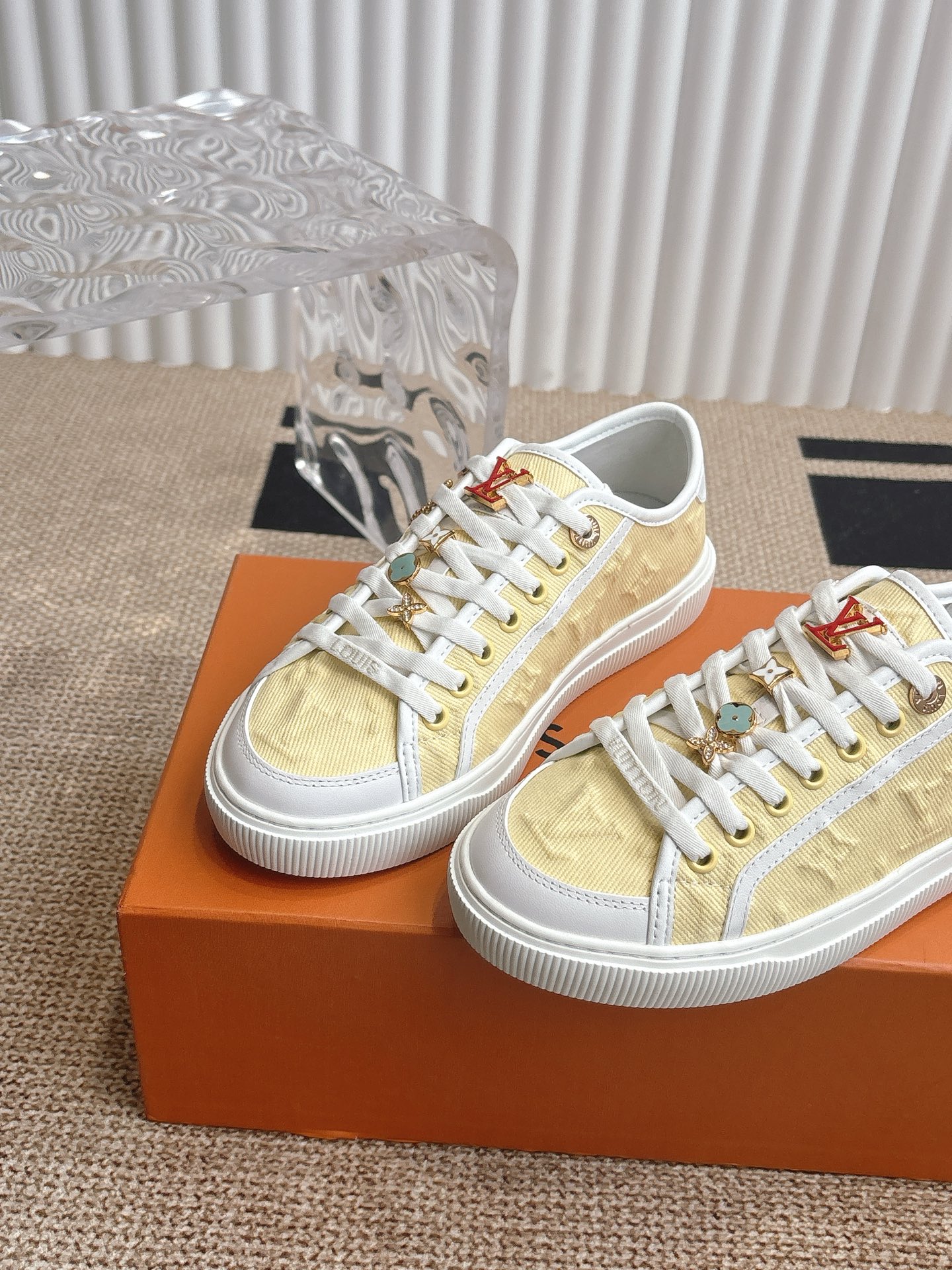 Louis Vuitton Men’s White Leather Trainers – Monogram Perforated Low-Top Sneakers
