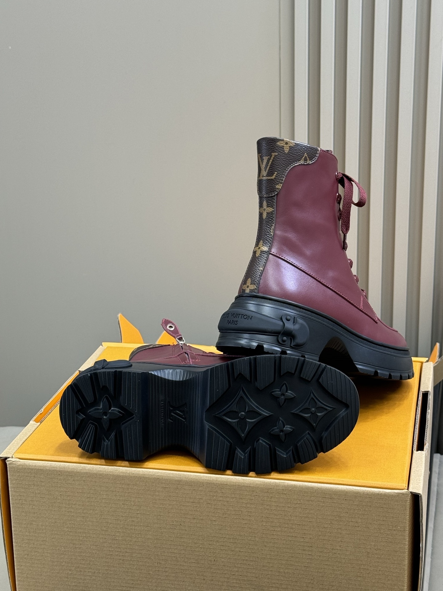 Luxury Burgundy Leather Lace-Up Ankle Boots with Chunky Sole