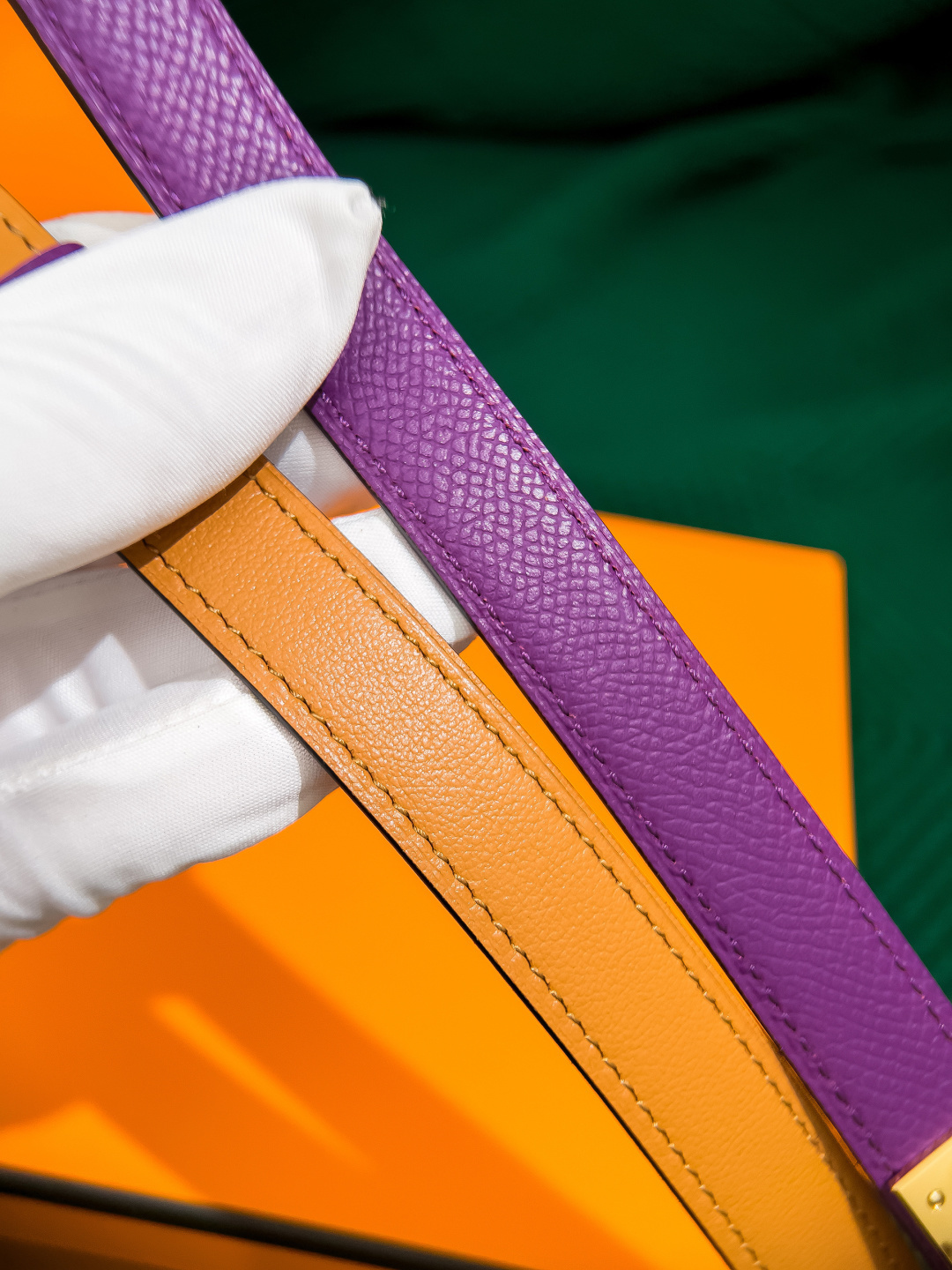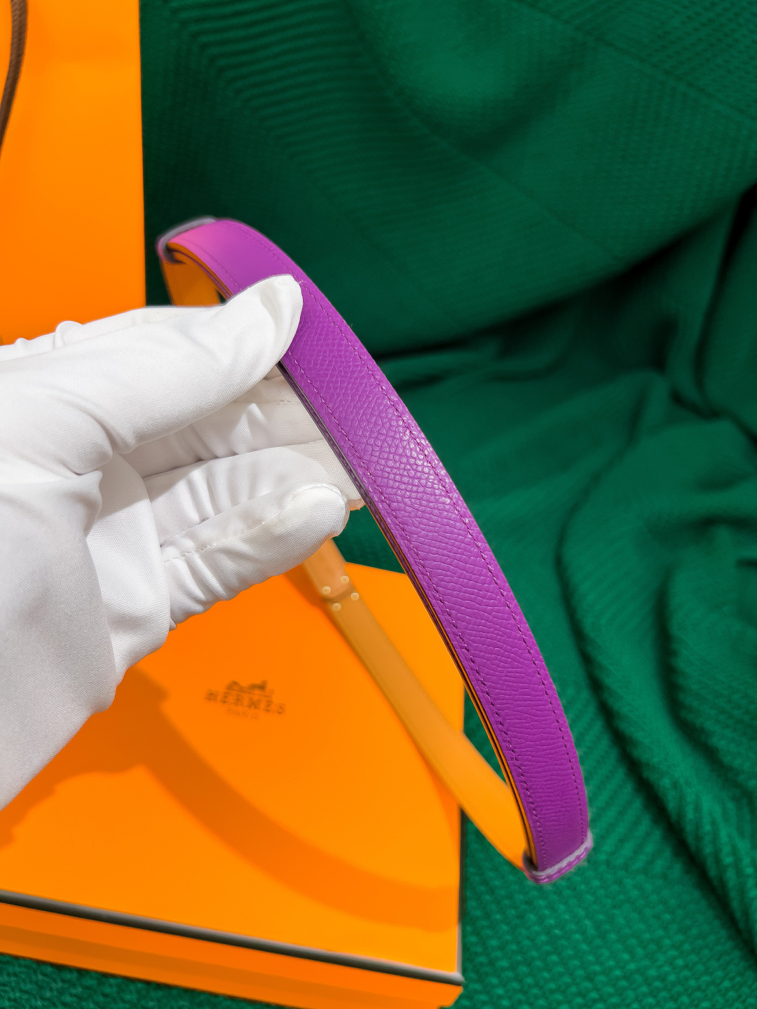 Luxury Hermes Kelly 18 Belt Purple Epsom Leather Gold Hardware