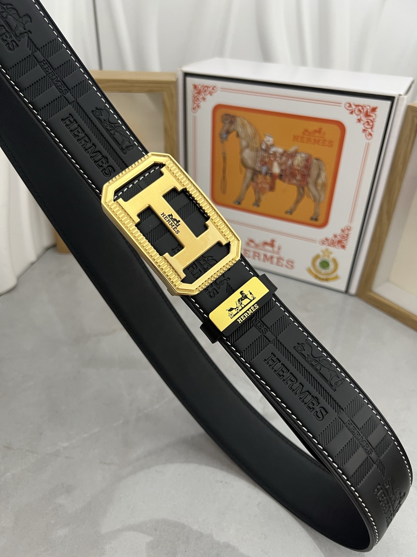 Elegant GG diamond logo buckle belt size 80