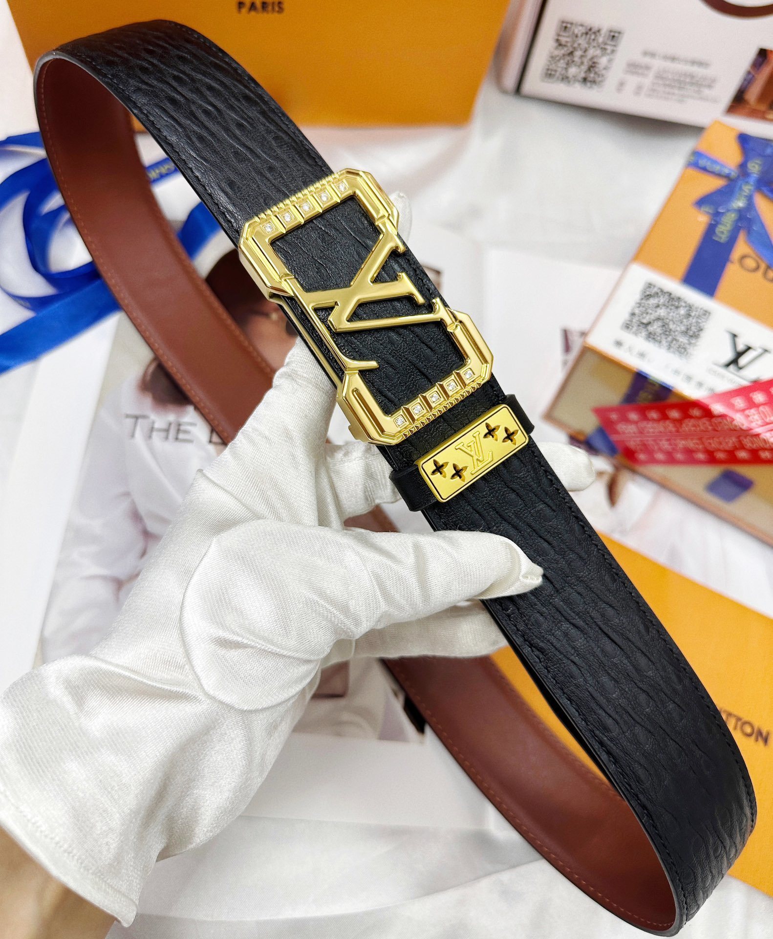 • Signature LV Buckle: The iconic LV logo is beautifully rendered with a brilliant, textured border that mimics the sparkle of fine jewelry.