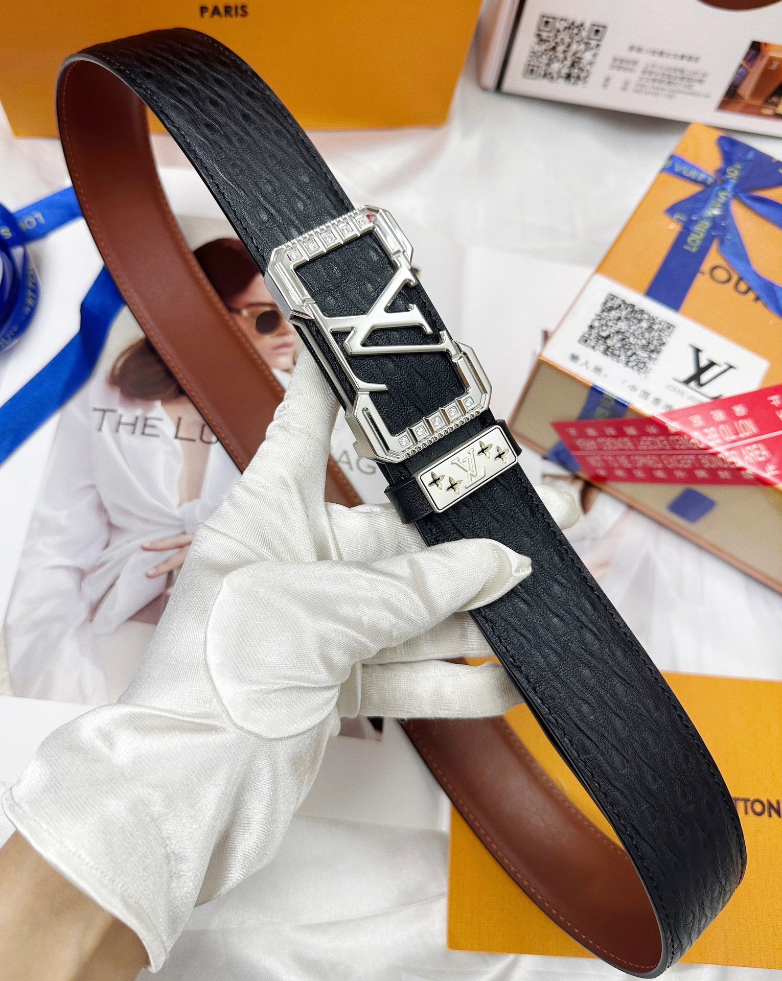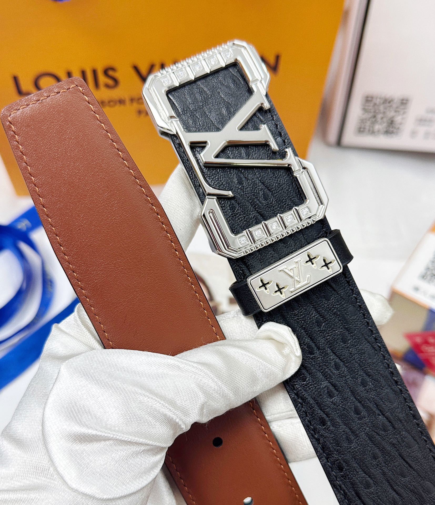 Elegant GG diamond logo buckle belt size 80