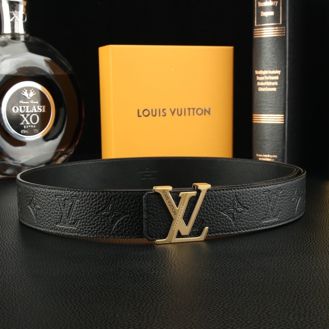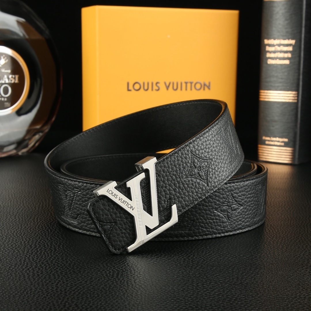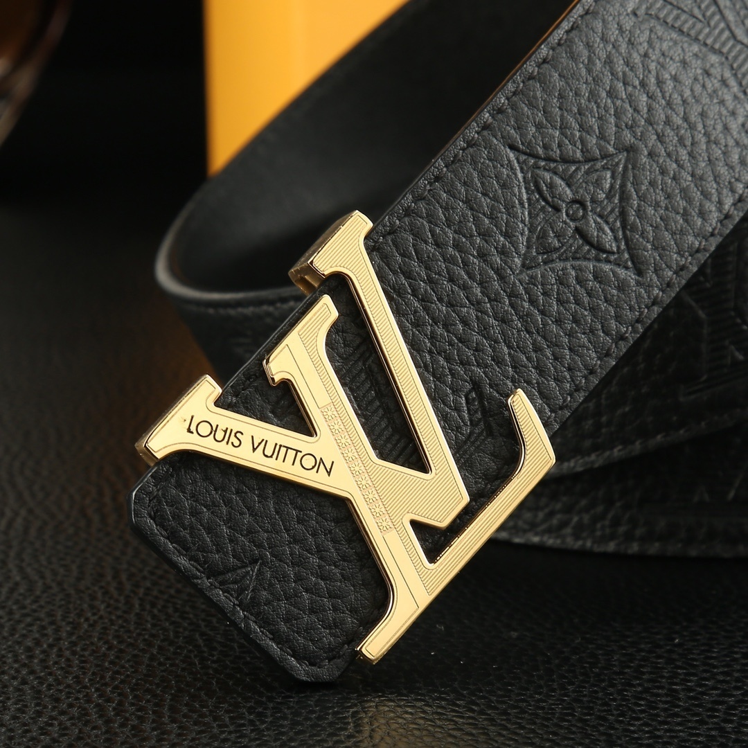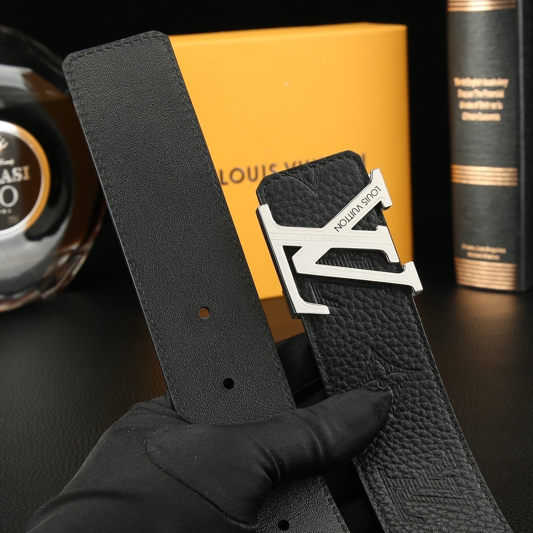 Luxury LV Men's Belt Monogram Leather - Gold and Silver Buckle
