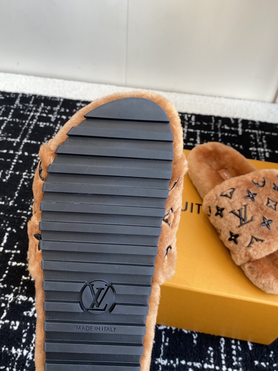 Louis Vuitton Black Monogram Canvas Slide Sandals – Comfortable Rubber Sole