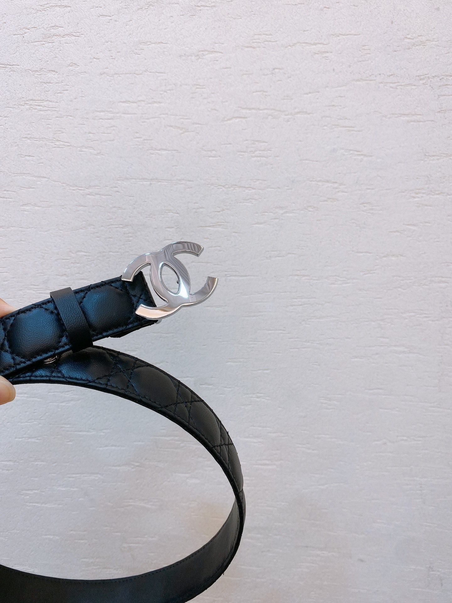 Luxury Quilted Black Leather Belt with Silver Interlocking Buckle
