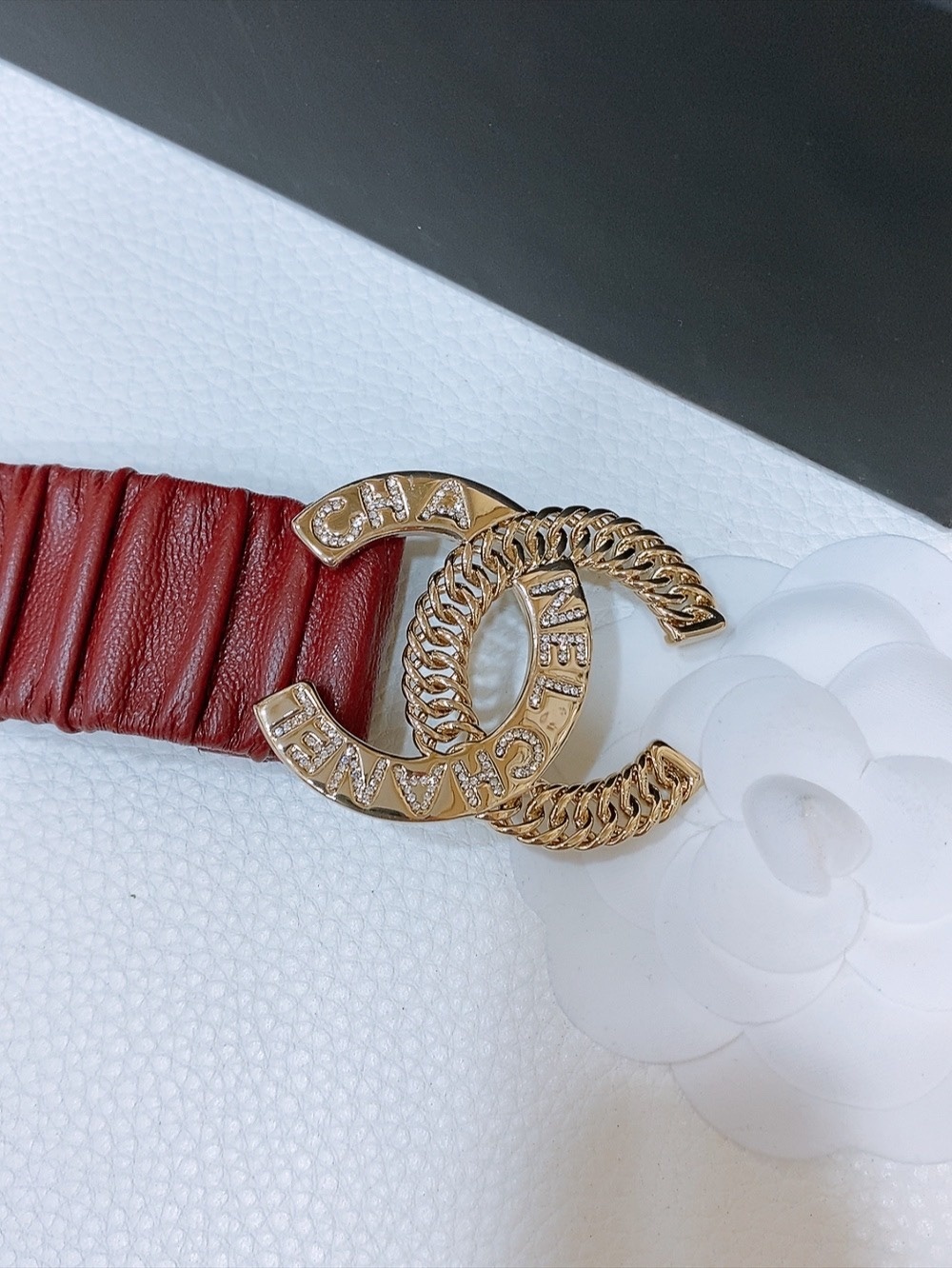 Luxury Red Ruched Leather Belt with Gold Crystal Buckle