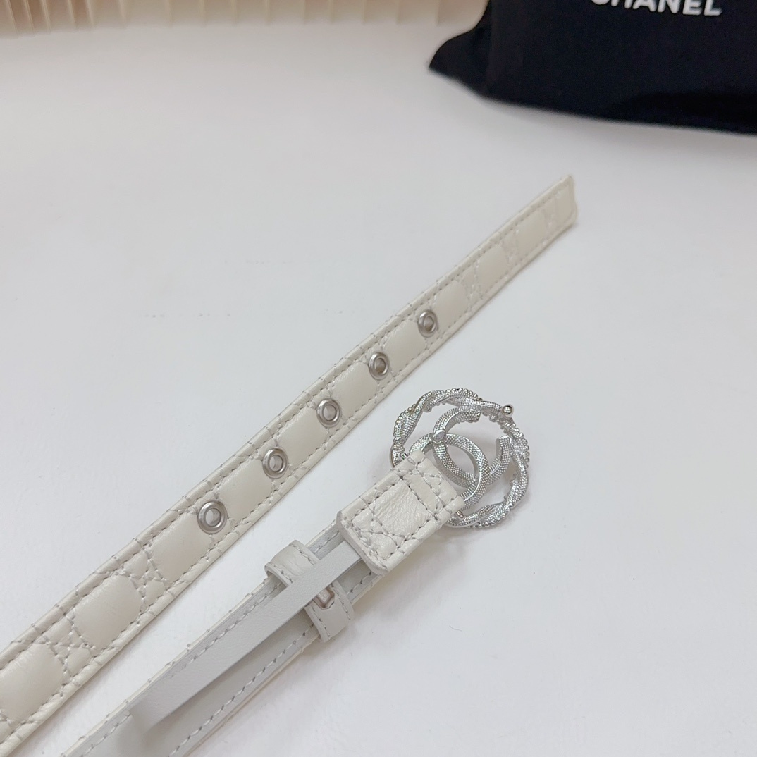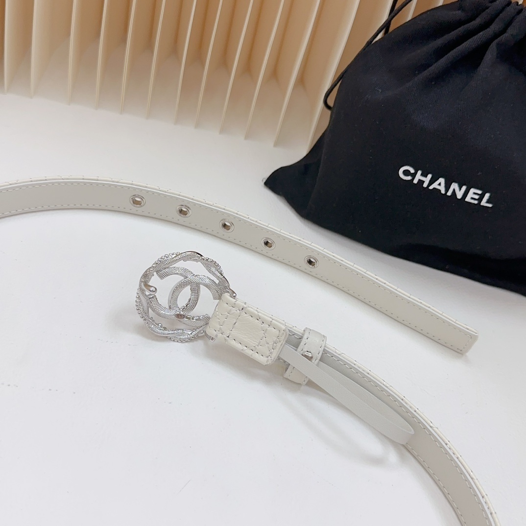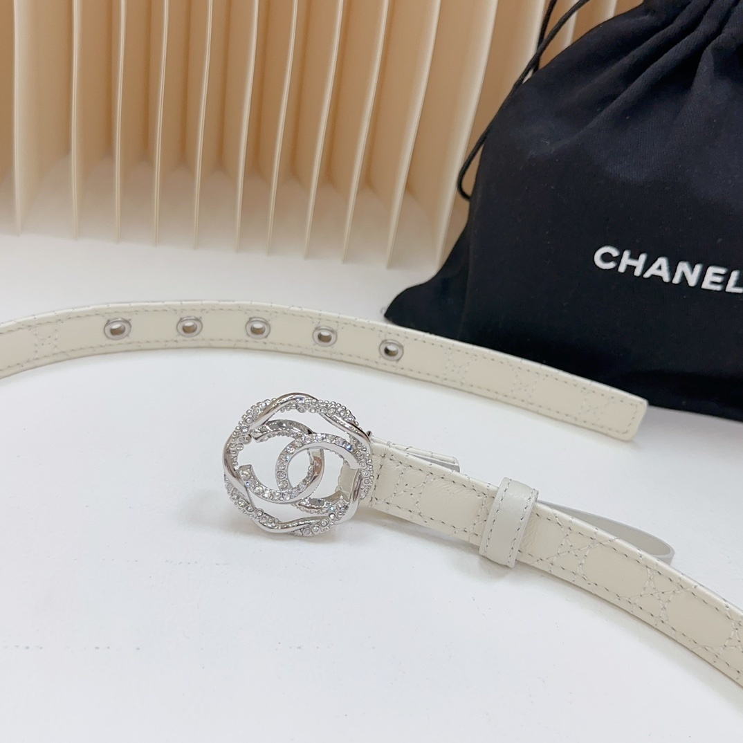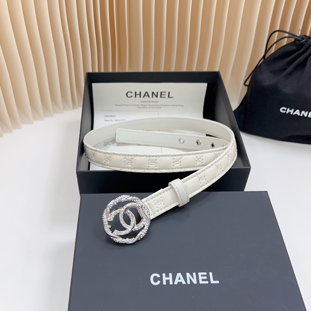 Luxury White Quilted Leather Belt with Crystal Double C Buckle