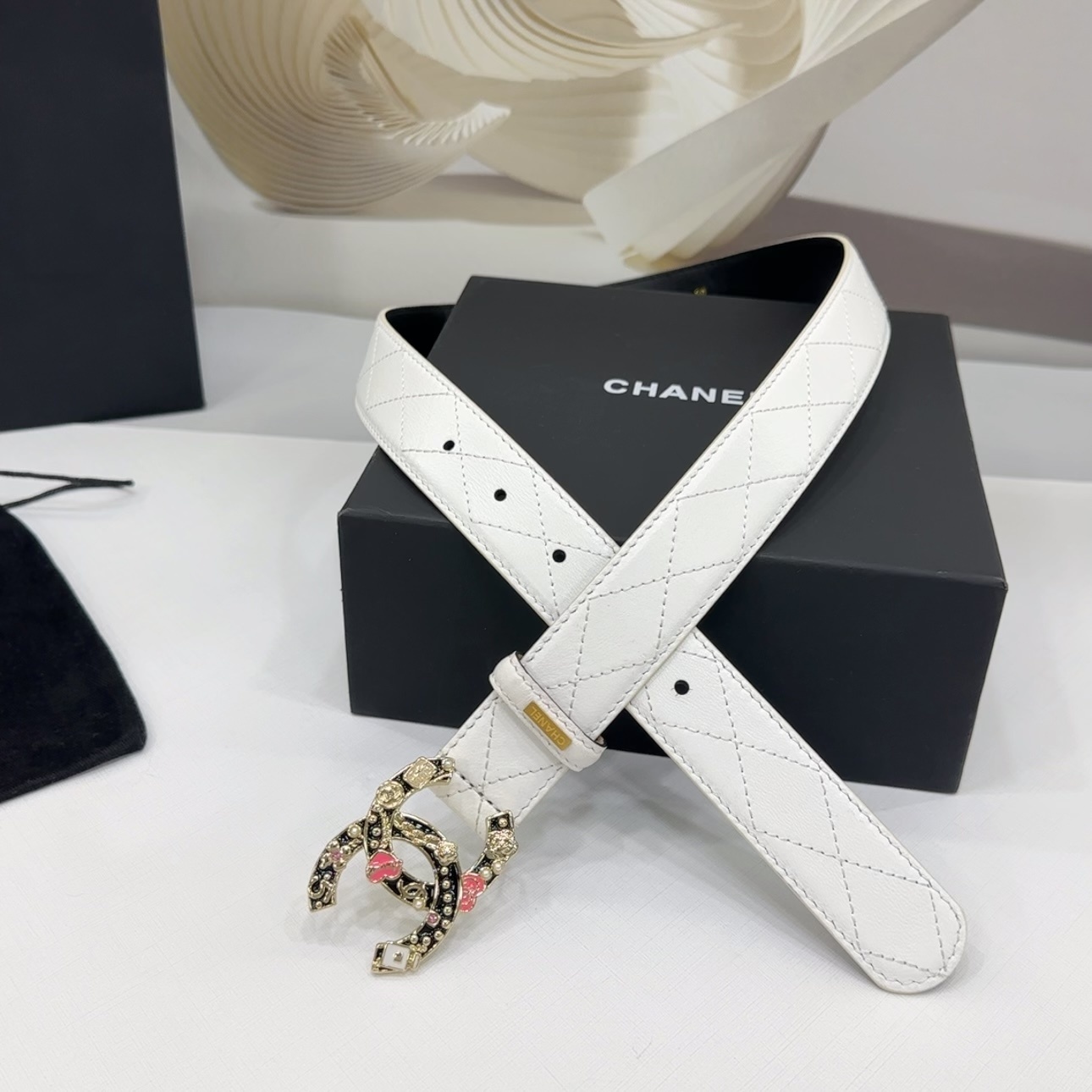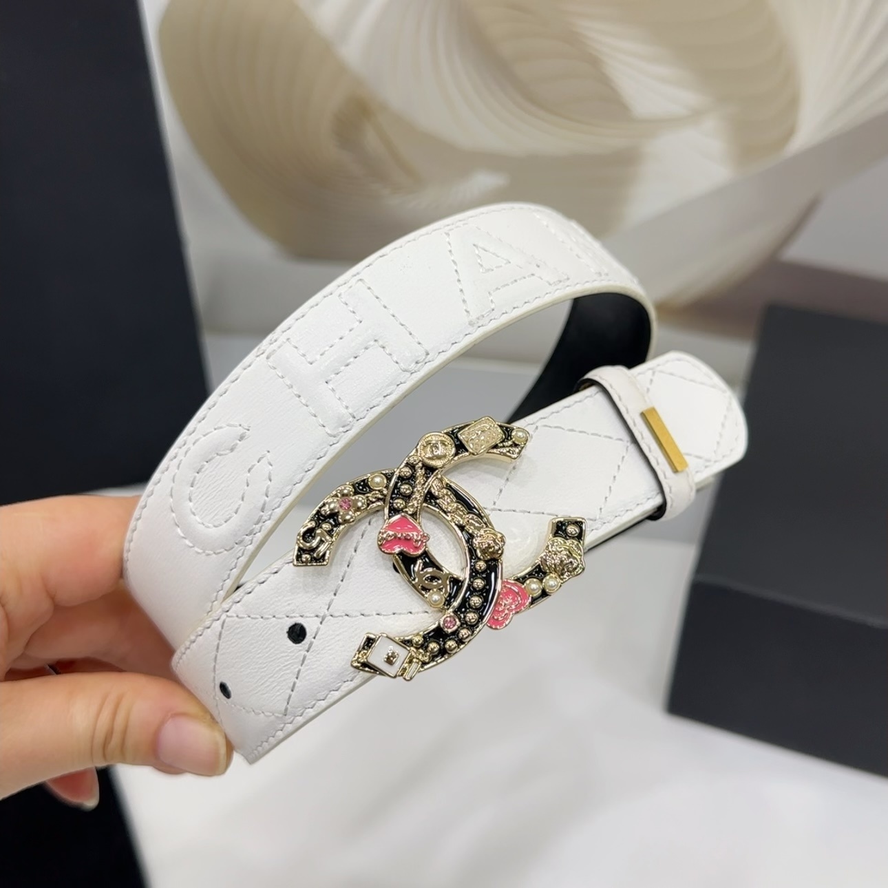 Miu Miu White belt with gold hardware