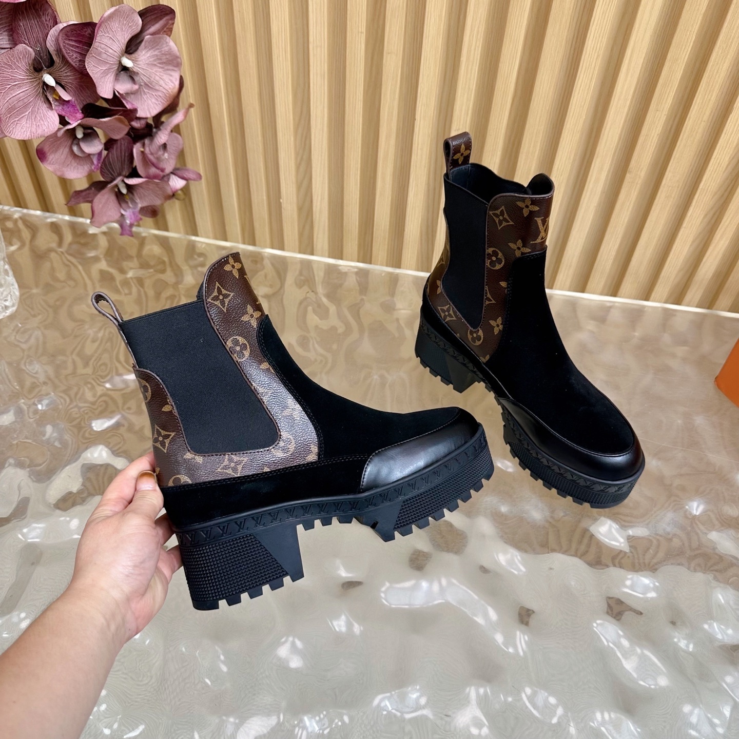 Luxury Women's Monogram Suede Platform Chelsea Boots