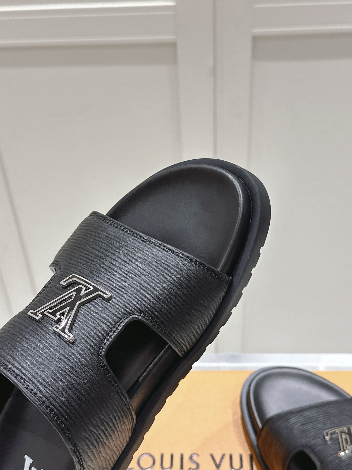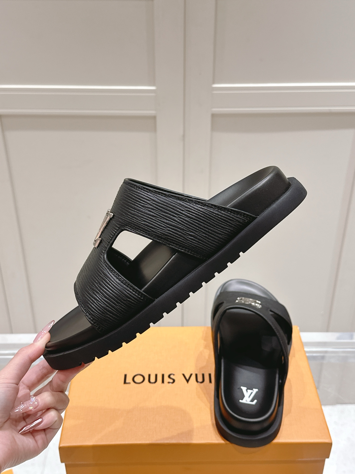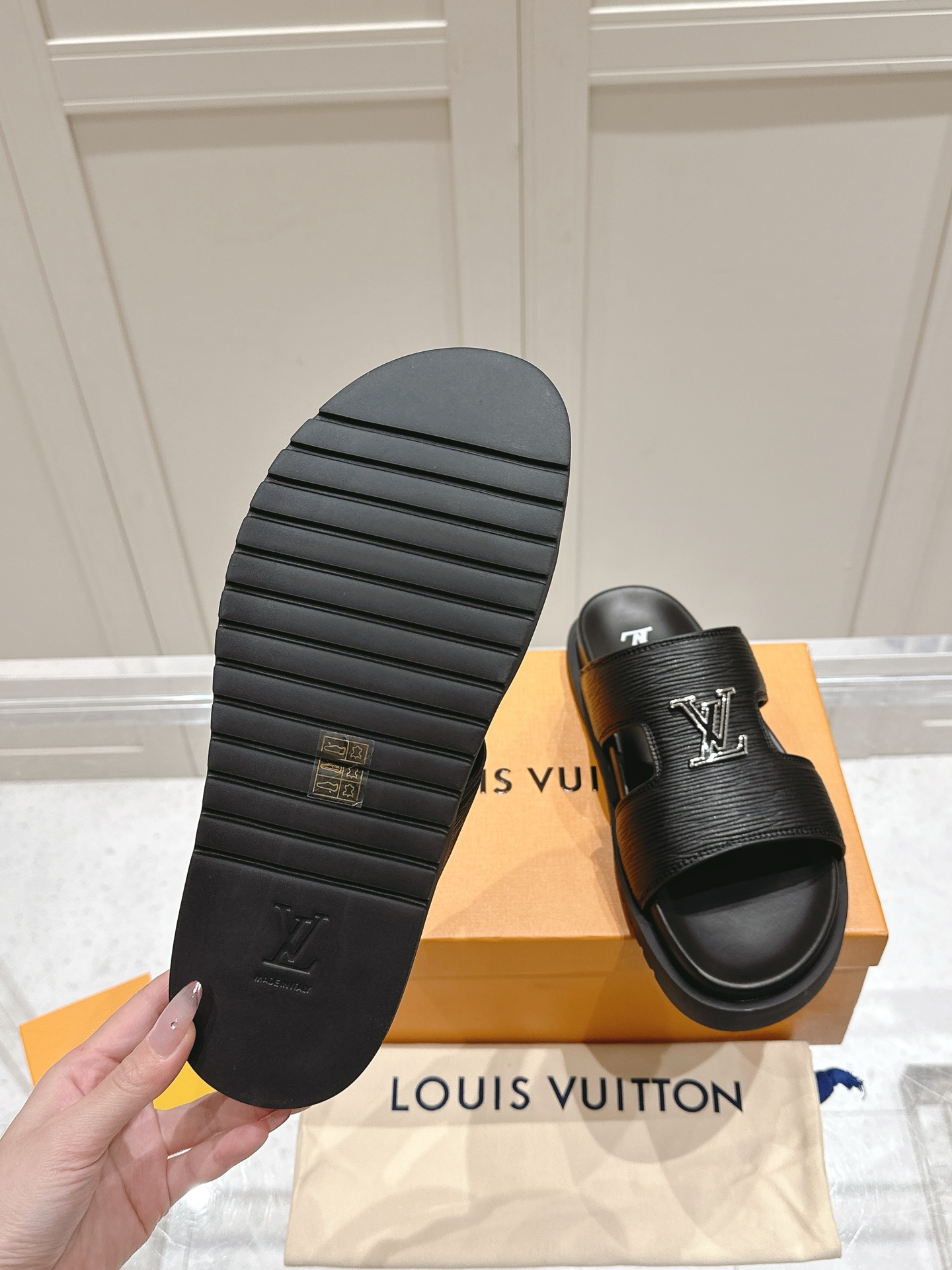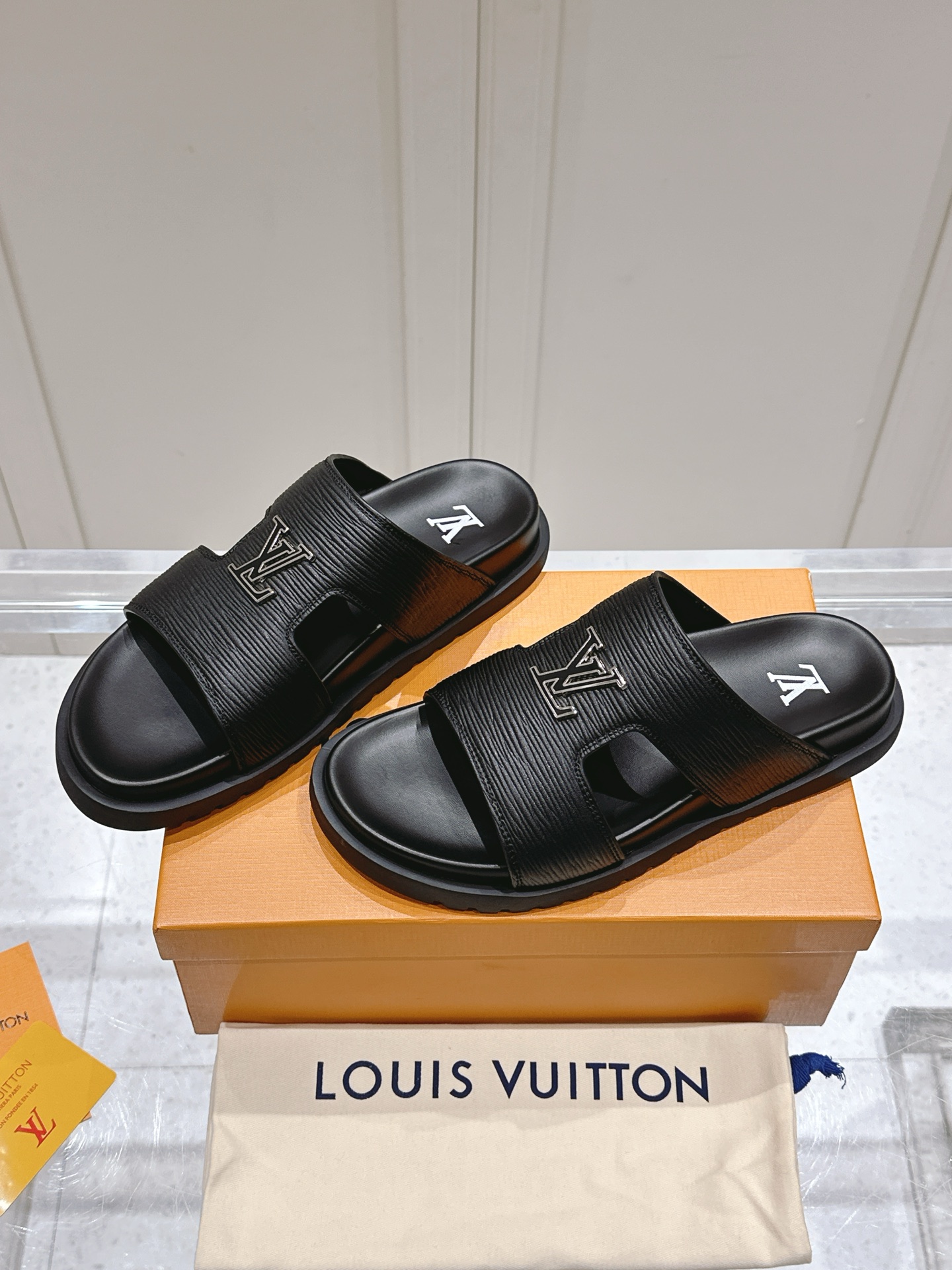 Louis Vuitton Black Leather LV Buckle Sandals