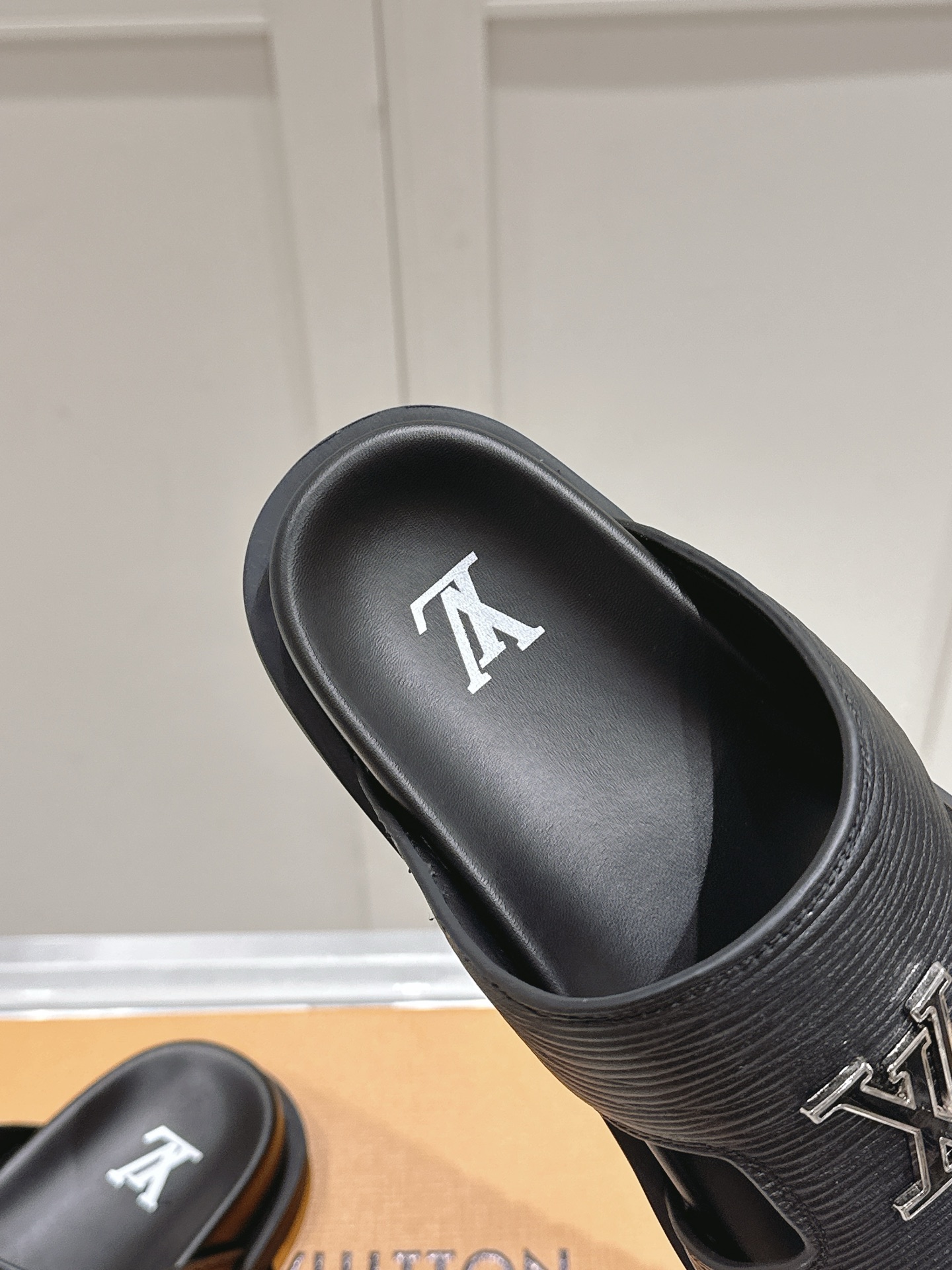 Louis Vuitton Men’s Brown Slide Sandals Damier Pattern Rubber Sole Slip On