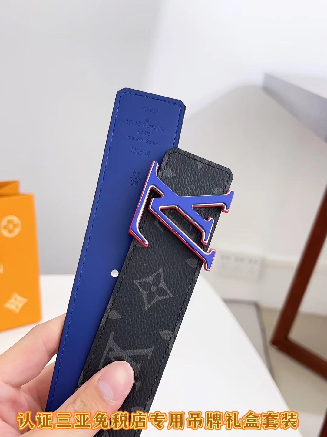 Men's Luxury 4.0cm Reversible Calfskin Leather Belt with LV Buckle