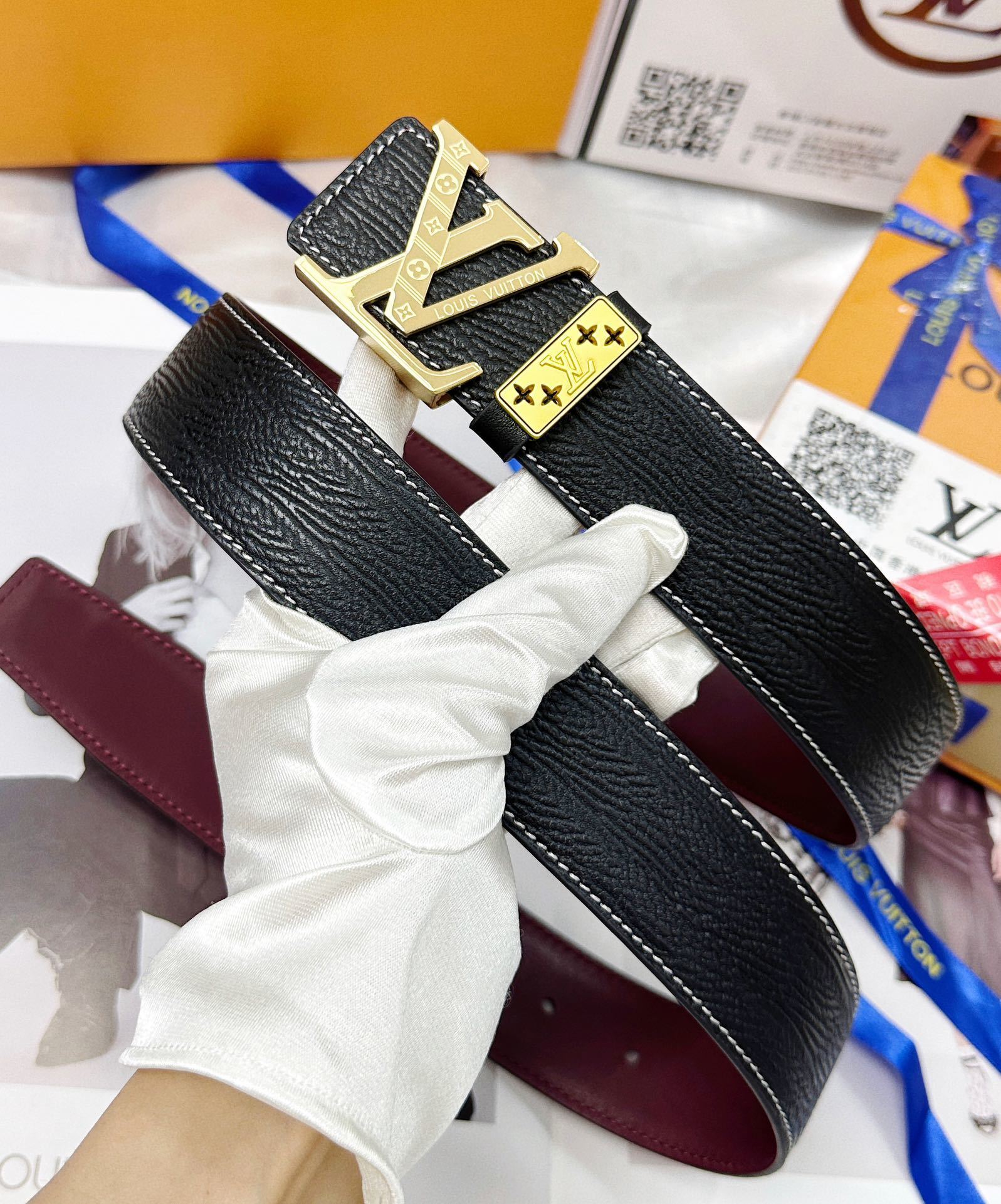 Men's Luxury Reversible Leather Belt - Black & Burgundy LV Style