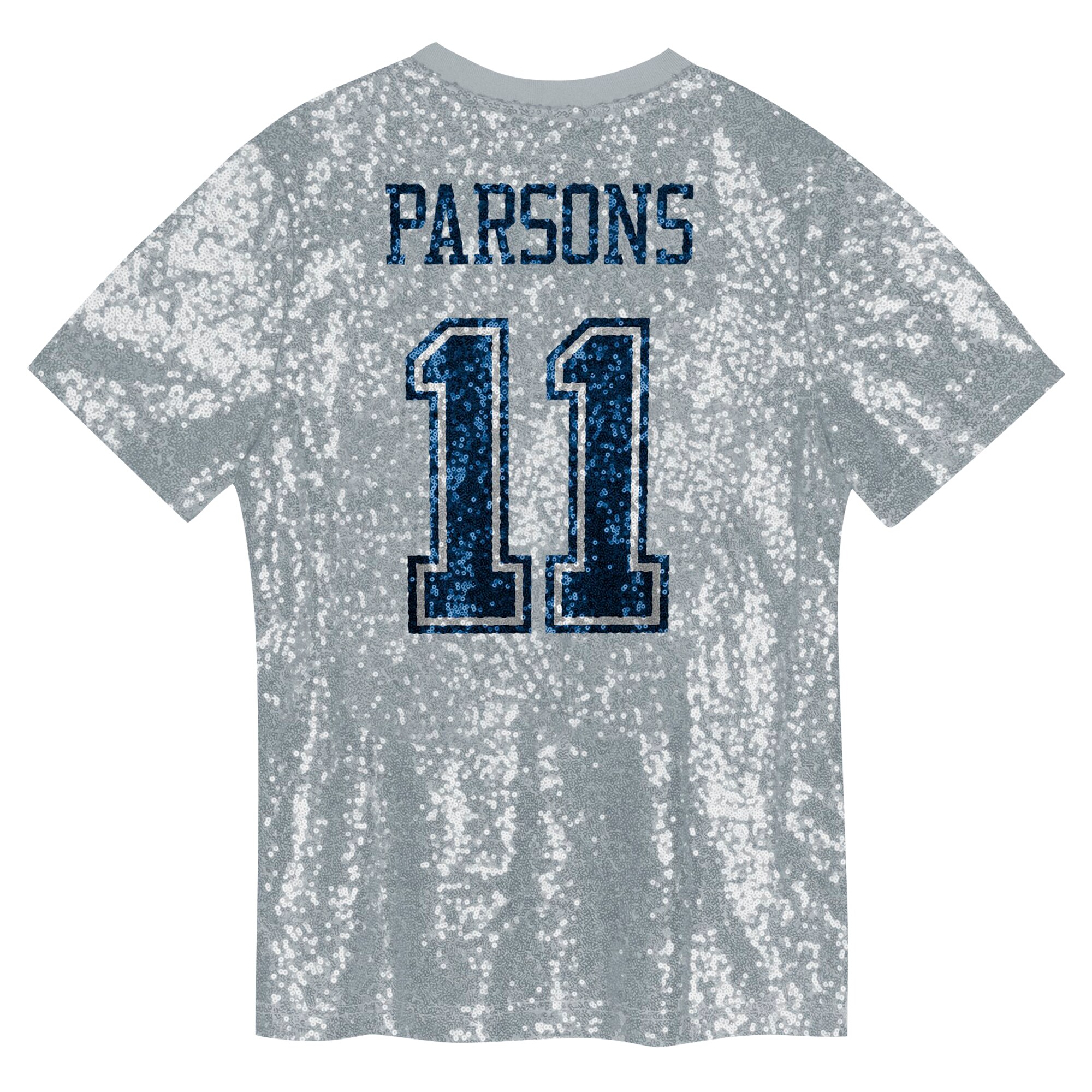 Micah Parsons Dallas Cowboys Girls Youth Sequin V-Neck Fashion Jersey - Silver