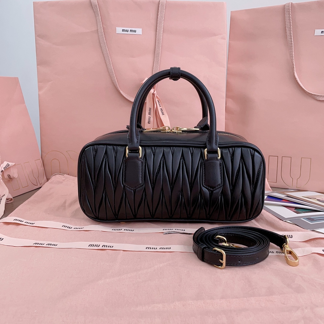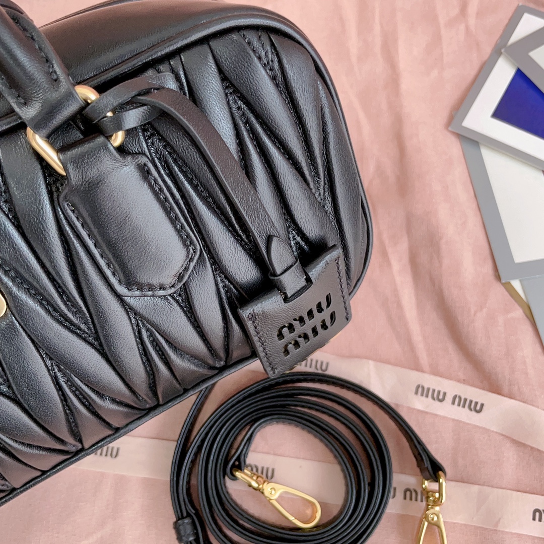 Miu Miu Arcadie Matelassé Black Nappa Leather Women's Miu Miu 00499