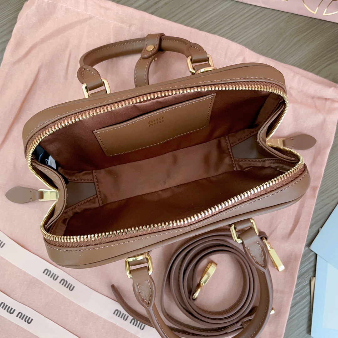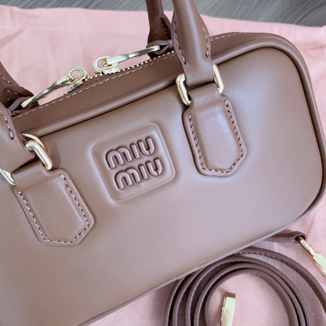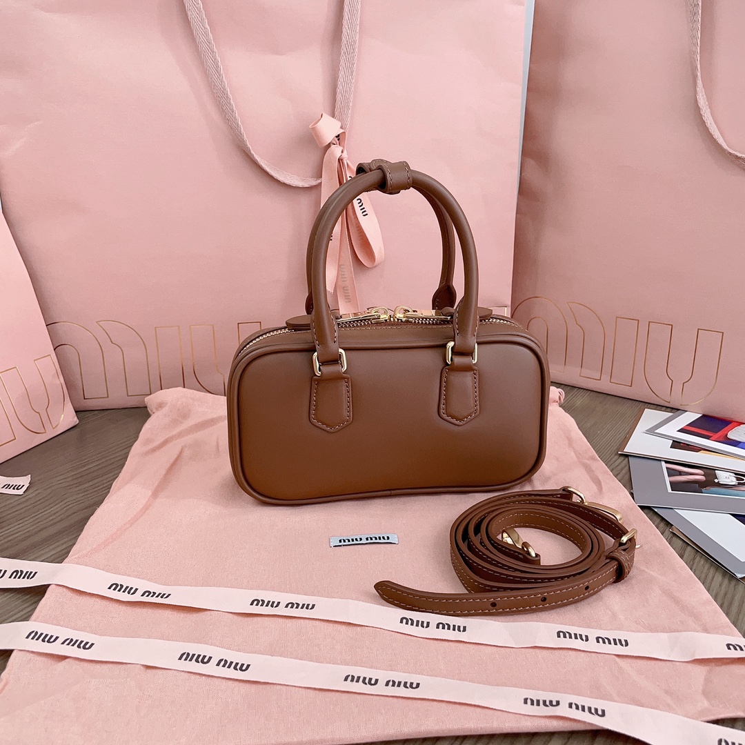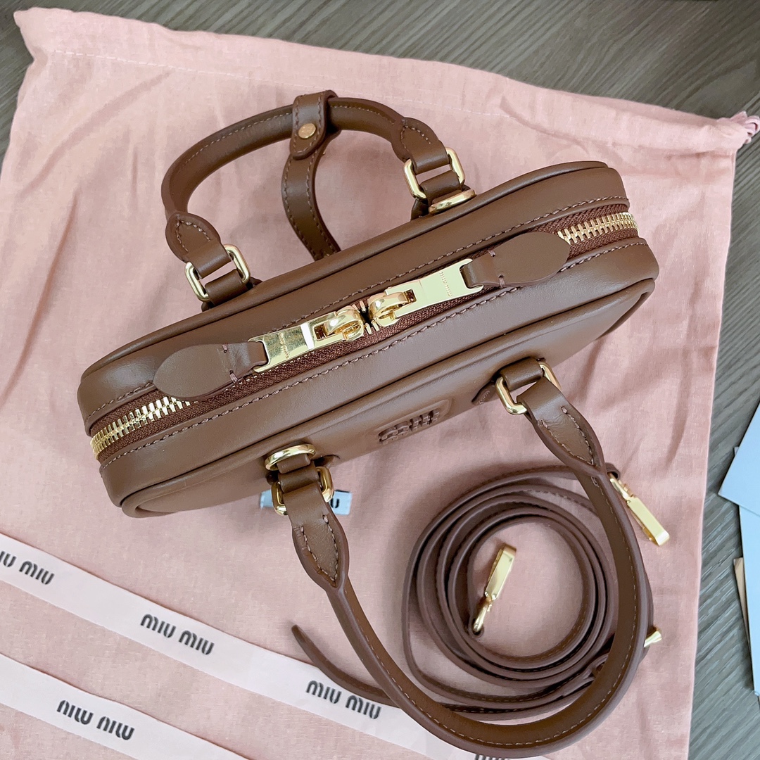 MIU MIU Calfskin Mini Arcadie Top Handle Bag Cognac 1618782