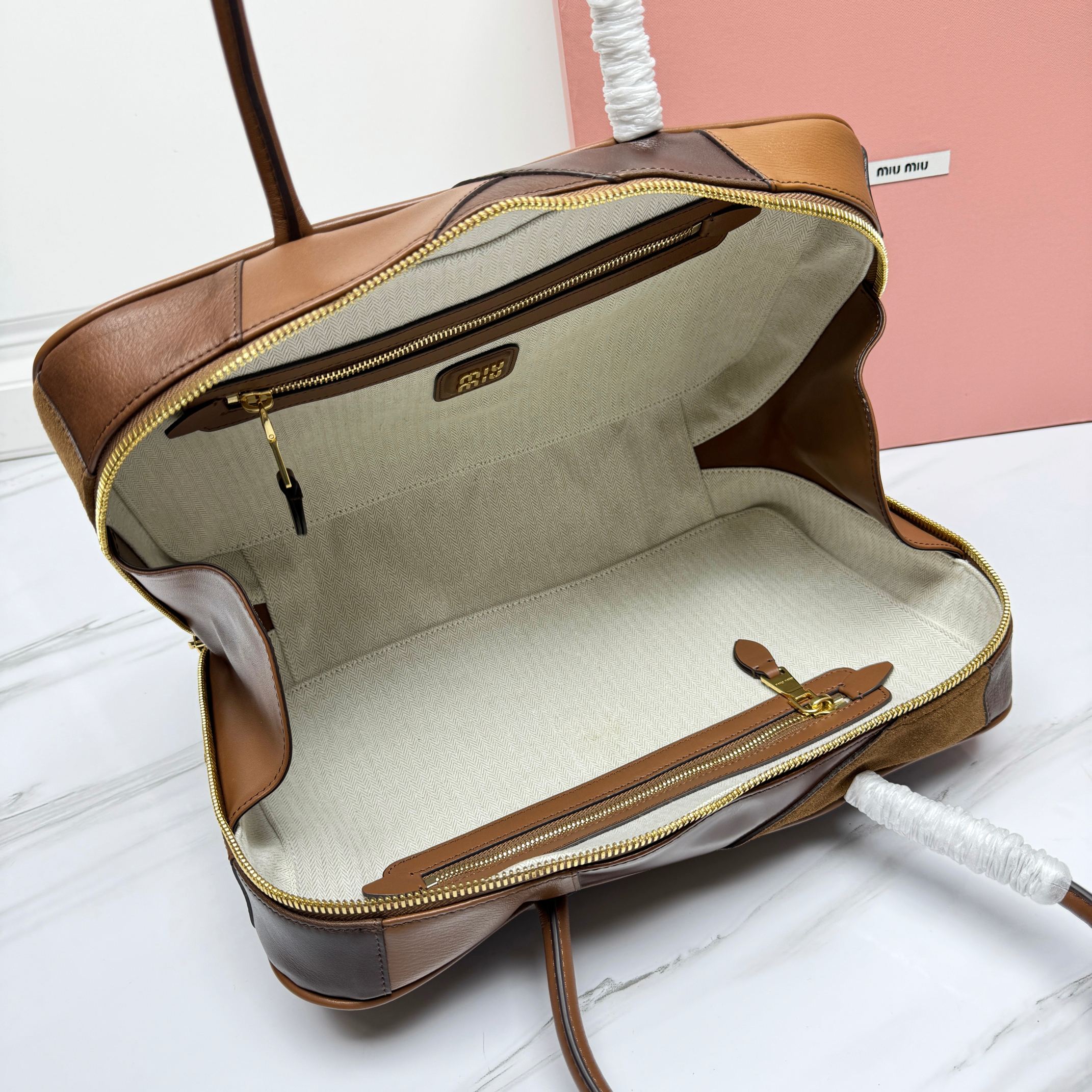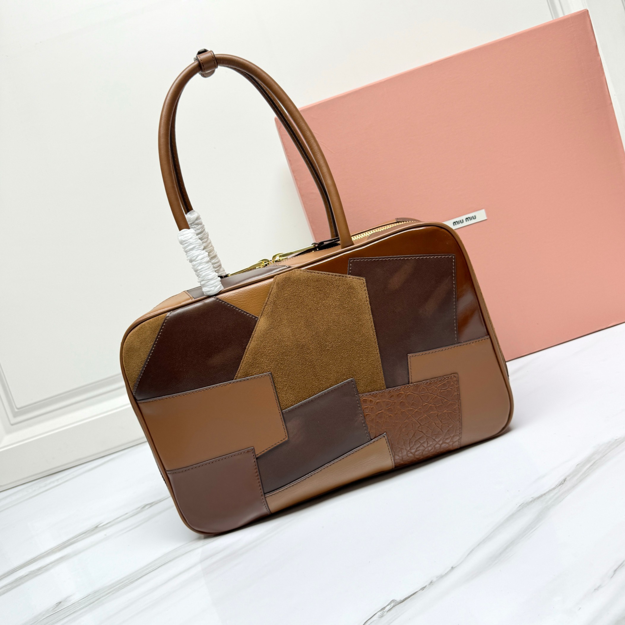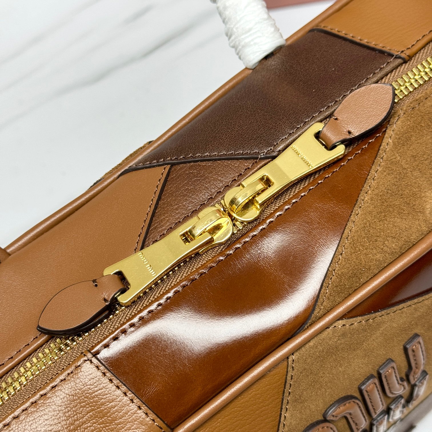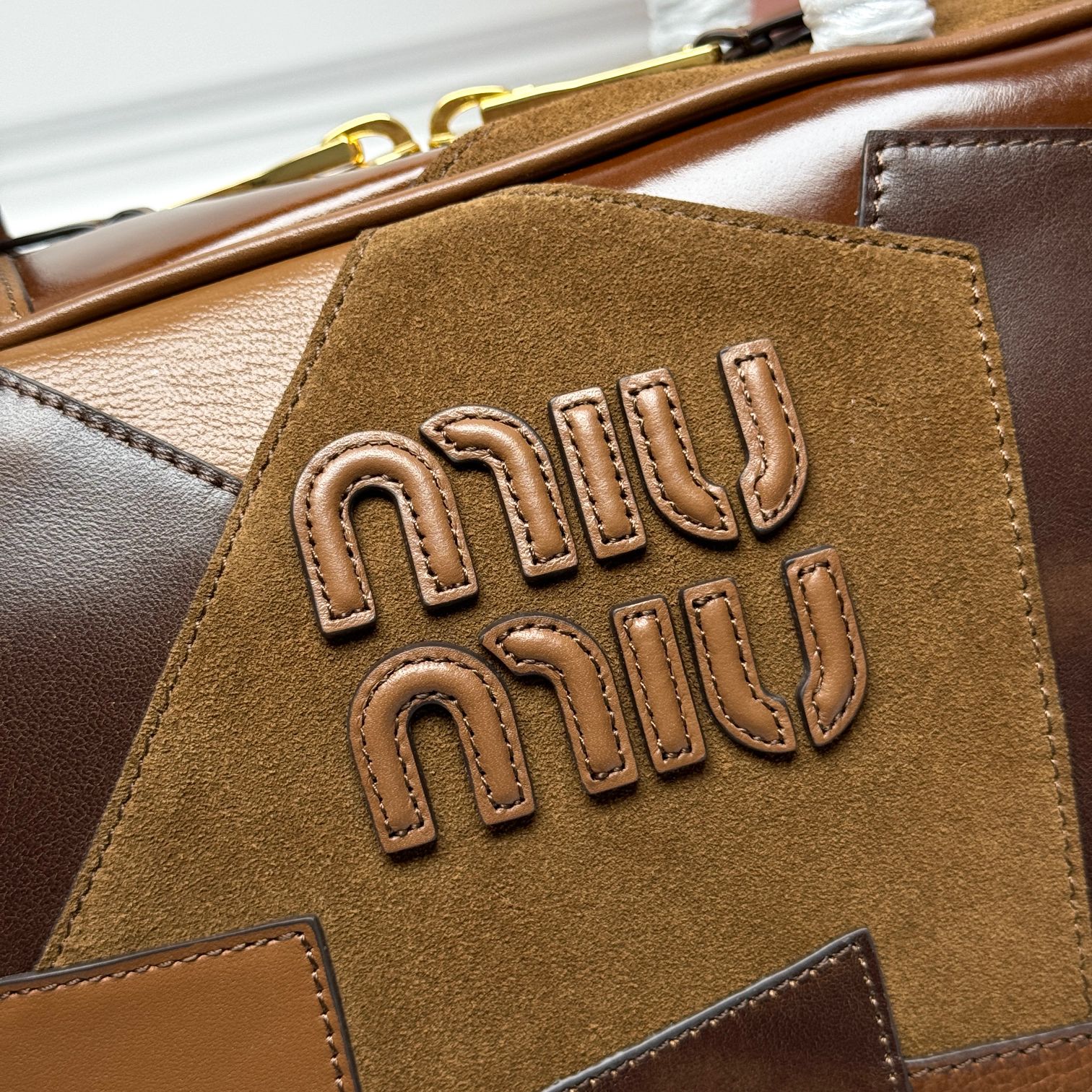 Miu Miu Cognac Leather Patchwork Beau Bag | Miu Mi