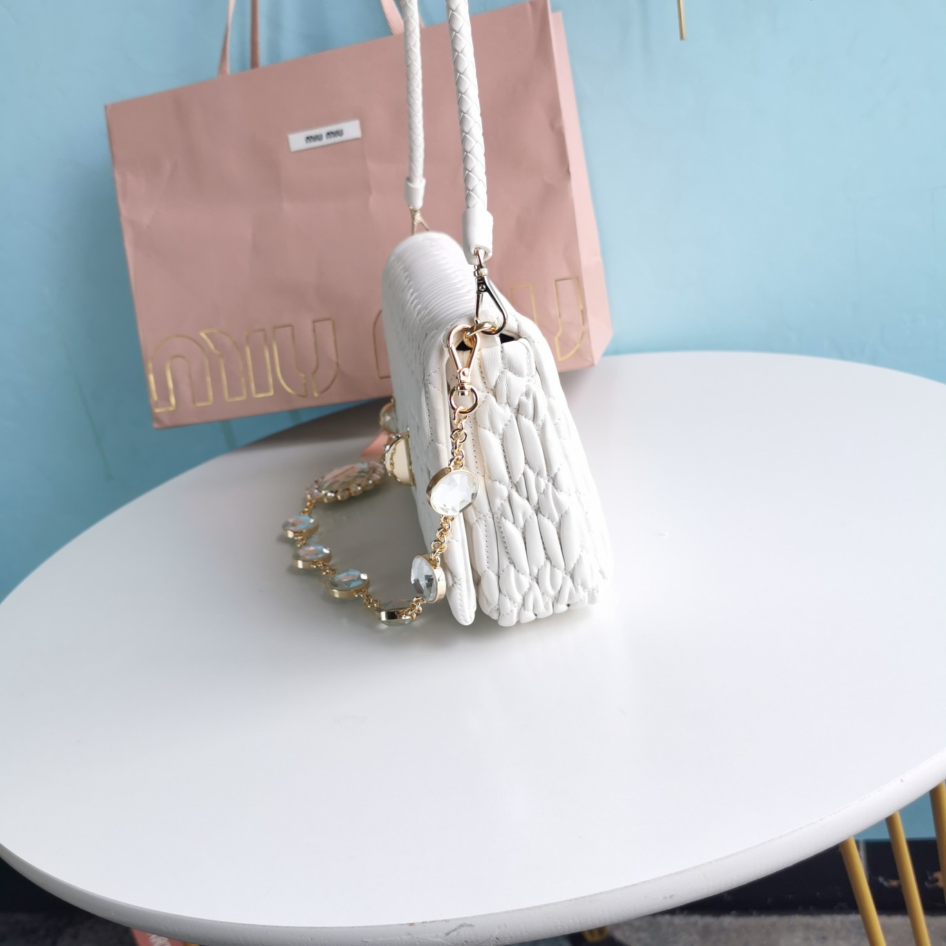 Miu Miu Crystal Embellished Crossbody Bag - White