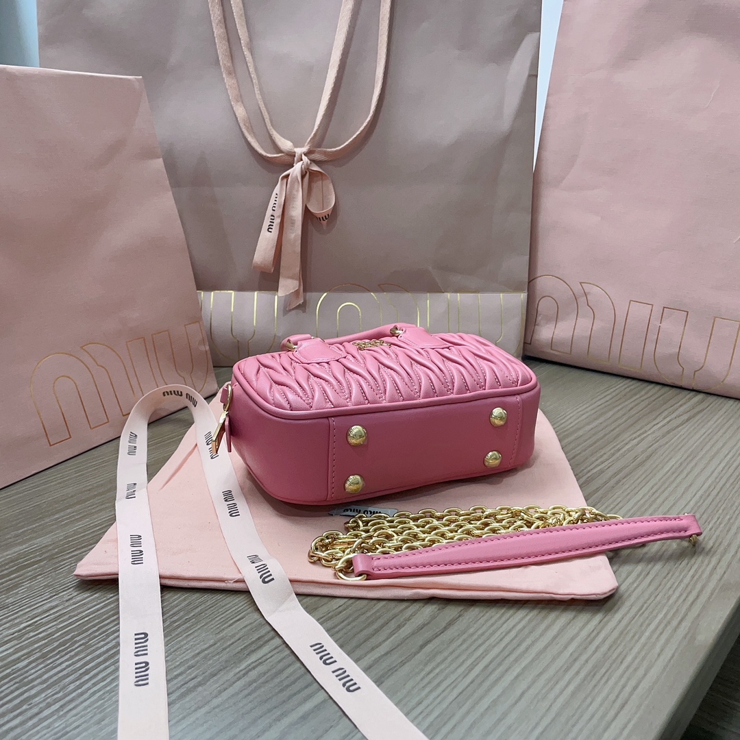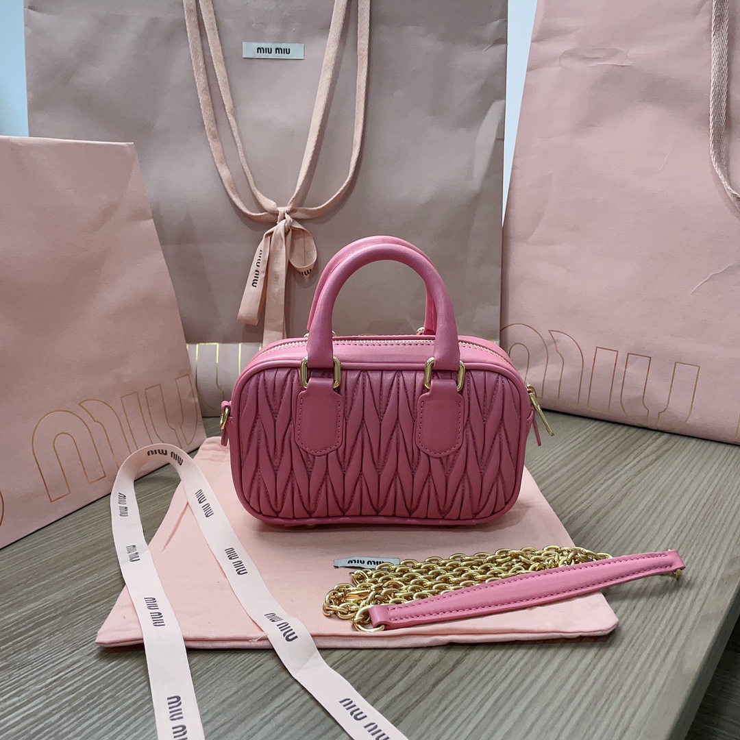 Miu Miu Logo Mini Bowling Bag in Pink